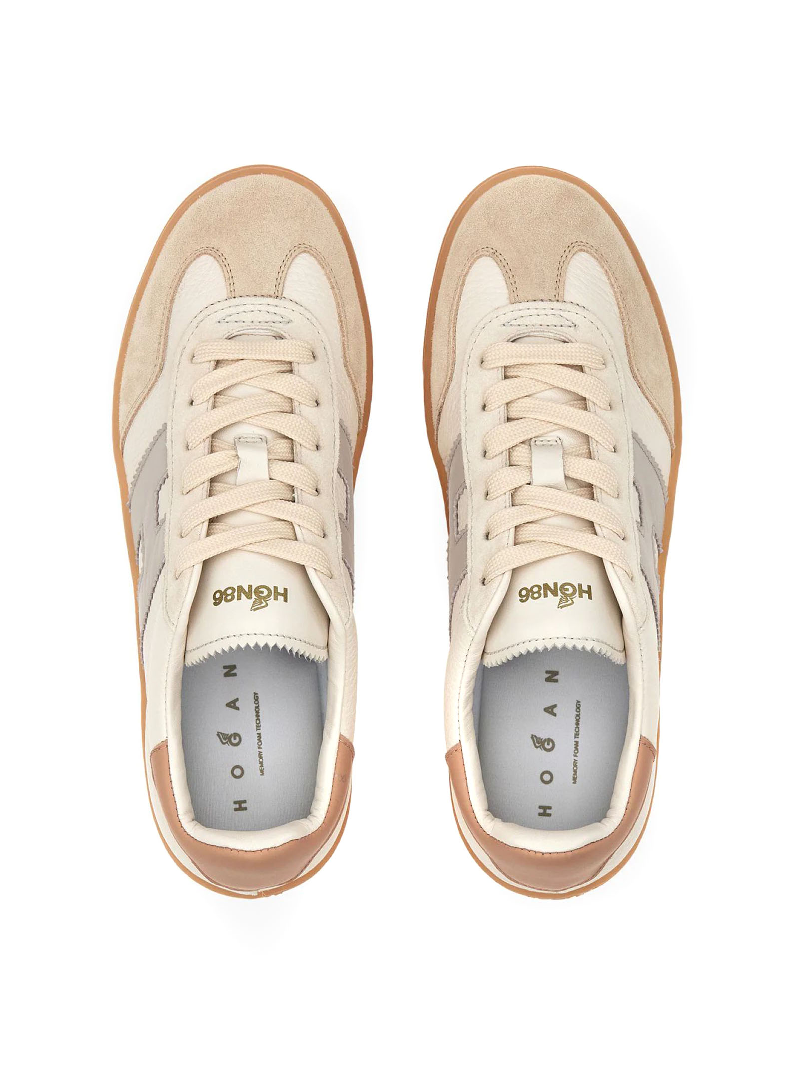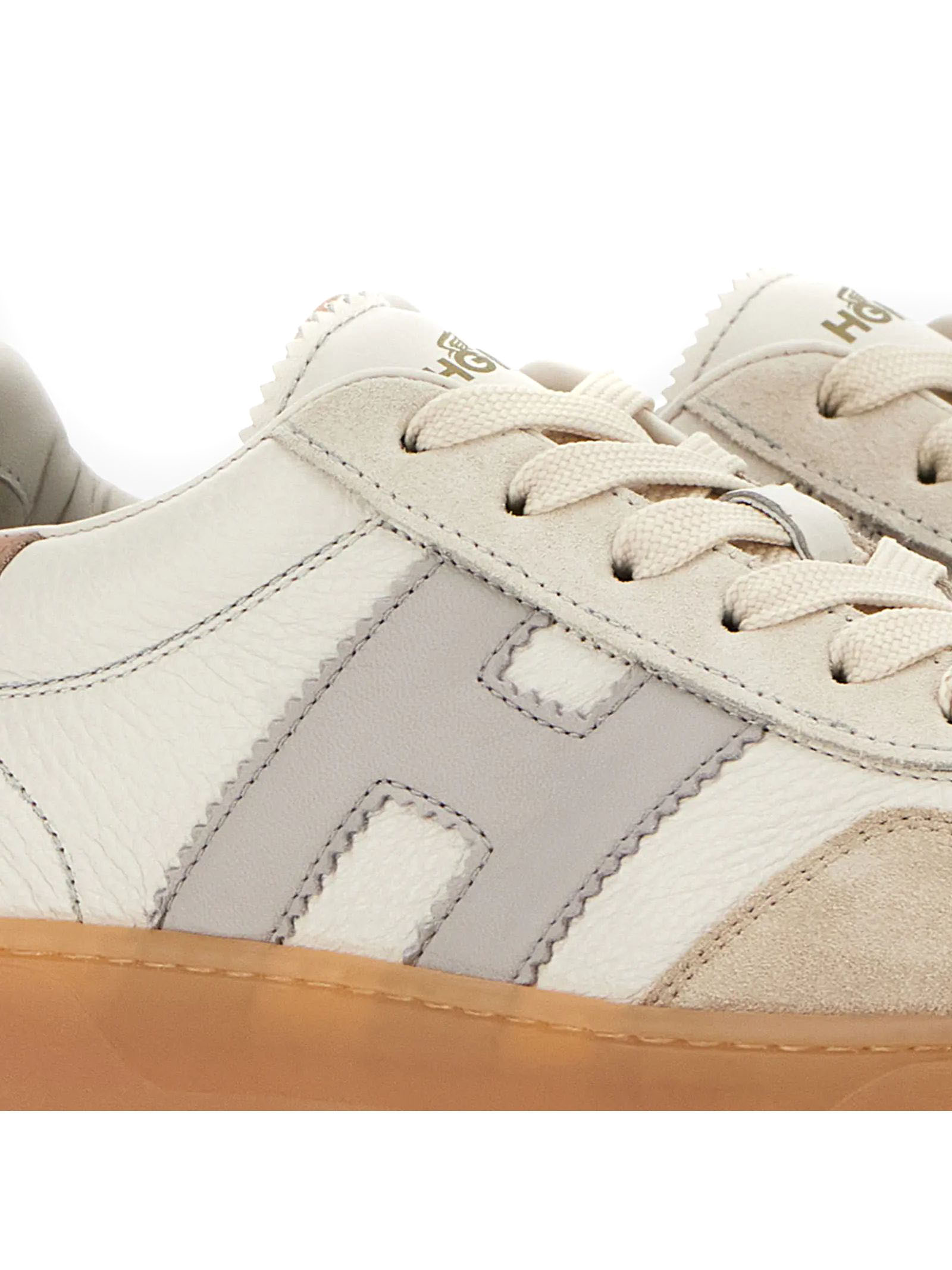 Sneakers Hogan Cool Grey Pink Ivory, Leather upper, Suede inserts, Smooth leather side H, Nappa leather details, 8 mm memory foam insole, Rubber (TPU) box sole, Total height 3.2 cm