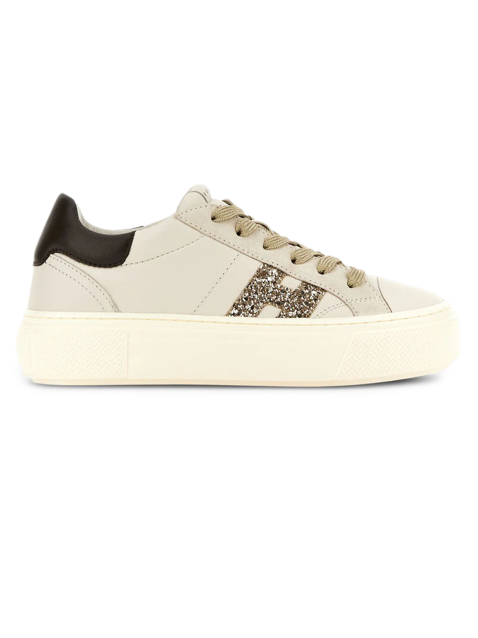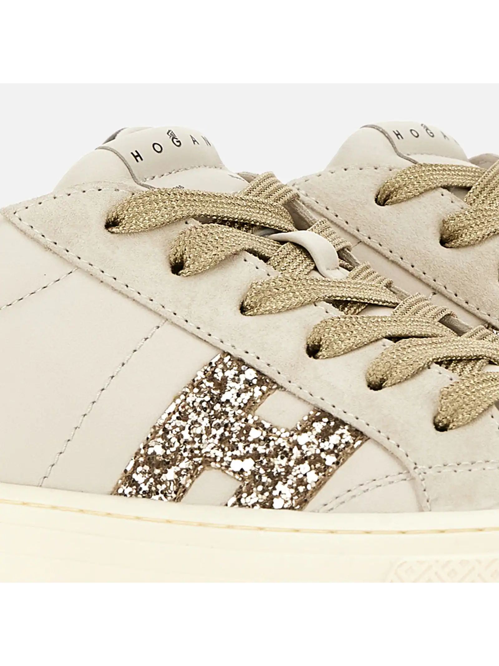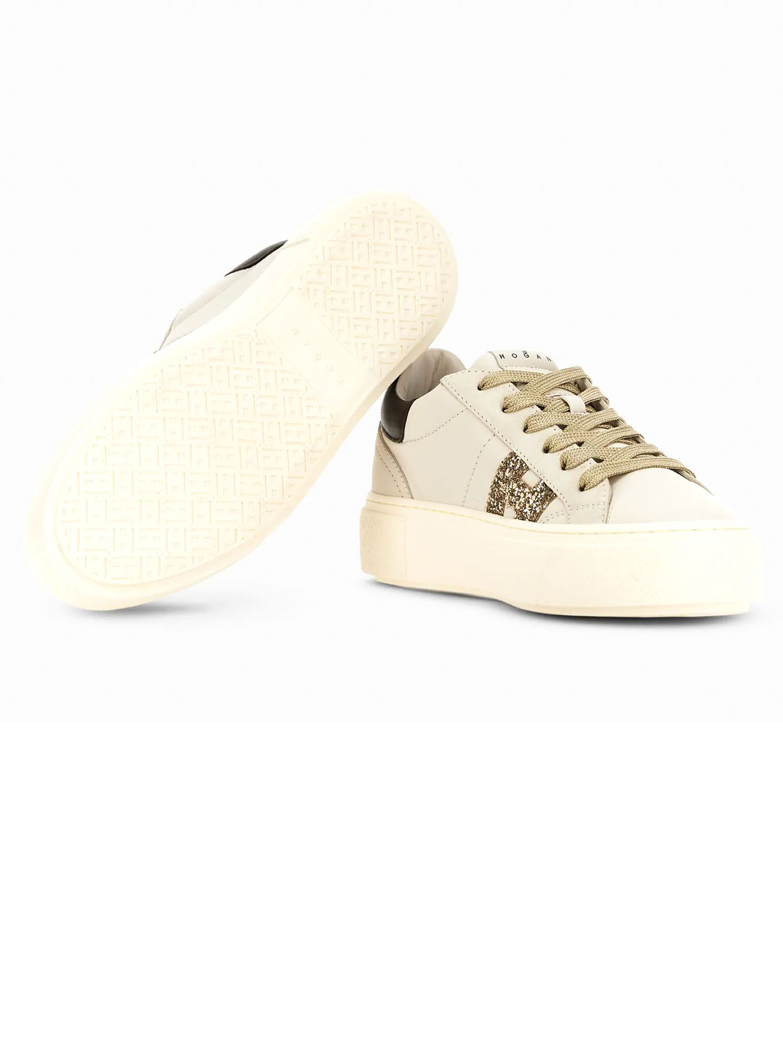 Sneakers Hogan Crosswind Ivory, Nappa leather upper, Suede inserts, Rubberized leather details, Glitter side H, 8 mm memory foam insole, Rubber sole, Total height 5.6 cm