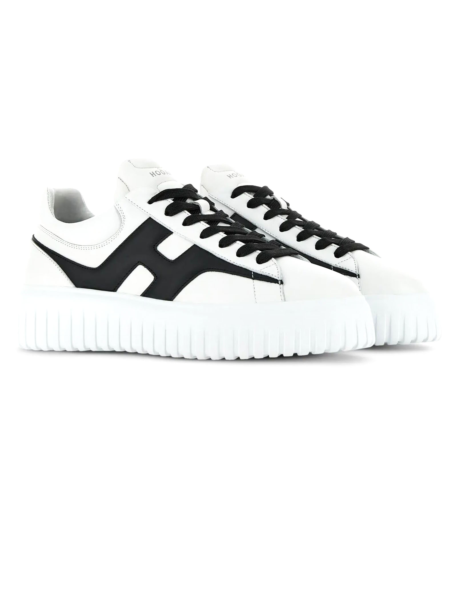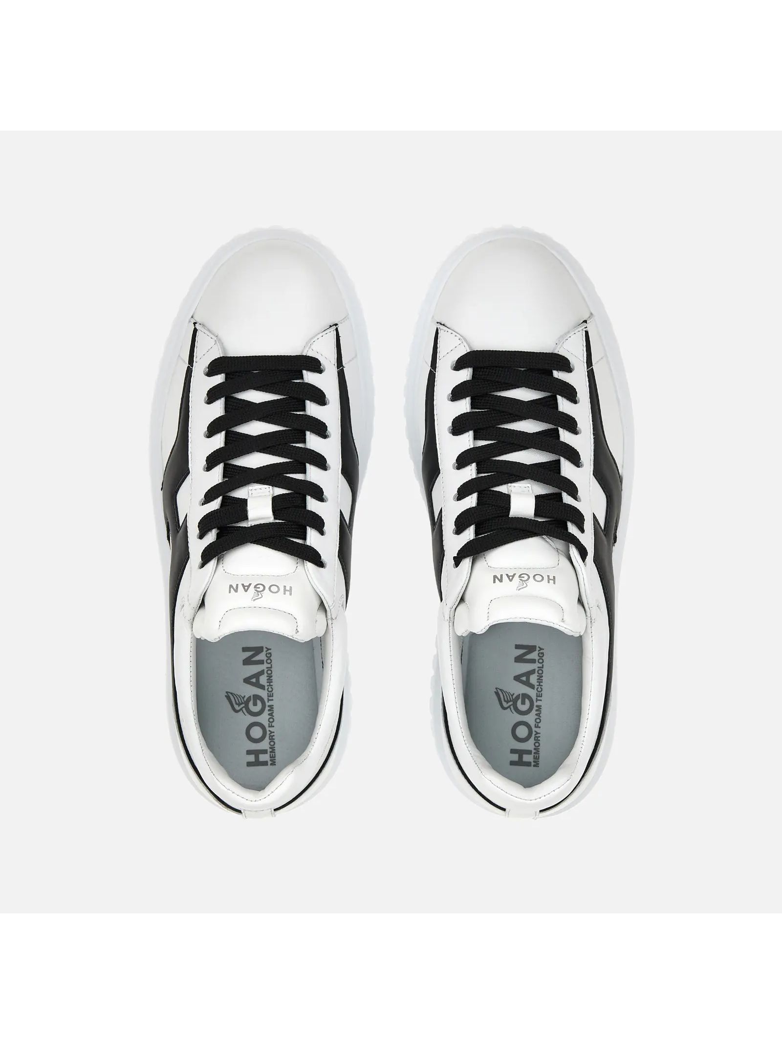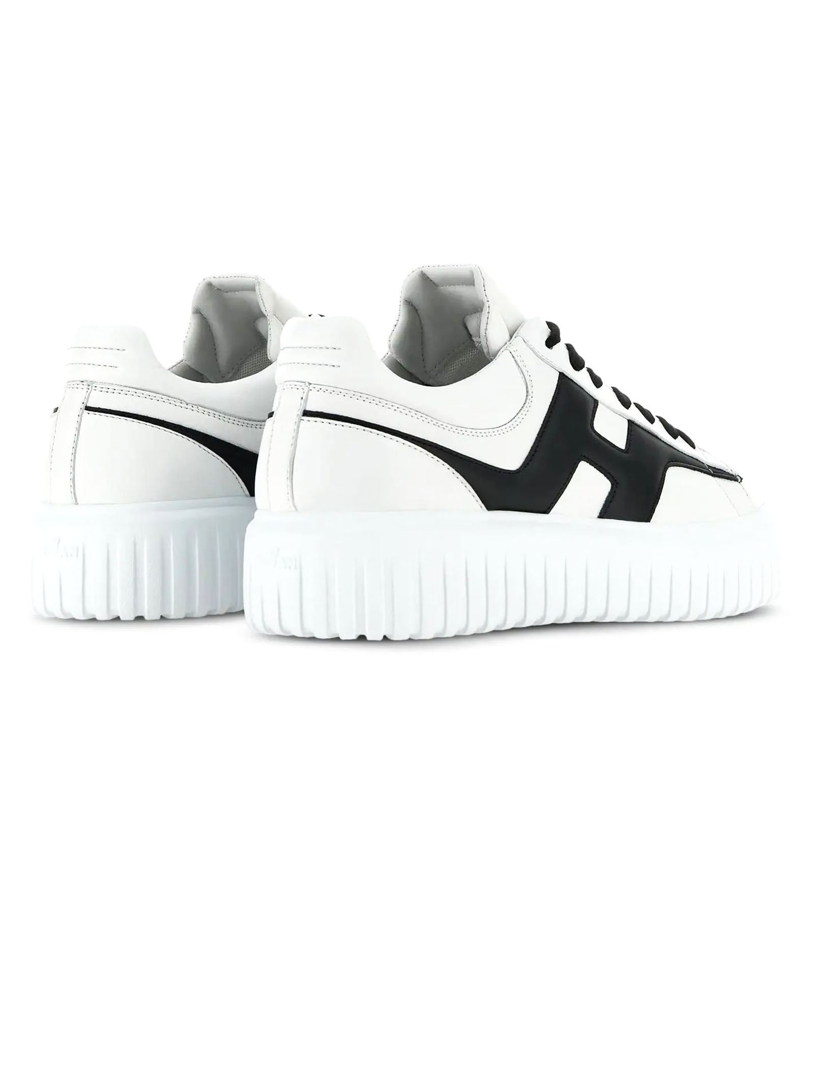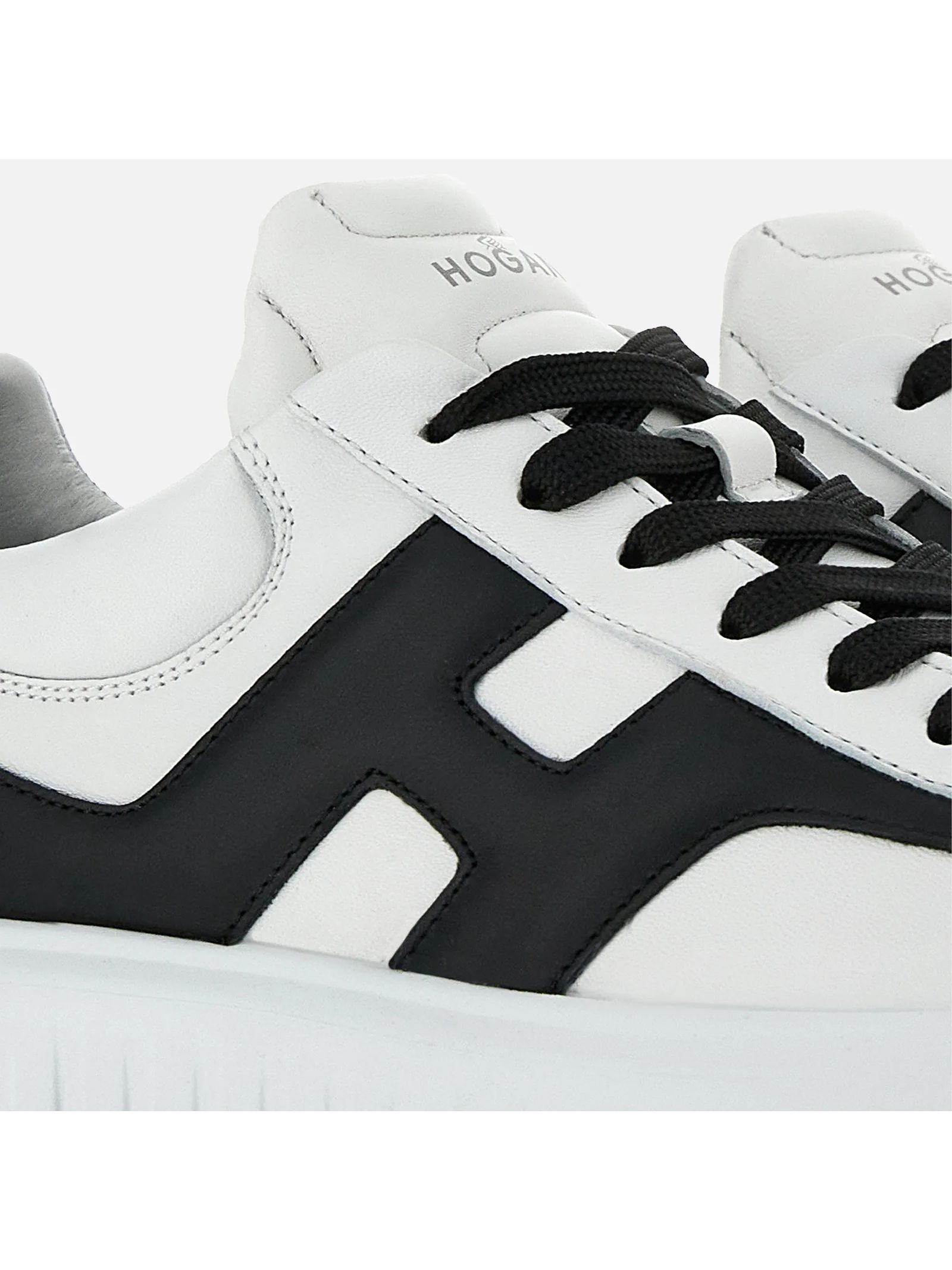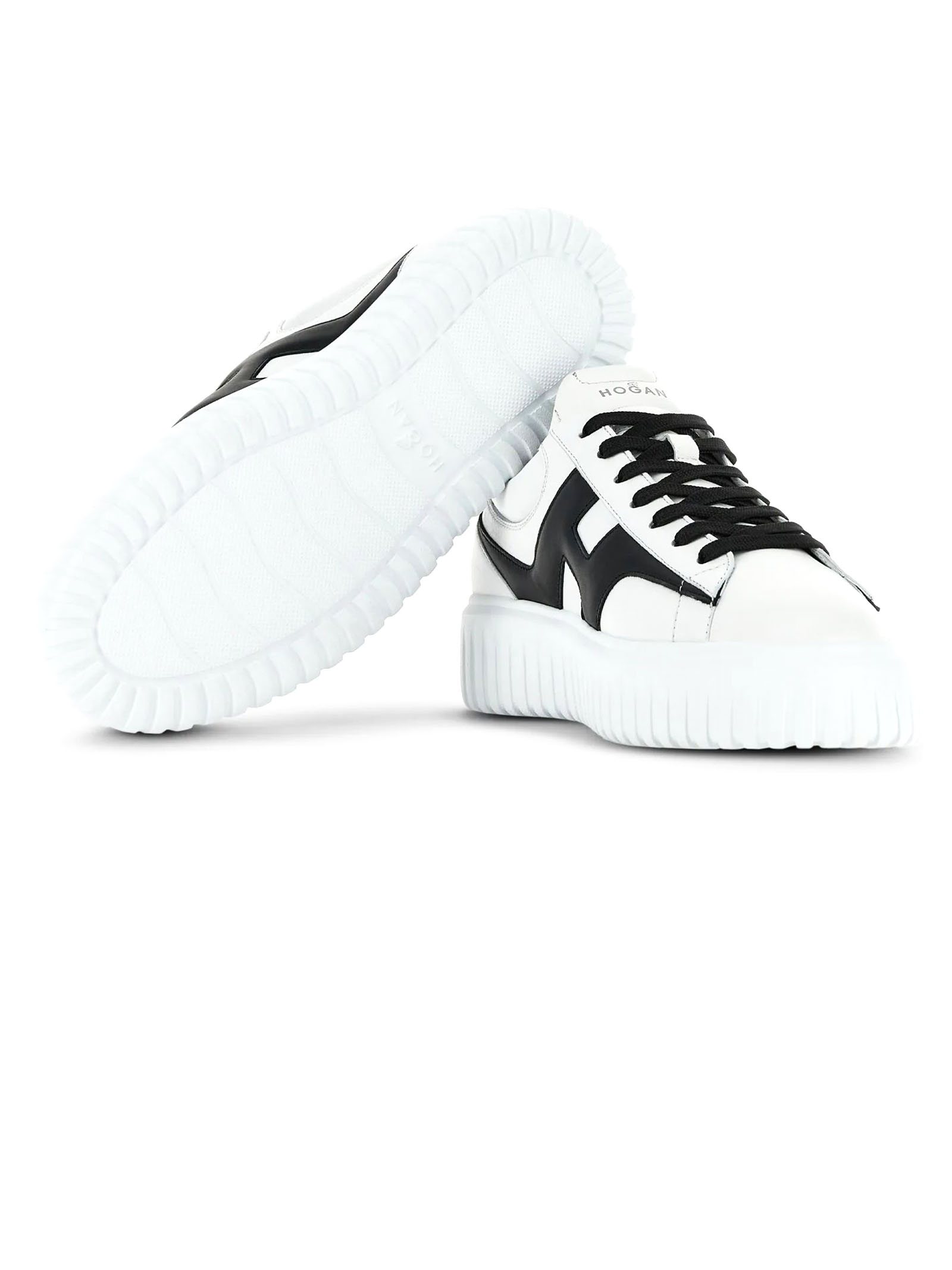 Sneakers Hogan H-Stripes White Black, Nappa leather upper, H side, 8 mm memory foam insole, EVA outsole, Total height 4.8 cm