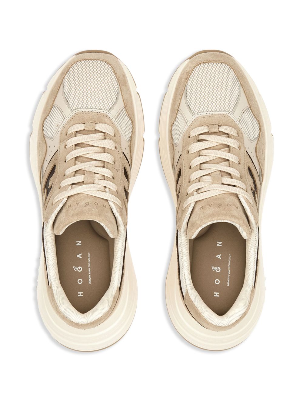 Hogan Hi-Fi Sneakers Beige Brown, suede leather, carved H on the side, Lycra mesh fabric inserts, smooth leather details, 8 mm memory foam insole, rubber sole, total height 6.5 cm