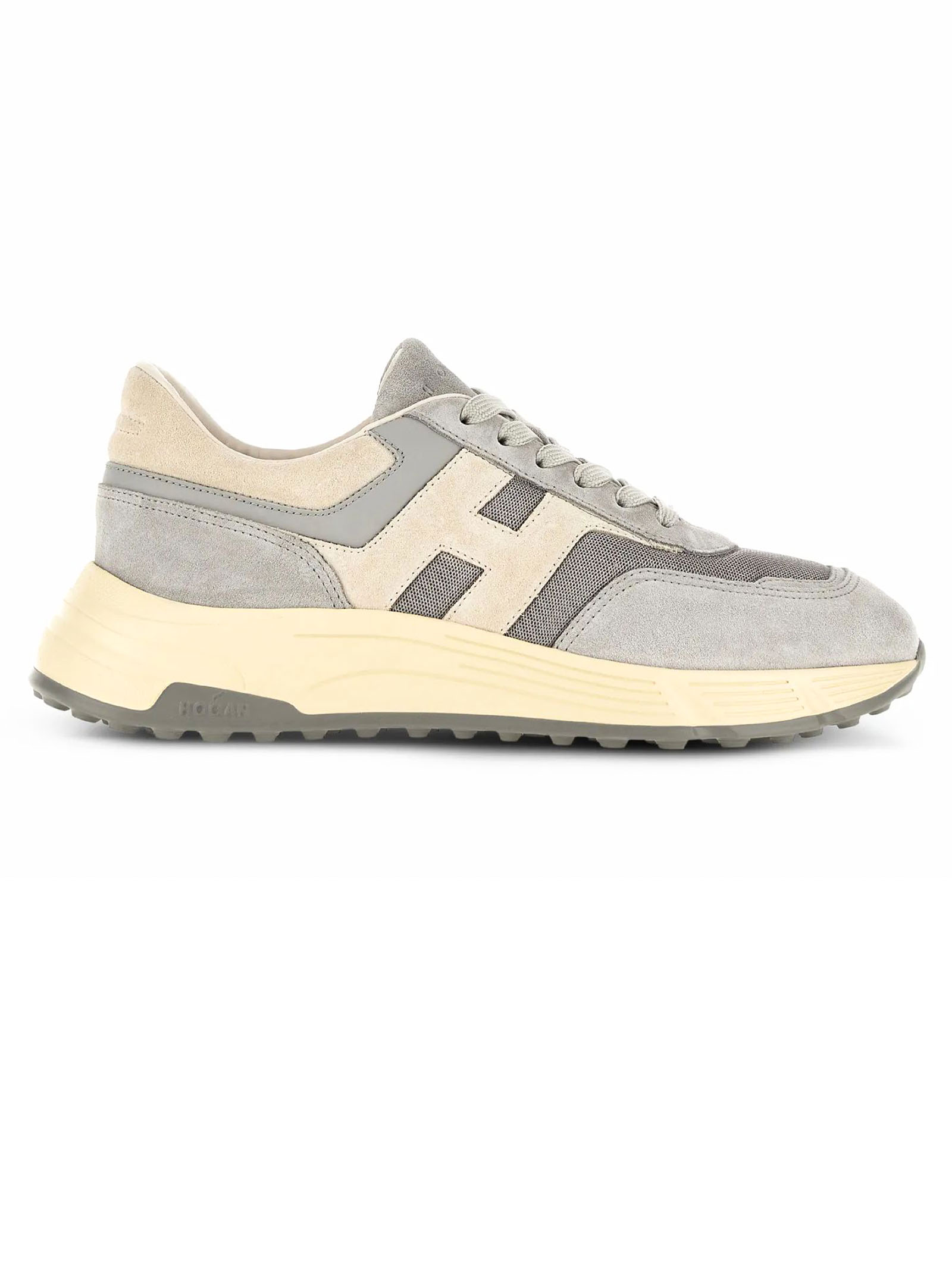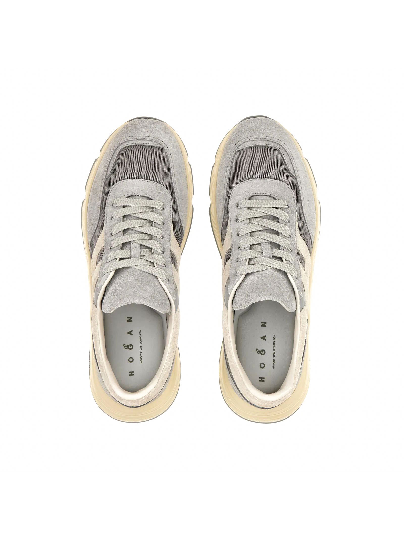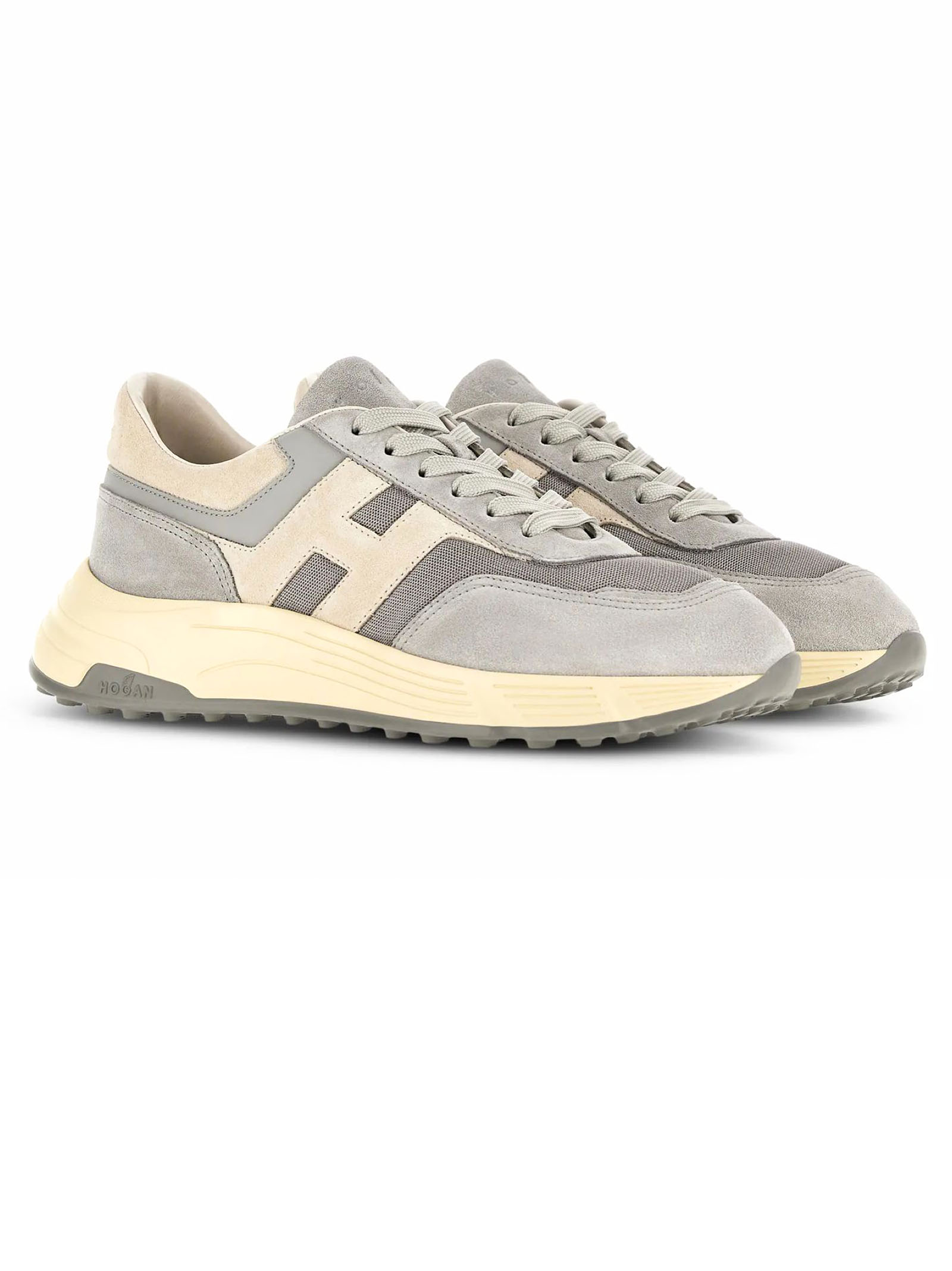 Sneakers Hogan Hyperlight Light Blue Grey, Suede and woven fabric upper, Smooth leather detailing, Slanted side H, Memory foam insole 8 mm, Rubber outsole, Total height 4.5 cm