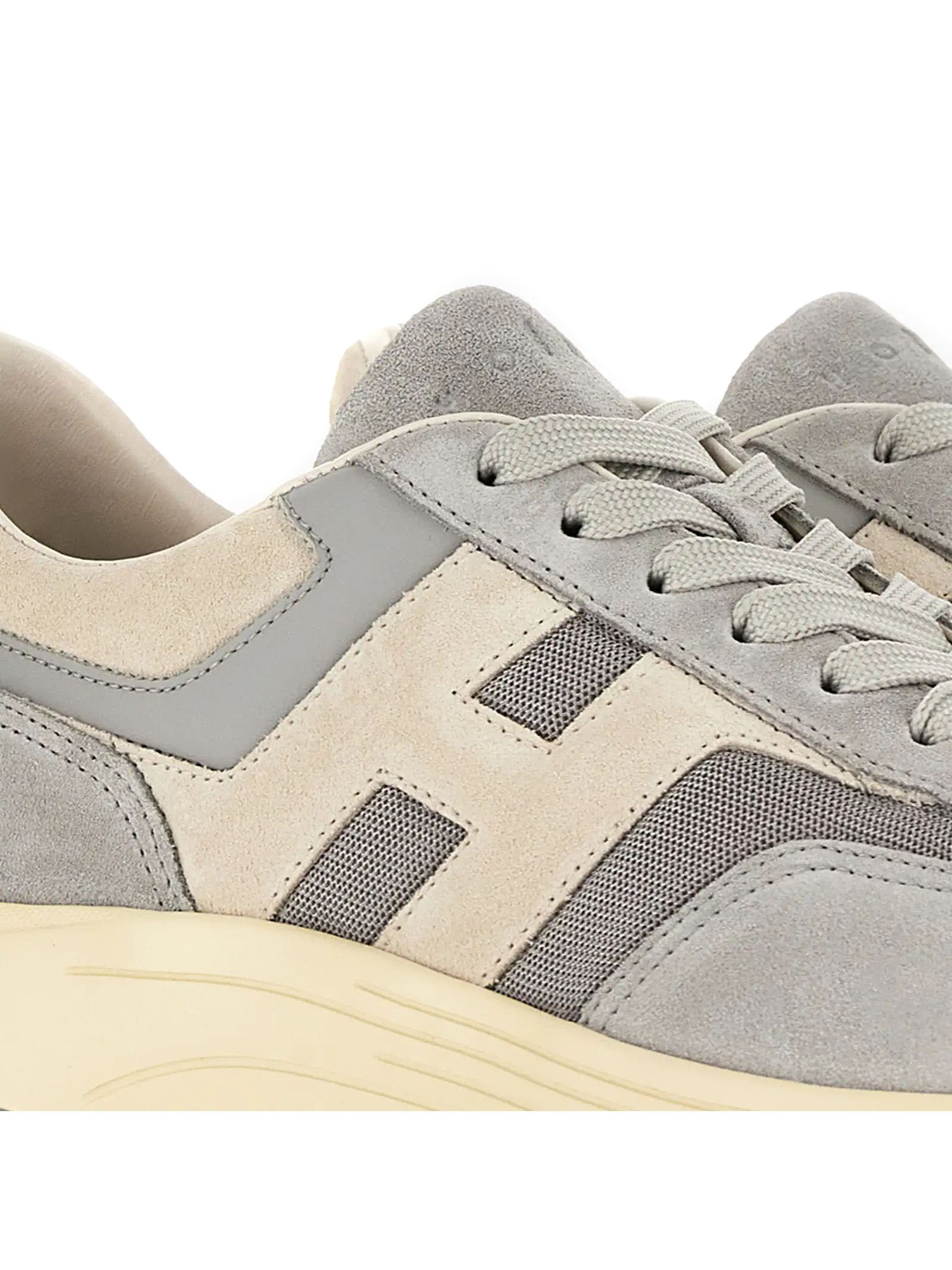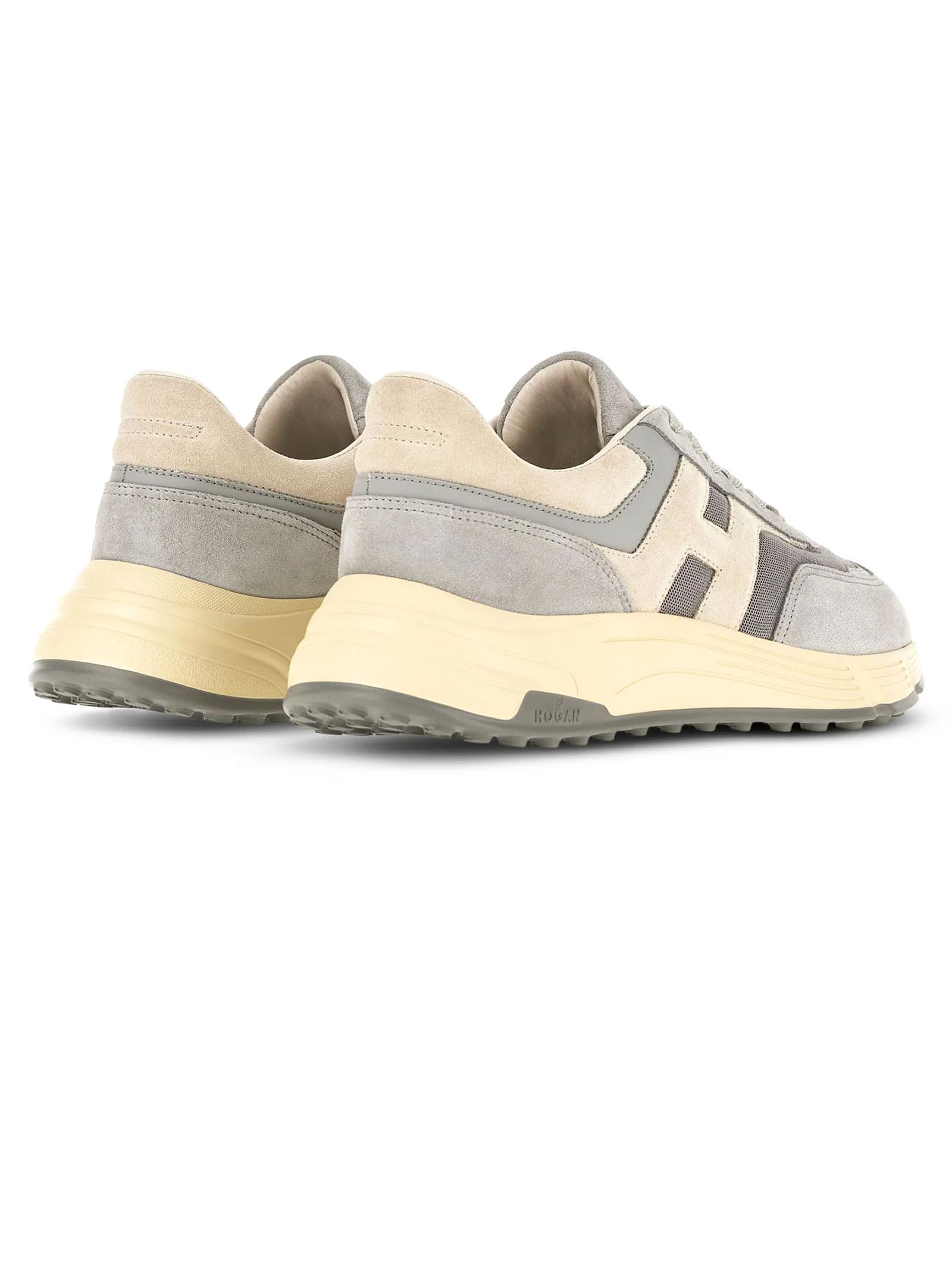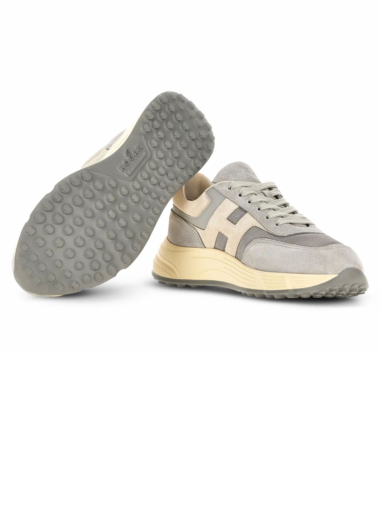 Sneakers Hogan Hyperlight Light Blue Grey, Suede and woven fabric upper, Smooth leather detailing, Slanted side H, Memory foam insole 8 mm, Rubber outsole, Total height 4.5 cm