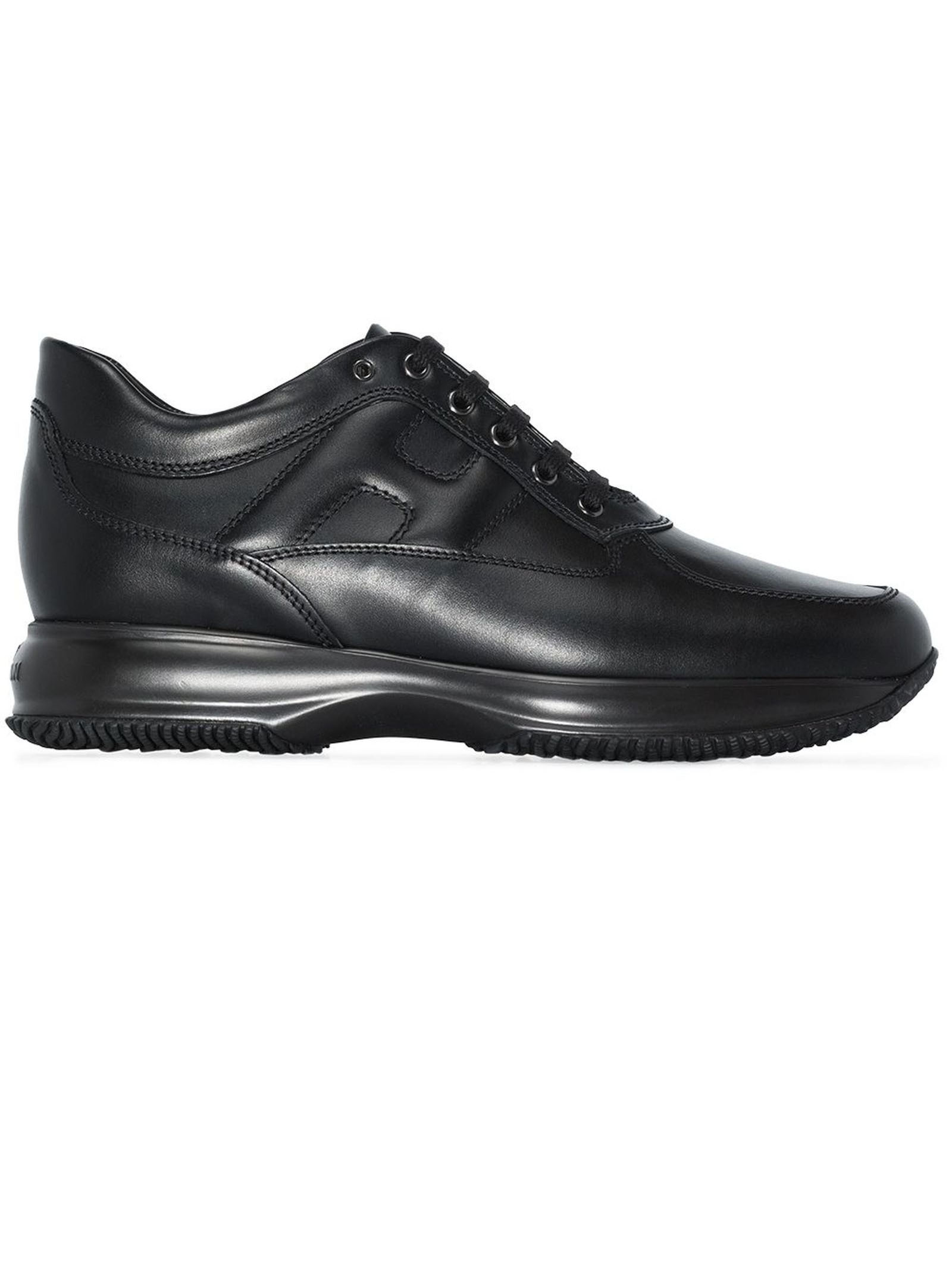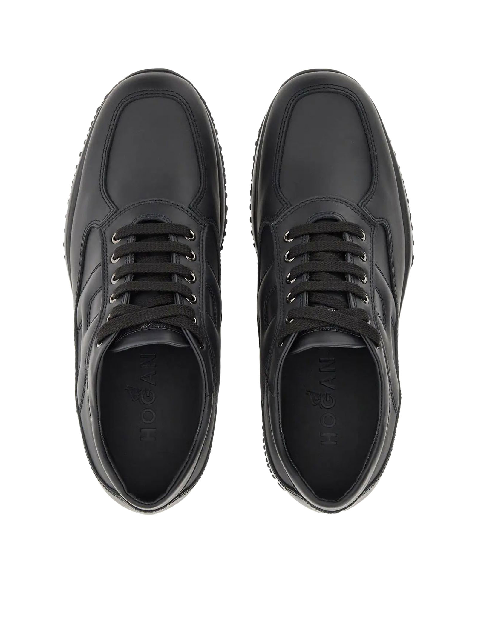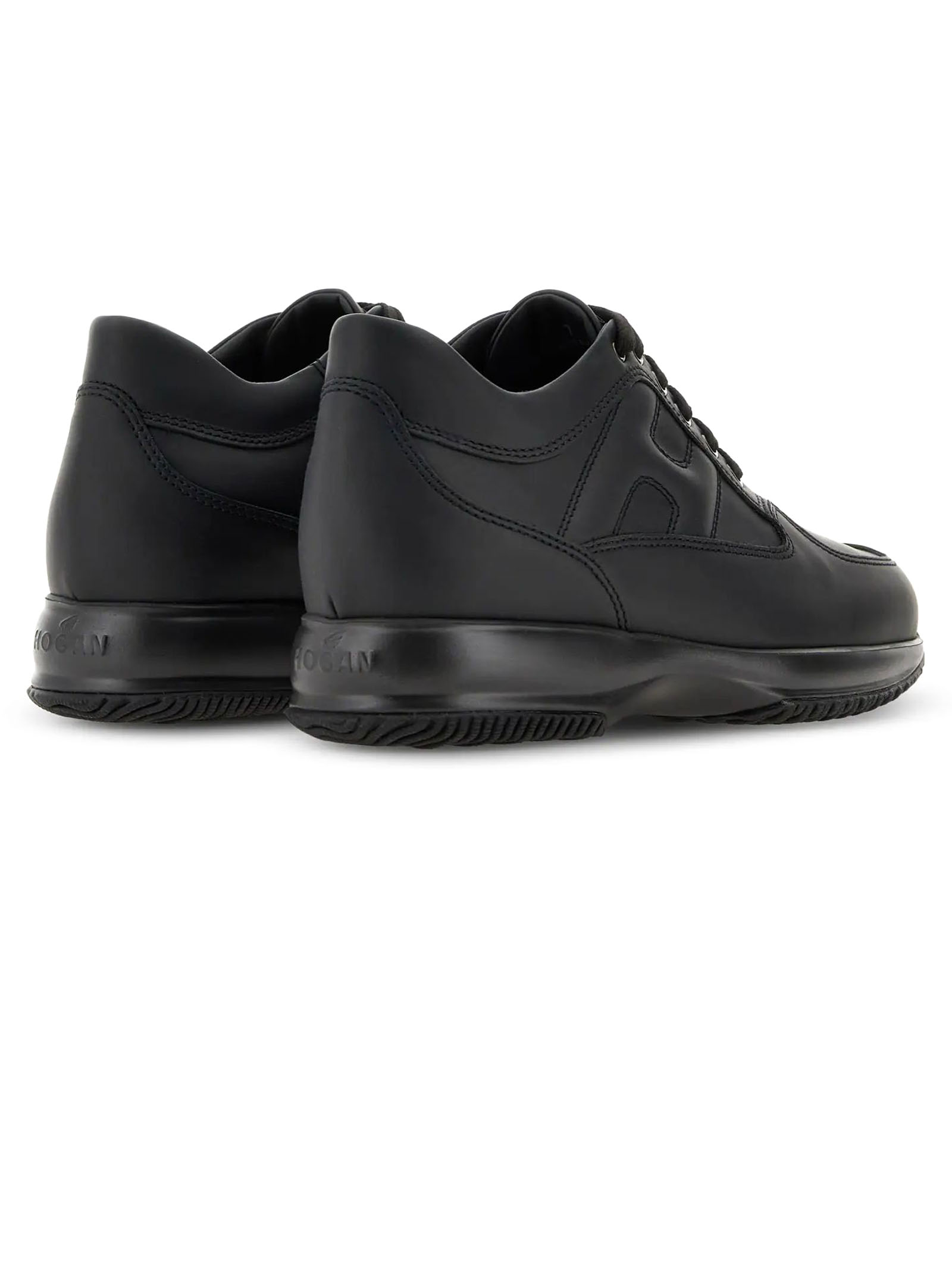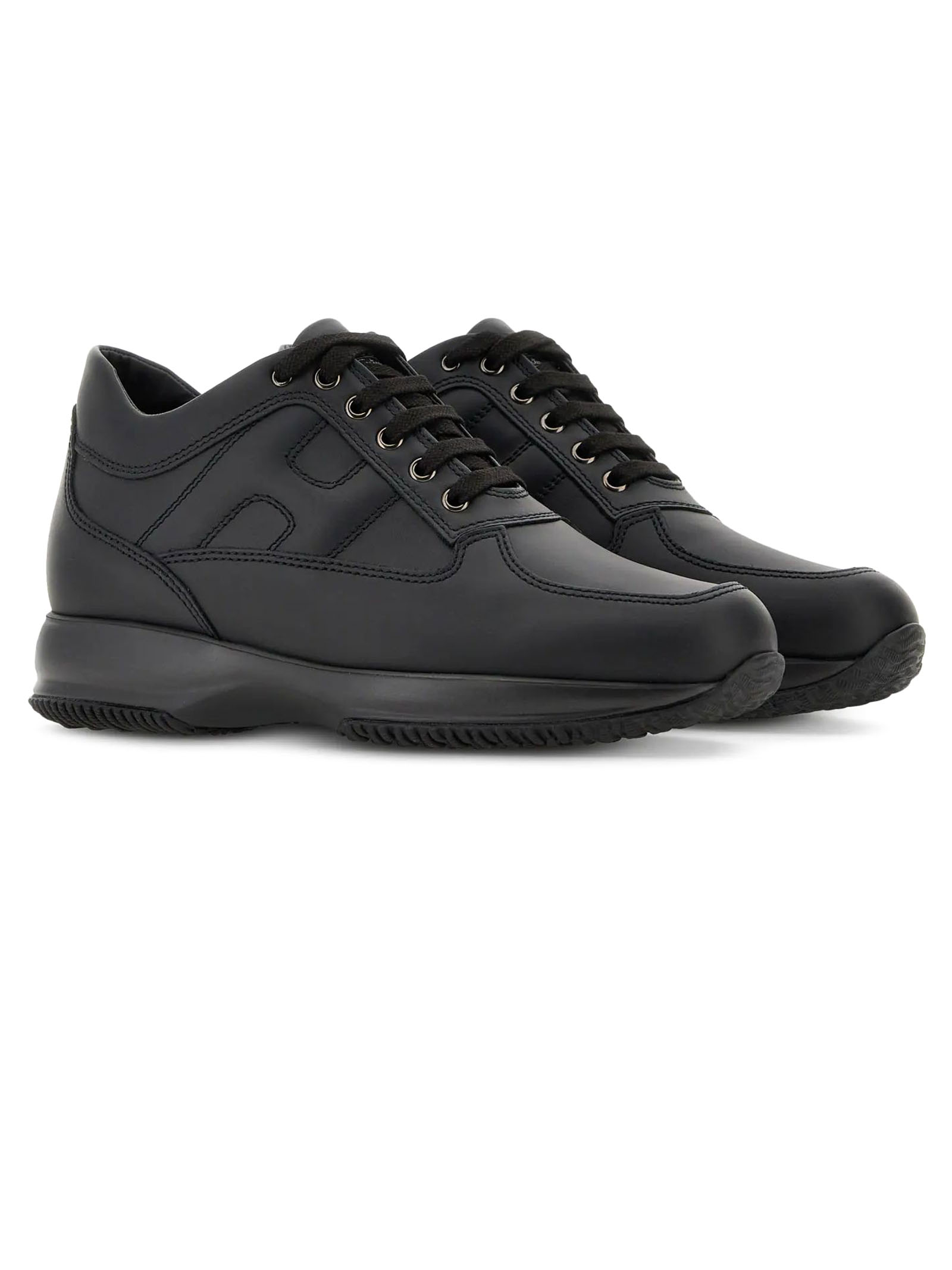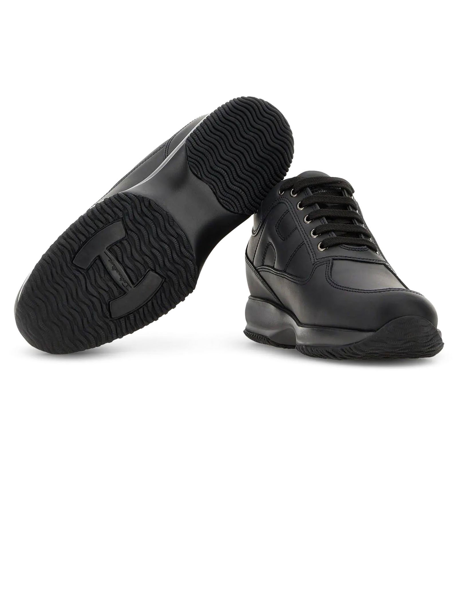 Interactive sneakers in black leather upper, exposed stitching, padded side H, removable insole 1.2 cm rise, rubber outsole, total height 5.7 cm