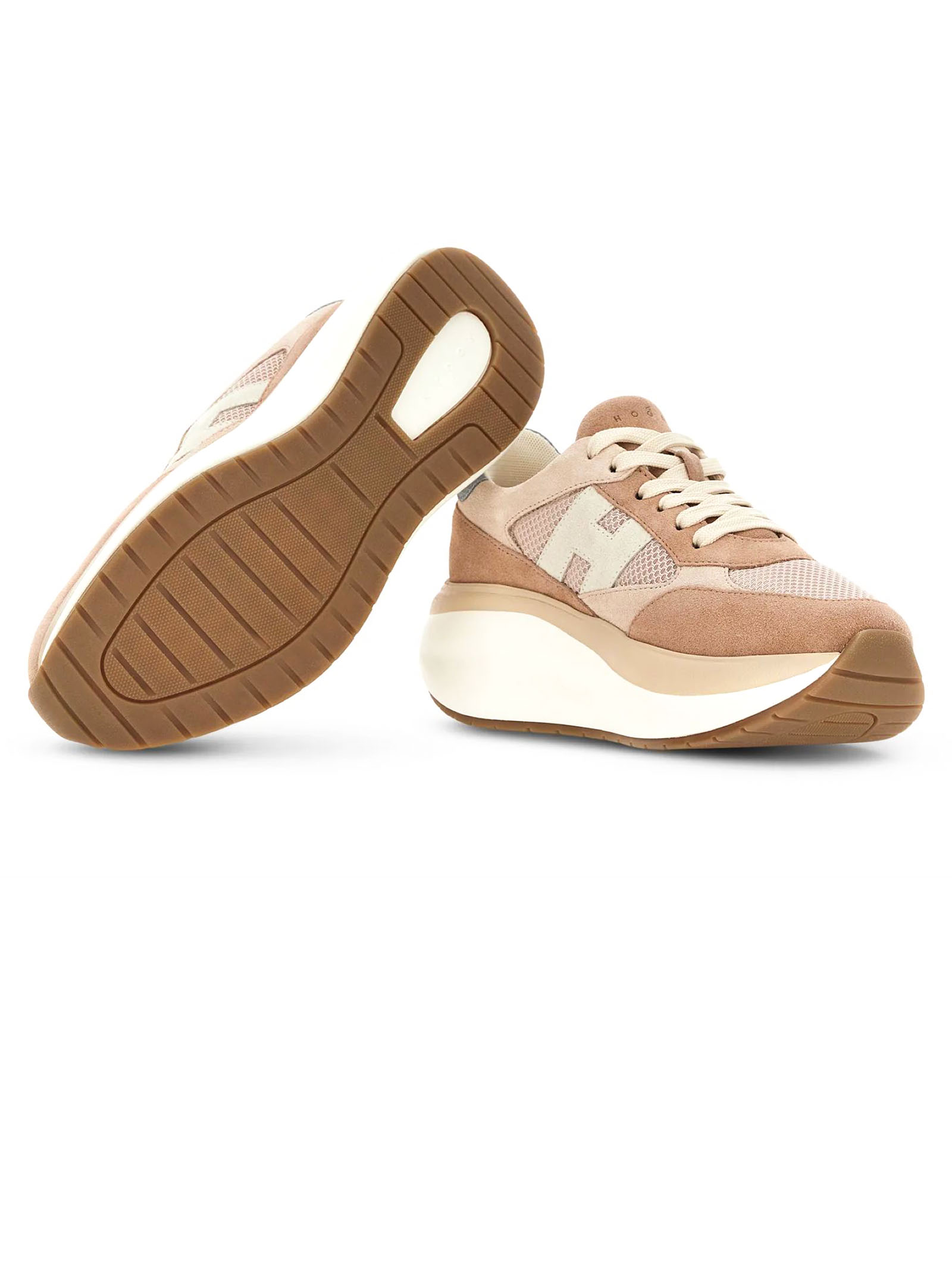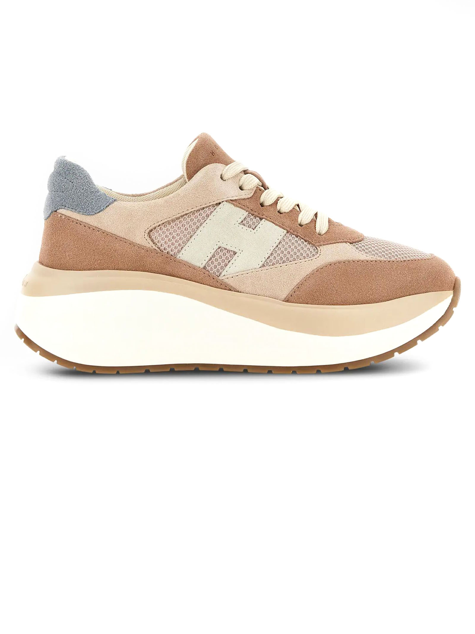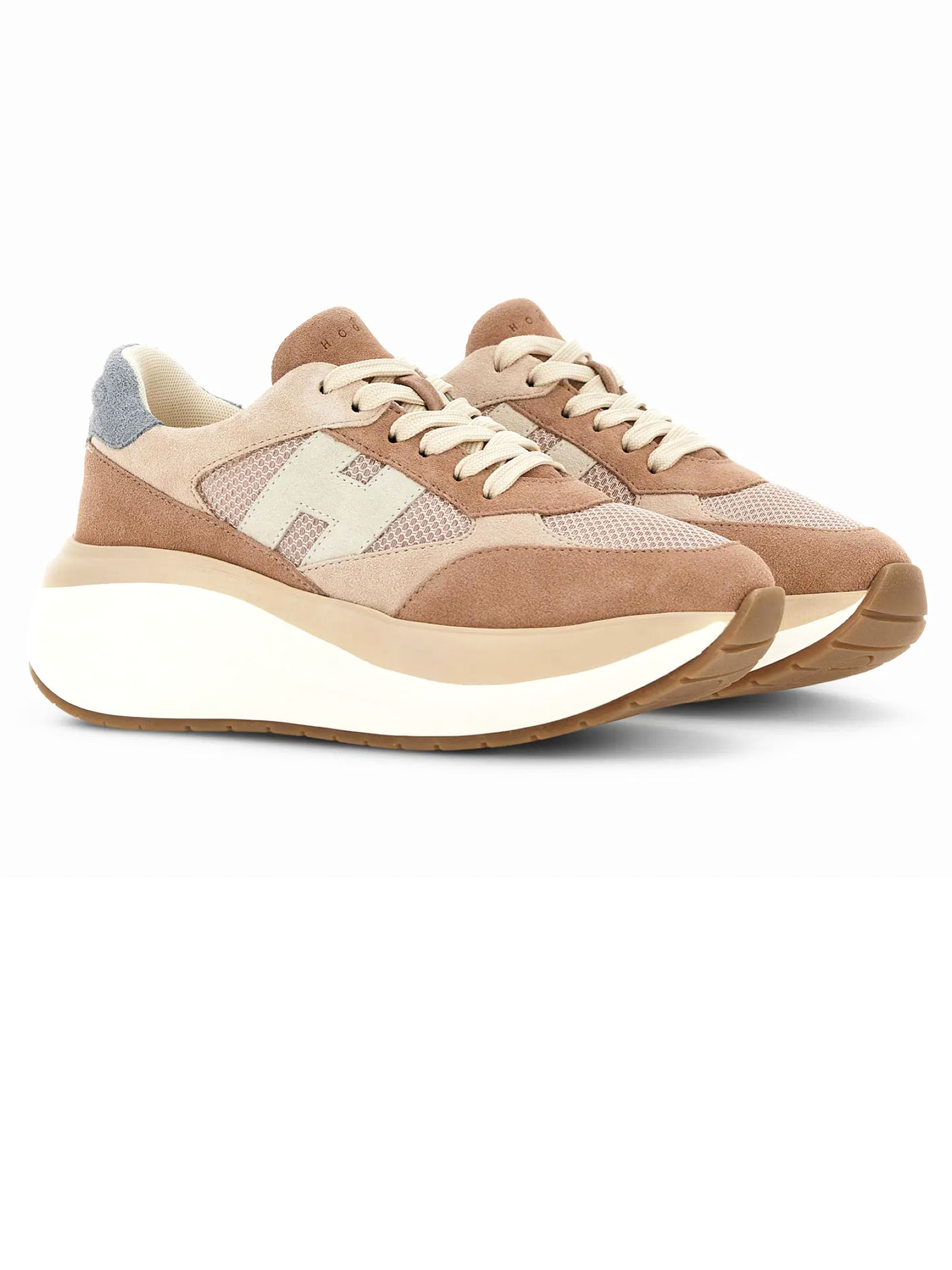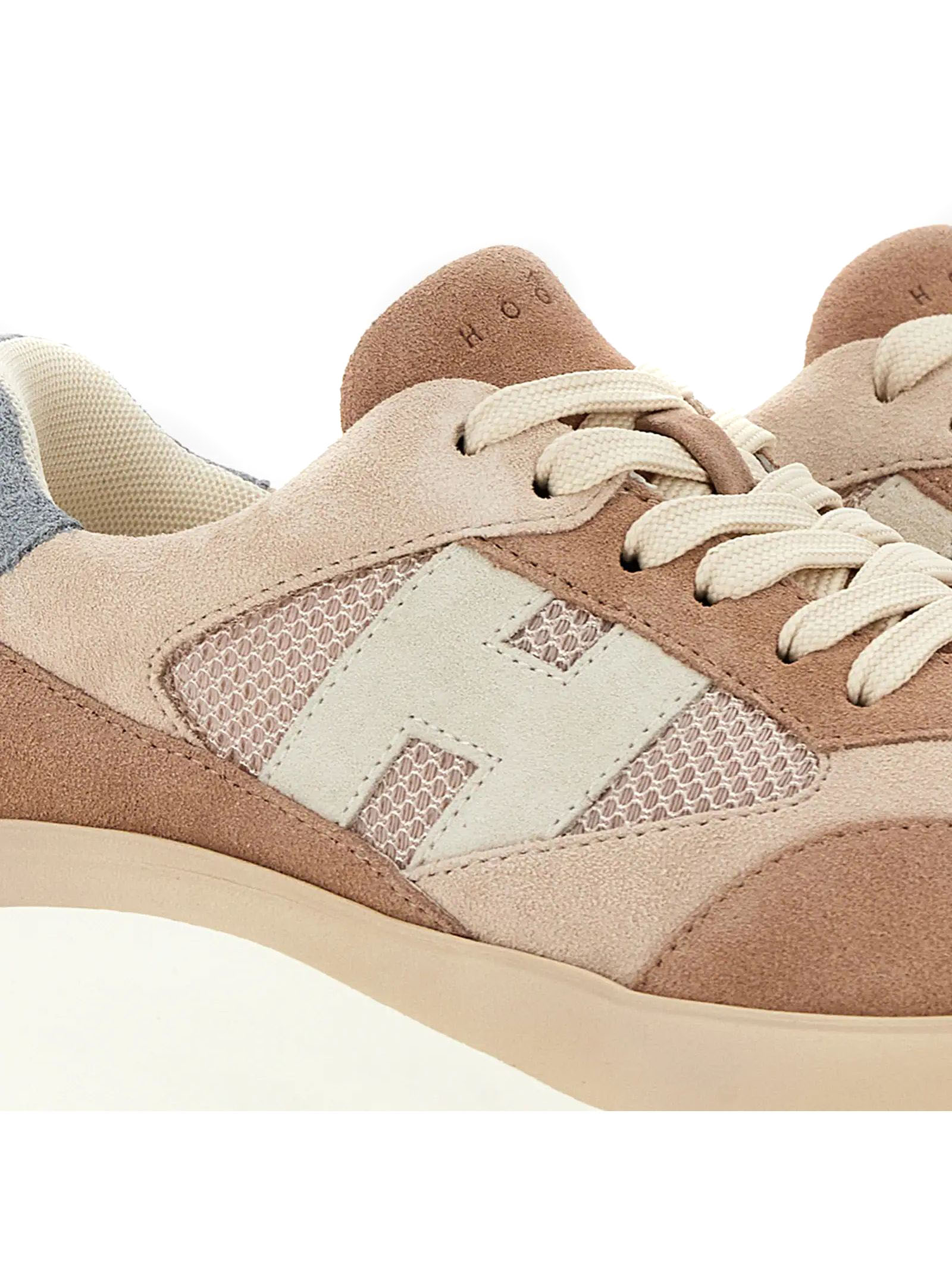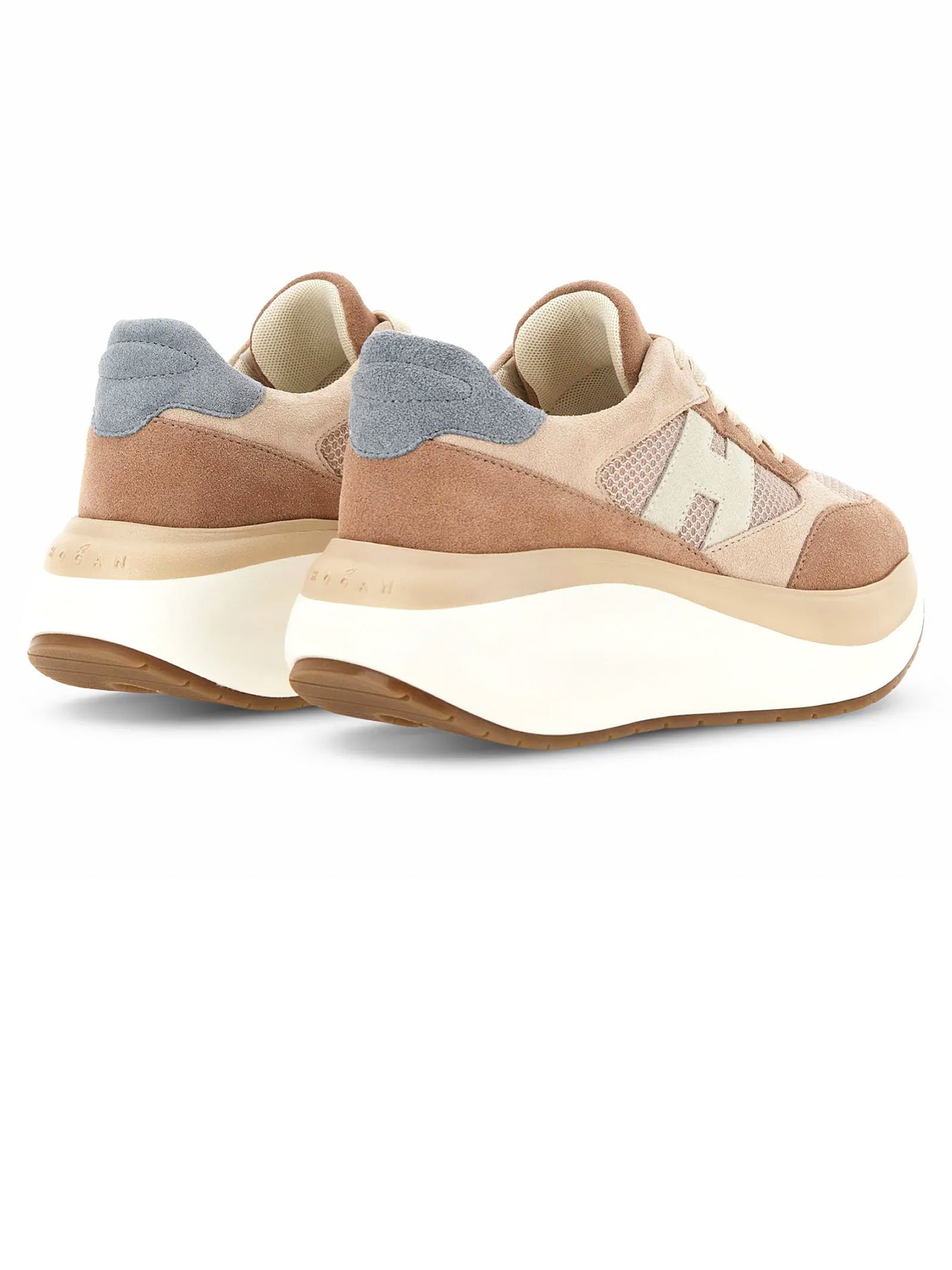 Sneakers Hogan Maxi I Active Light Blue Pink Beige, Suede and fabric upper, H logo on the side, Hogan logo embossed on the tongue, 5 mm memory foam insole, extra-light rubber sole, total height 6.5 cm