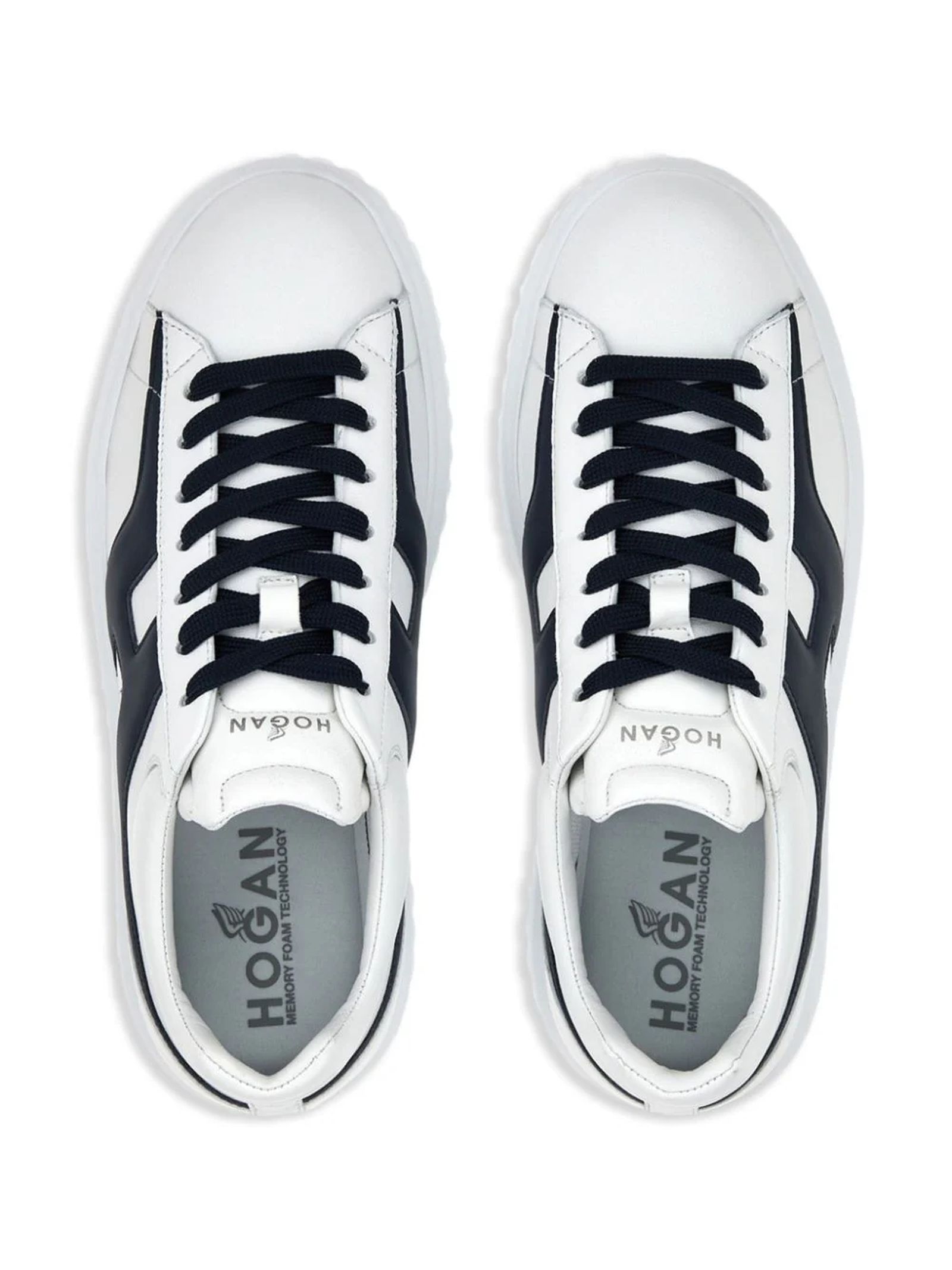 white h645 hoganskindecorative stitchingcontrast stitchingside embroidered logotongue with printed logoround tipfront closure with lacesinsole with memory foamChunky rubber sole