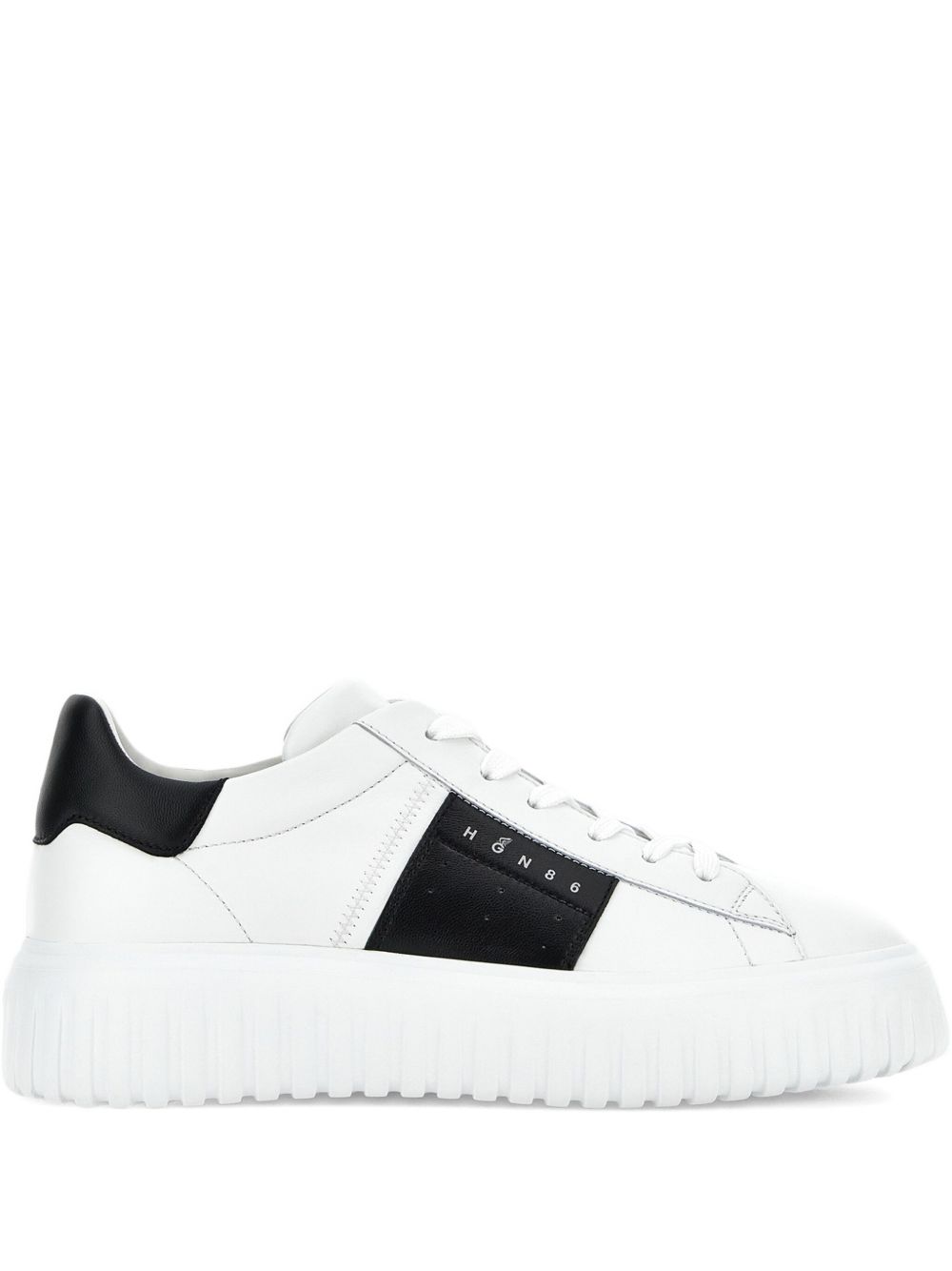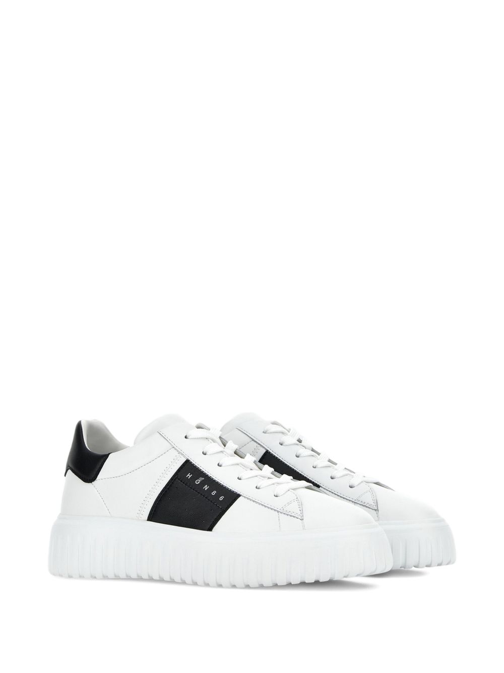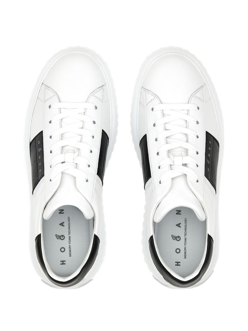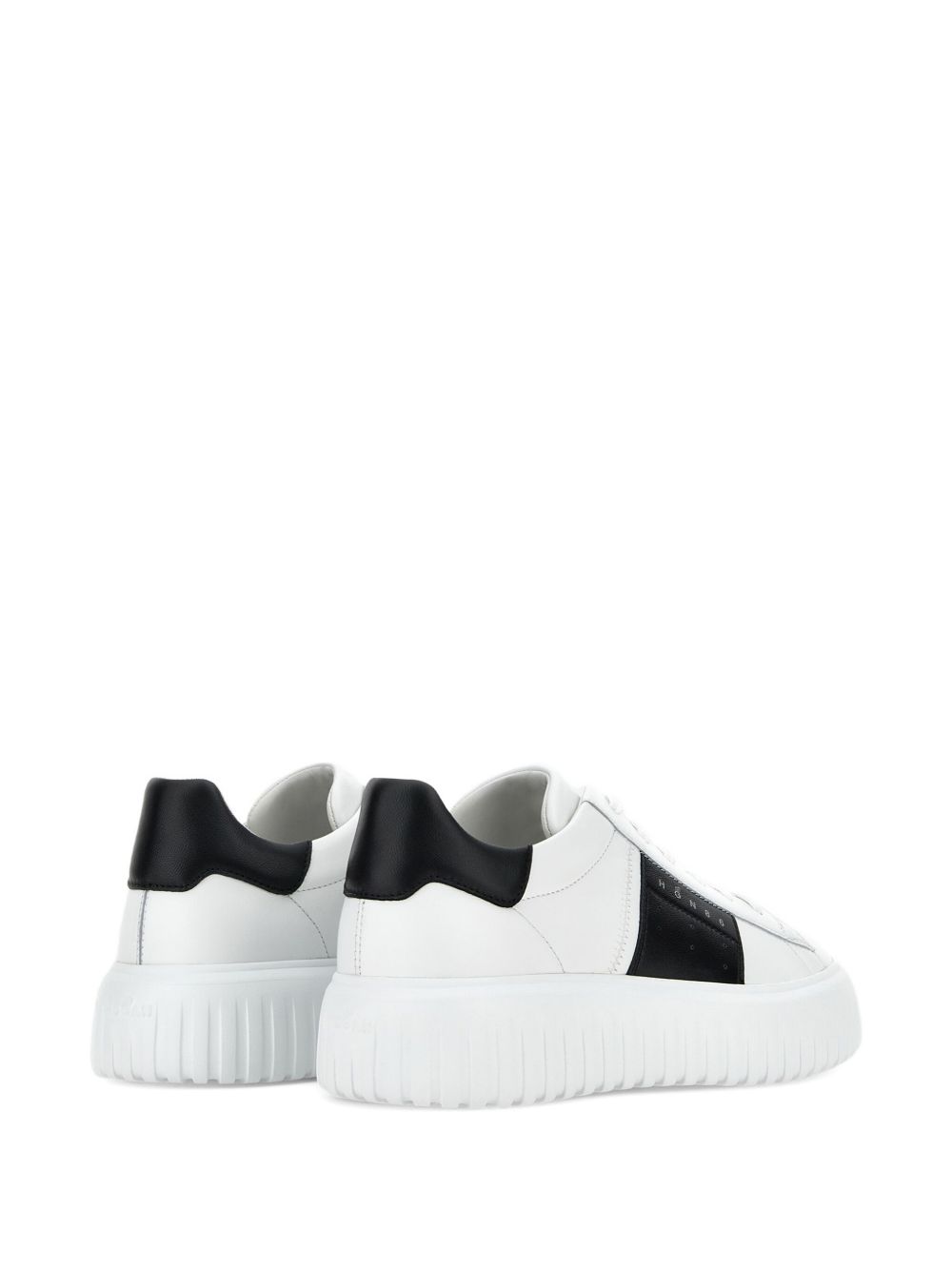 white front lace-up fastening round toe colour-block panelled design flat rubber sole