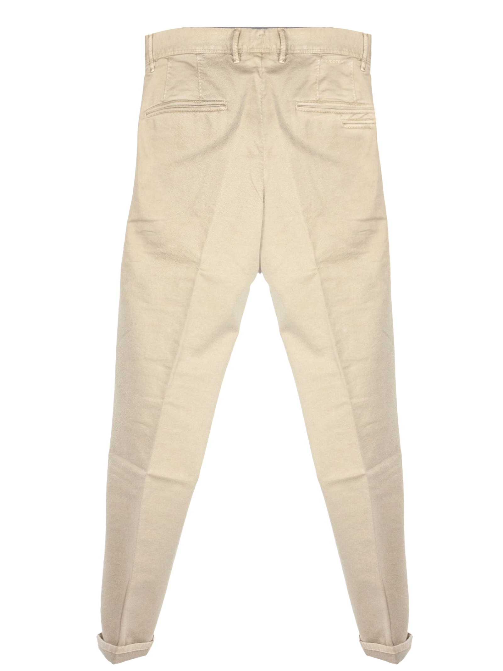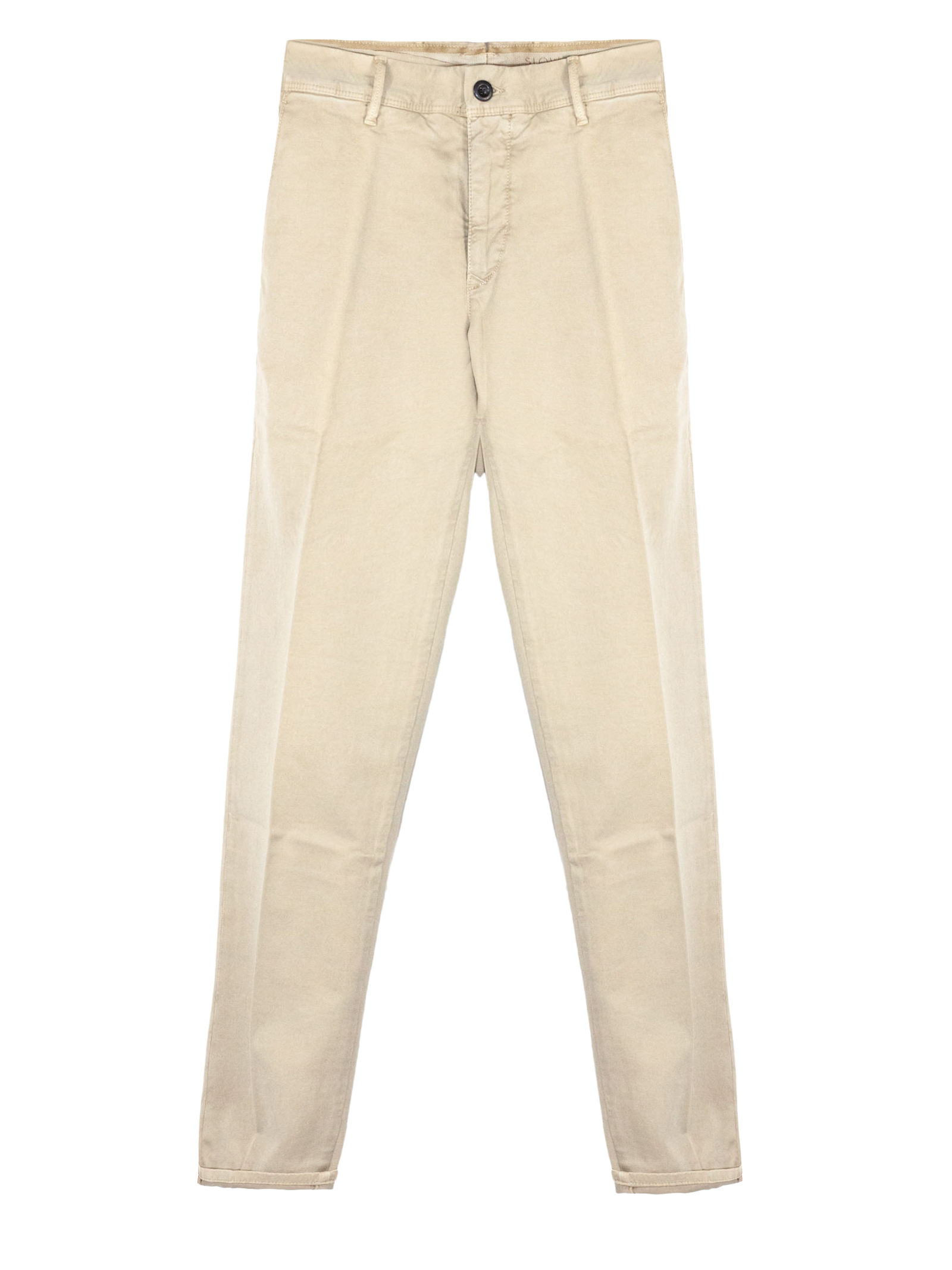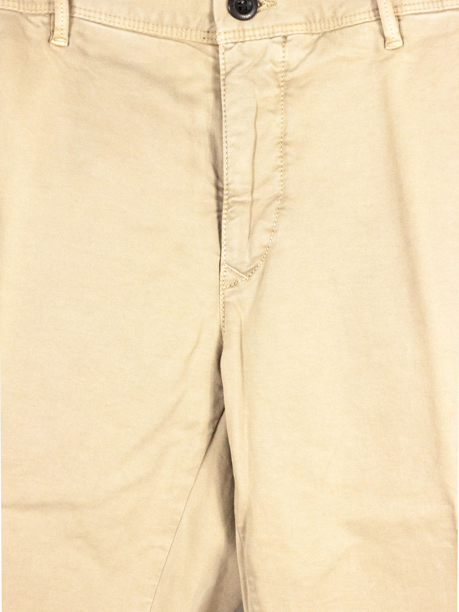 Beige cotton blend chino trousers, stretch-design, slim cut, concealed zip-fly and button fastening, belt loops, classic five pockets, embroidered logo to the rear, extra coin pocket to the rear, full-length, 98% Cotton 2%Elastane, Lining: 100% Cotton