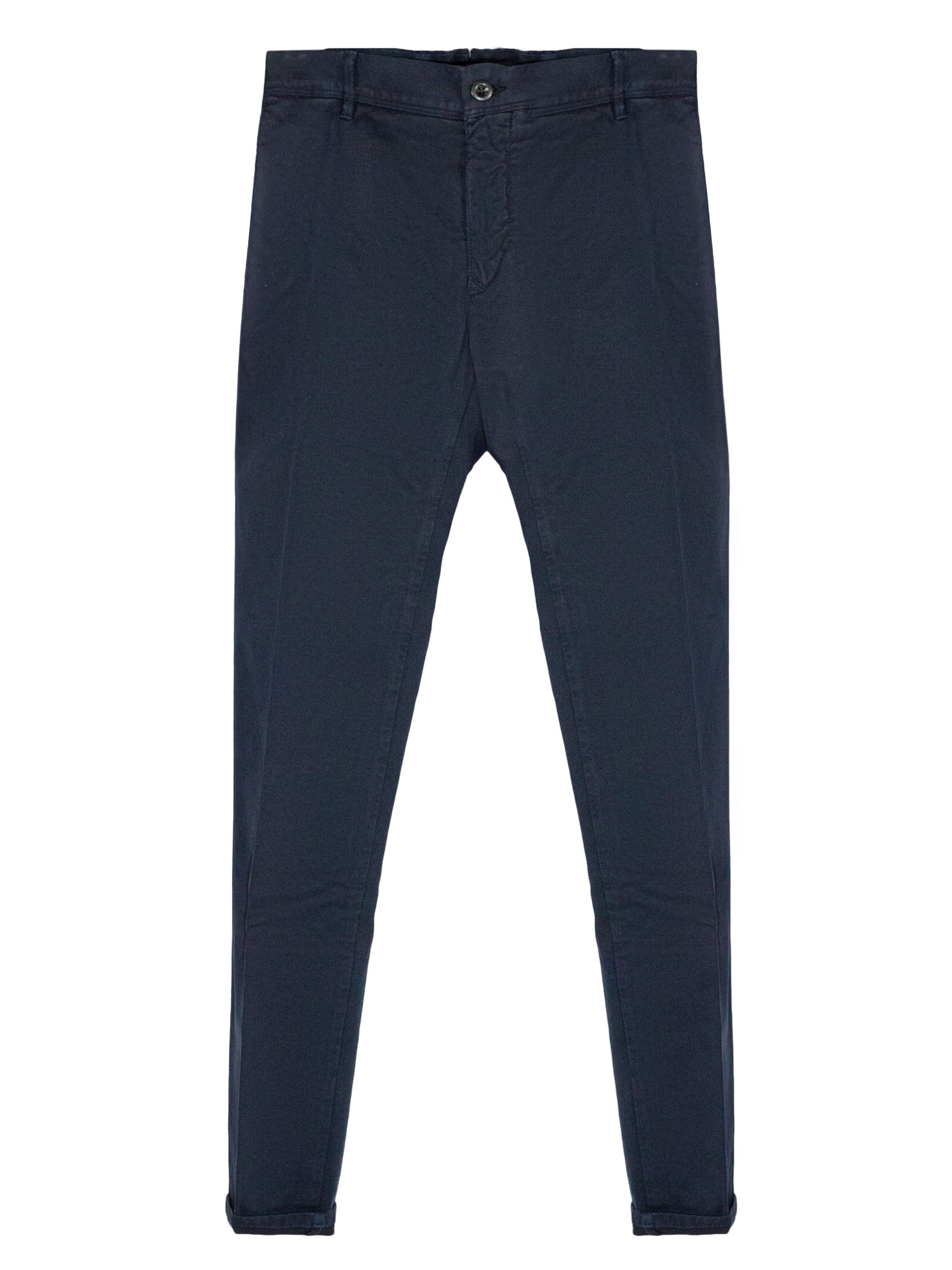 Blue cotton blend chino trousers, stretch-design, slim cut, concealed zip-fly and button fastening, belt loops, classic five pockets, embroidered logo to the rear, extra coin pocket to the rear, full-length, 98% Cotton 2%Elastane, Lining: 100% Cotton