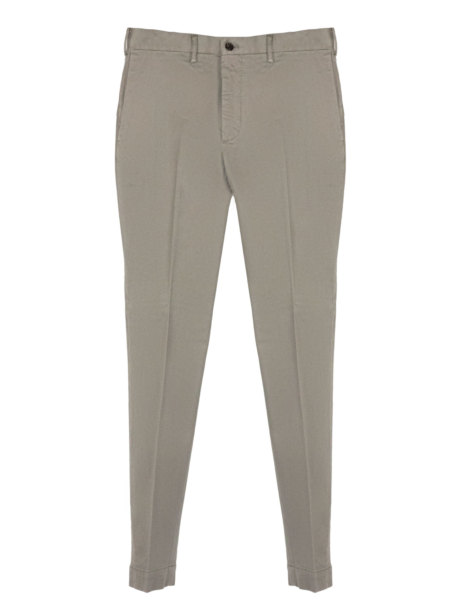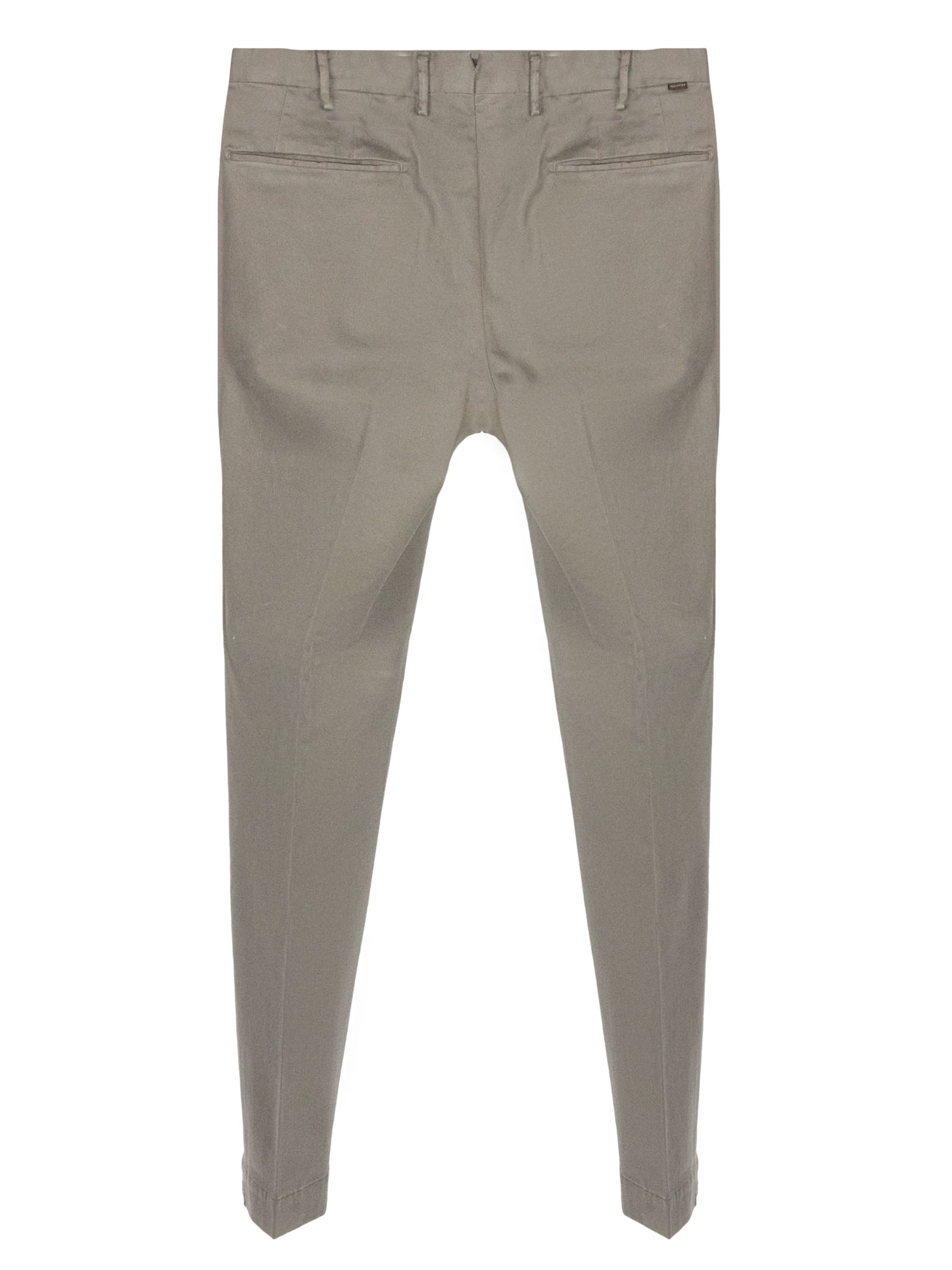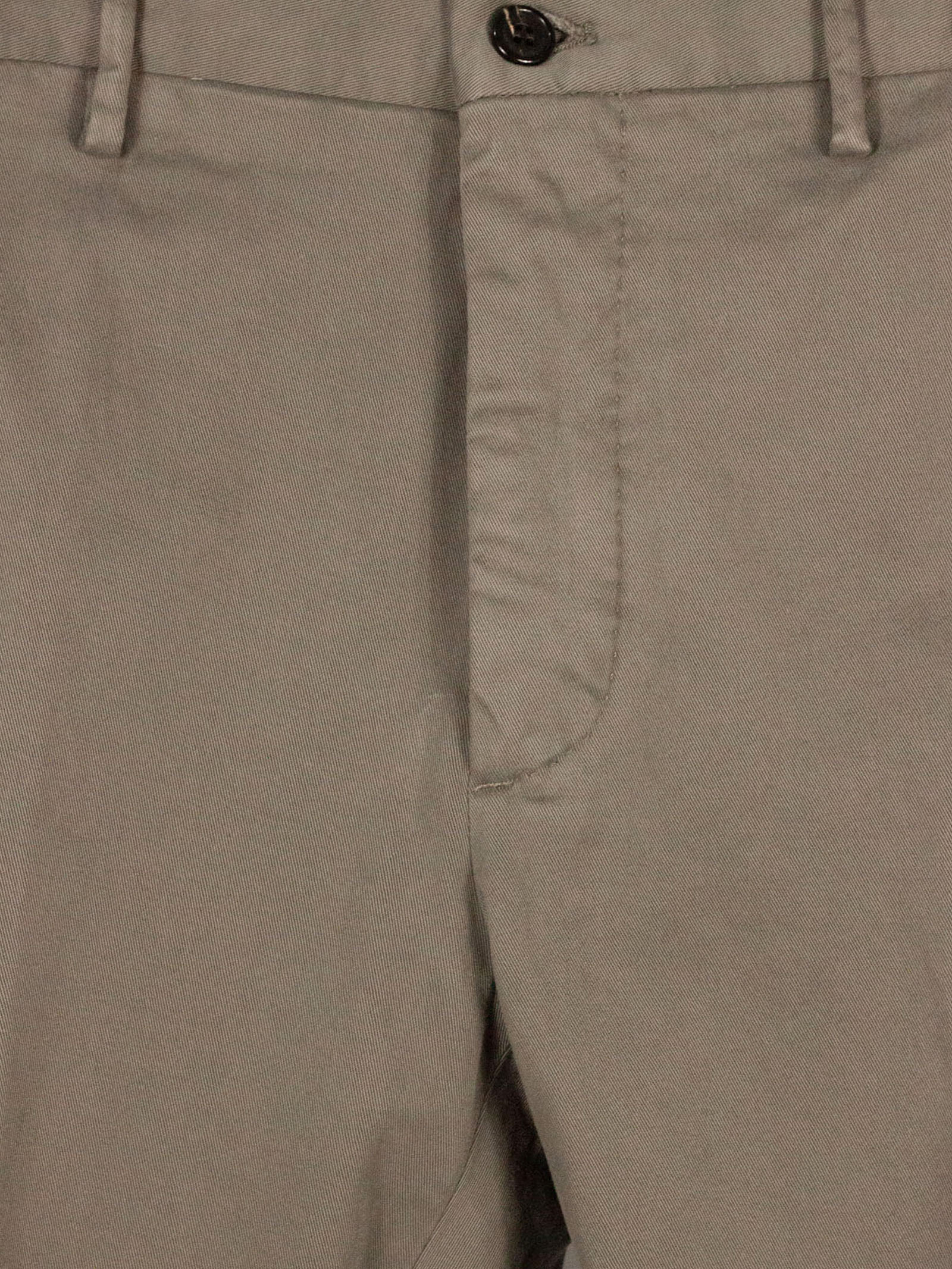 Brown mud cotton blend trousers with zip and button fastening, belt loops, side pockets, back pockets, 98% Cotton 2%Elastane