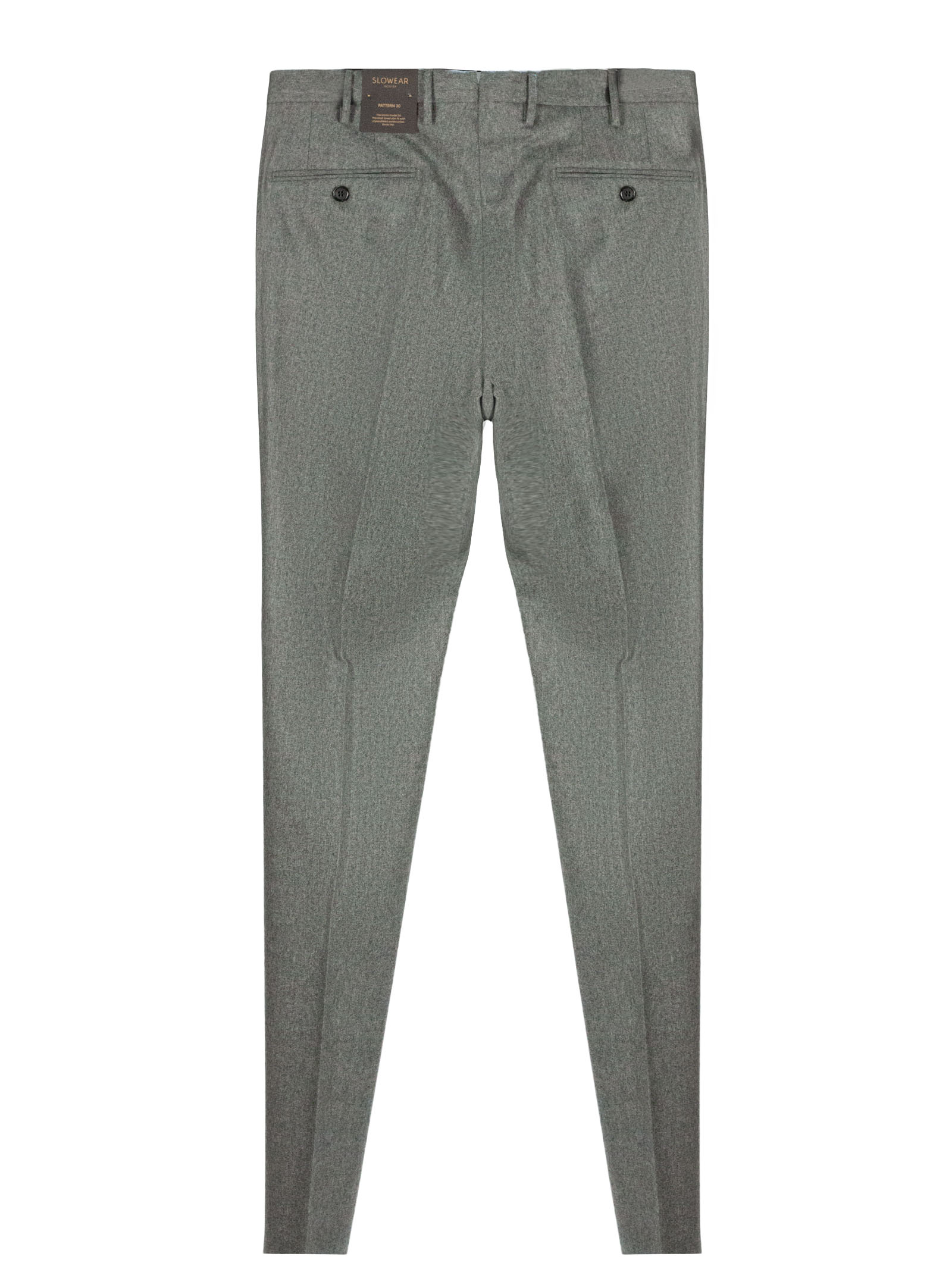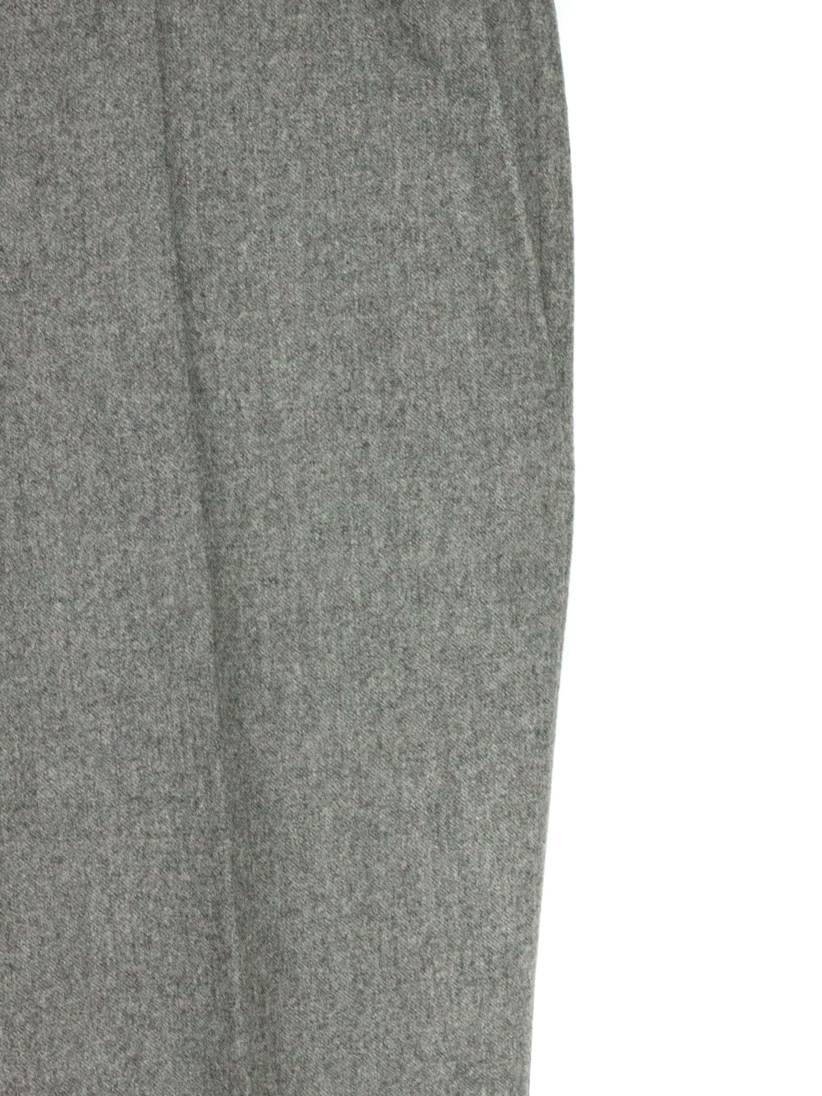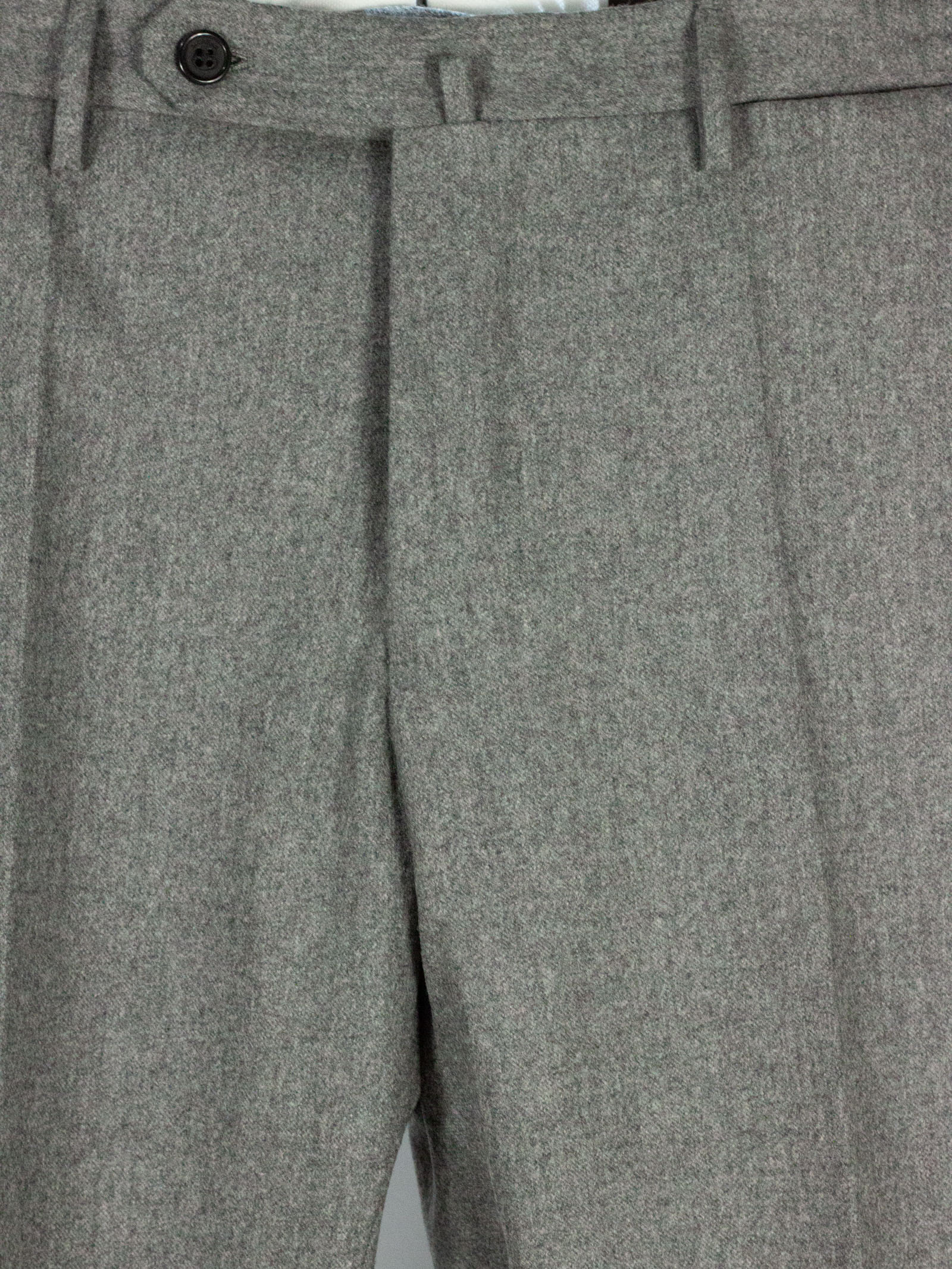 Grey wool blend trousers with pleats, front zip and button fastening, belt loops, side pockets, back pockets