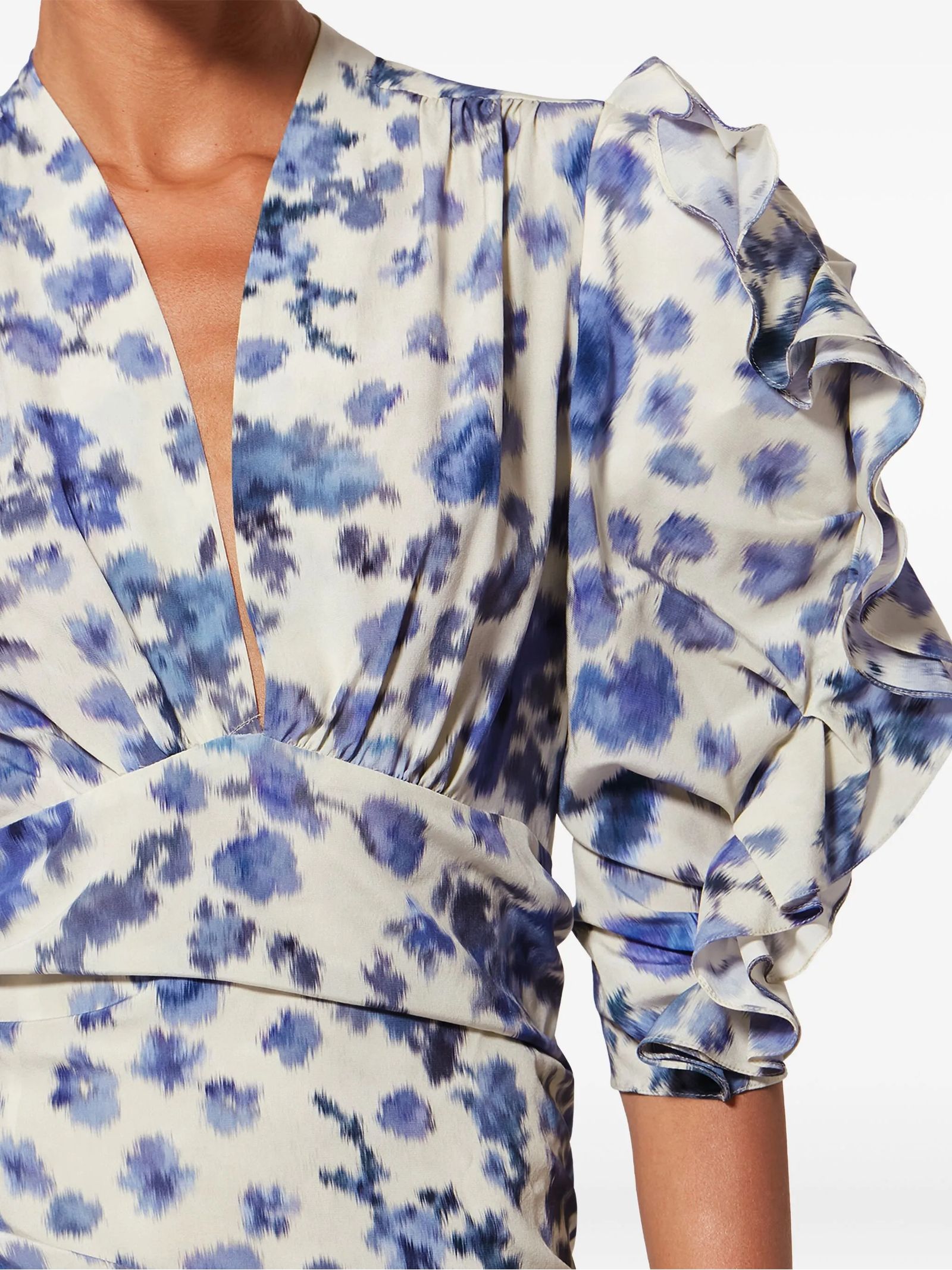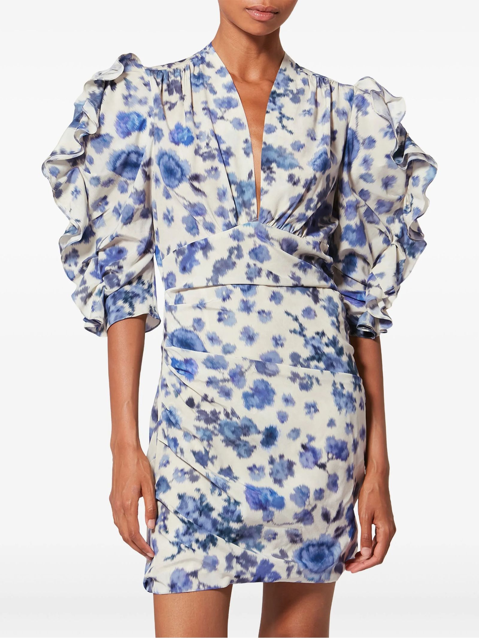 ISABEL MARANT x DORIS Ruffled dress, blue, floral print, gathered sleeves, gathered detail, silk