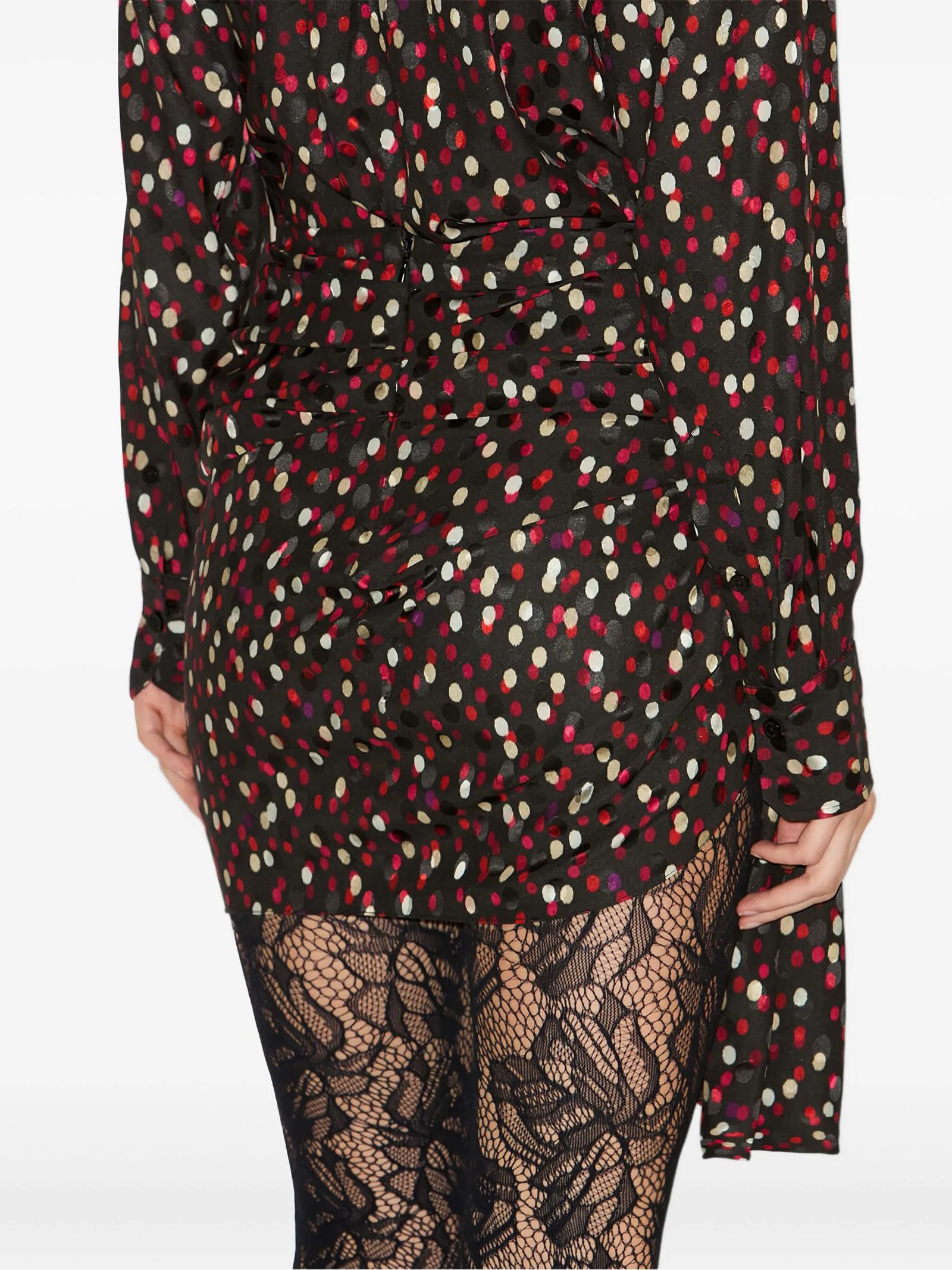 Ovia polka-dot mini skirt, black, silk blend, polka dot pattern, draped detailing, asymmetrical hem, gathered waist