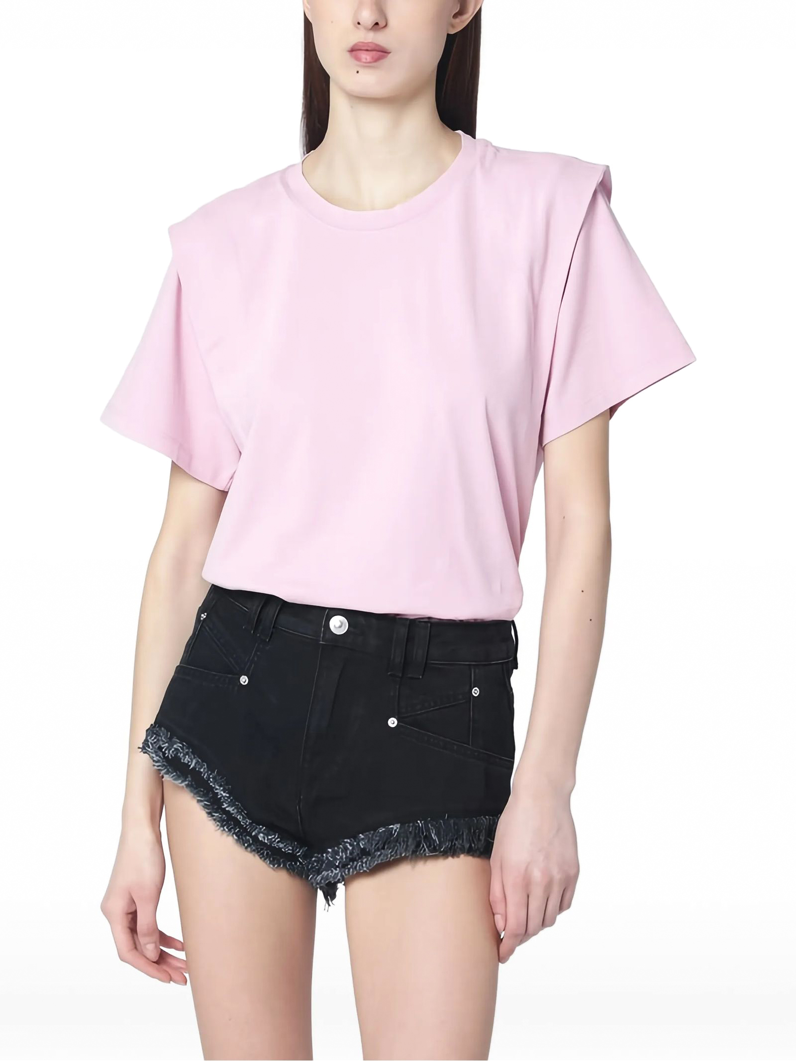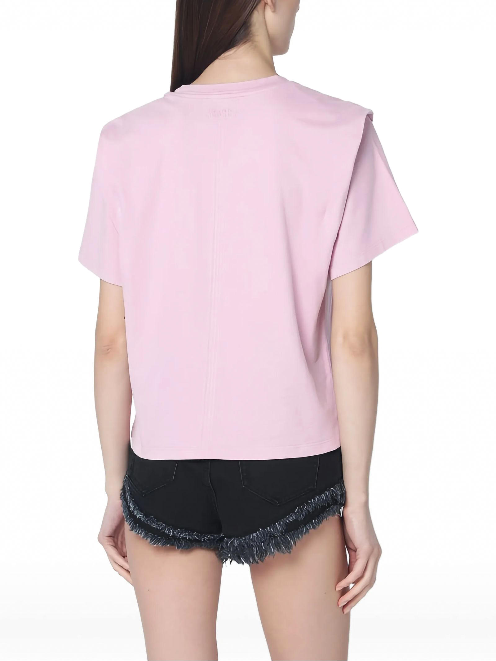 Zelitos shoulder-detail T-shirt, pale pink, shoulder pads, round neck, short sleeves