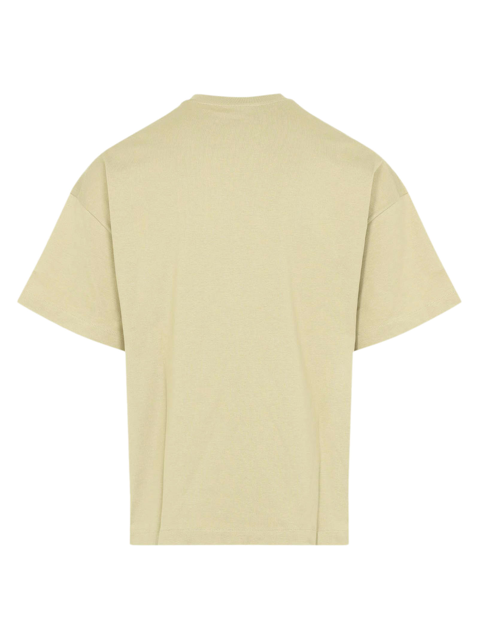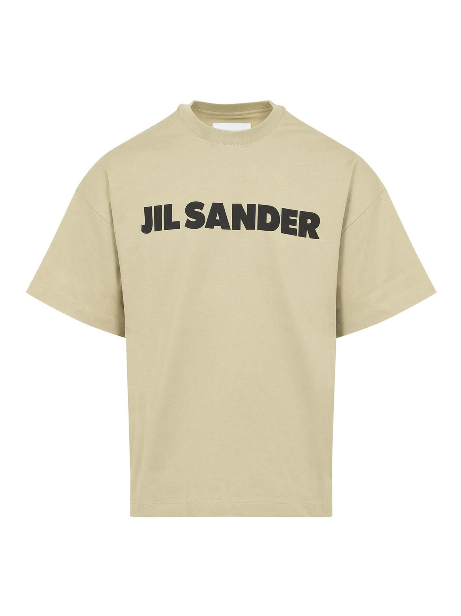 Beige cotton T-shirt featuring logo detail, short sleeves, round neck