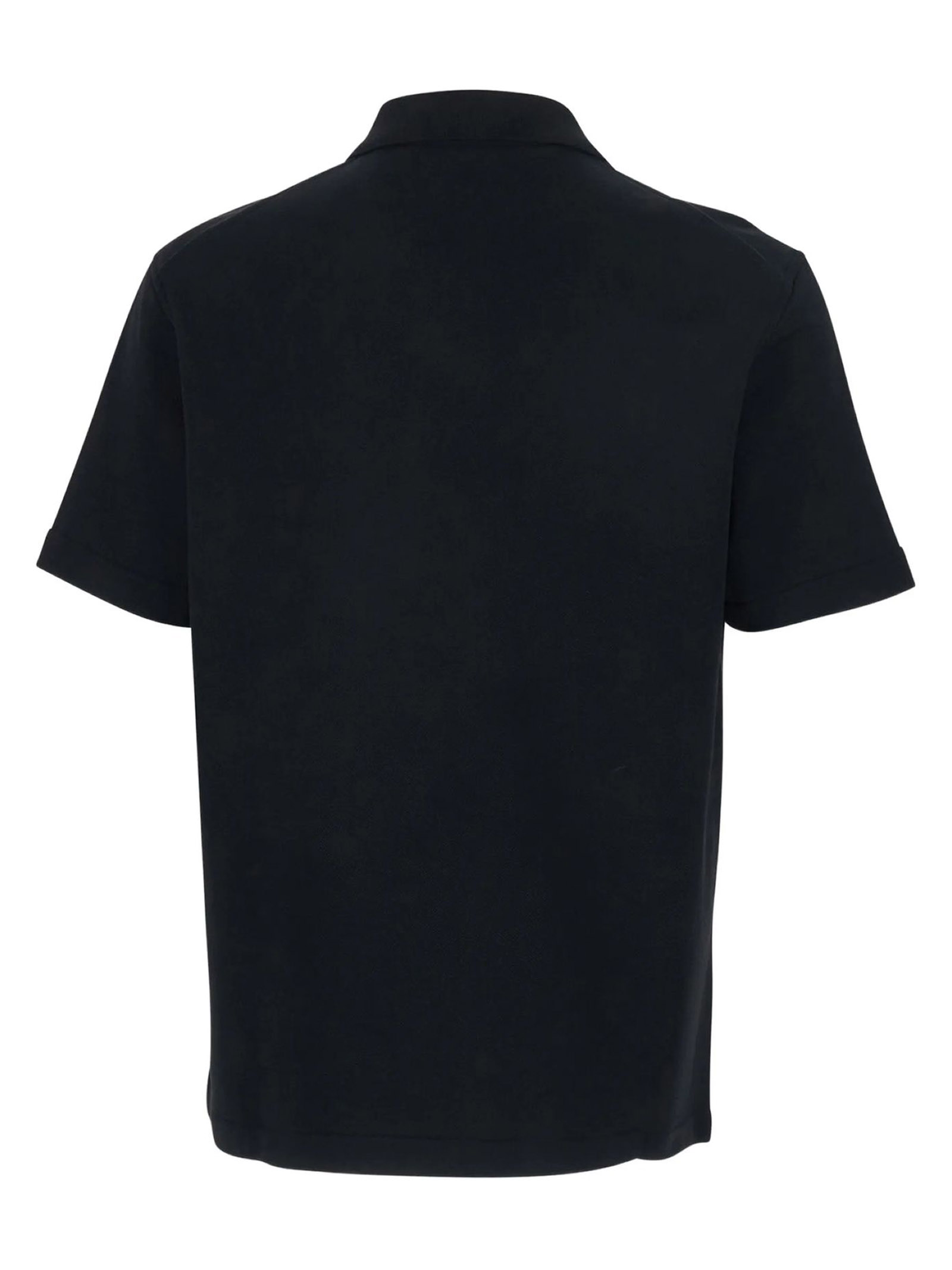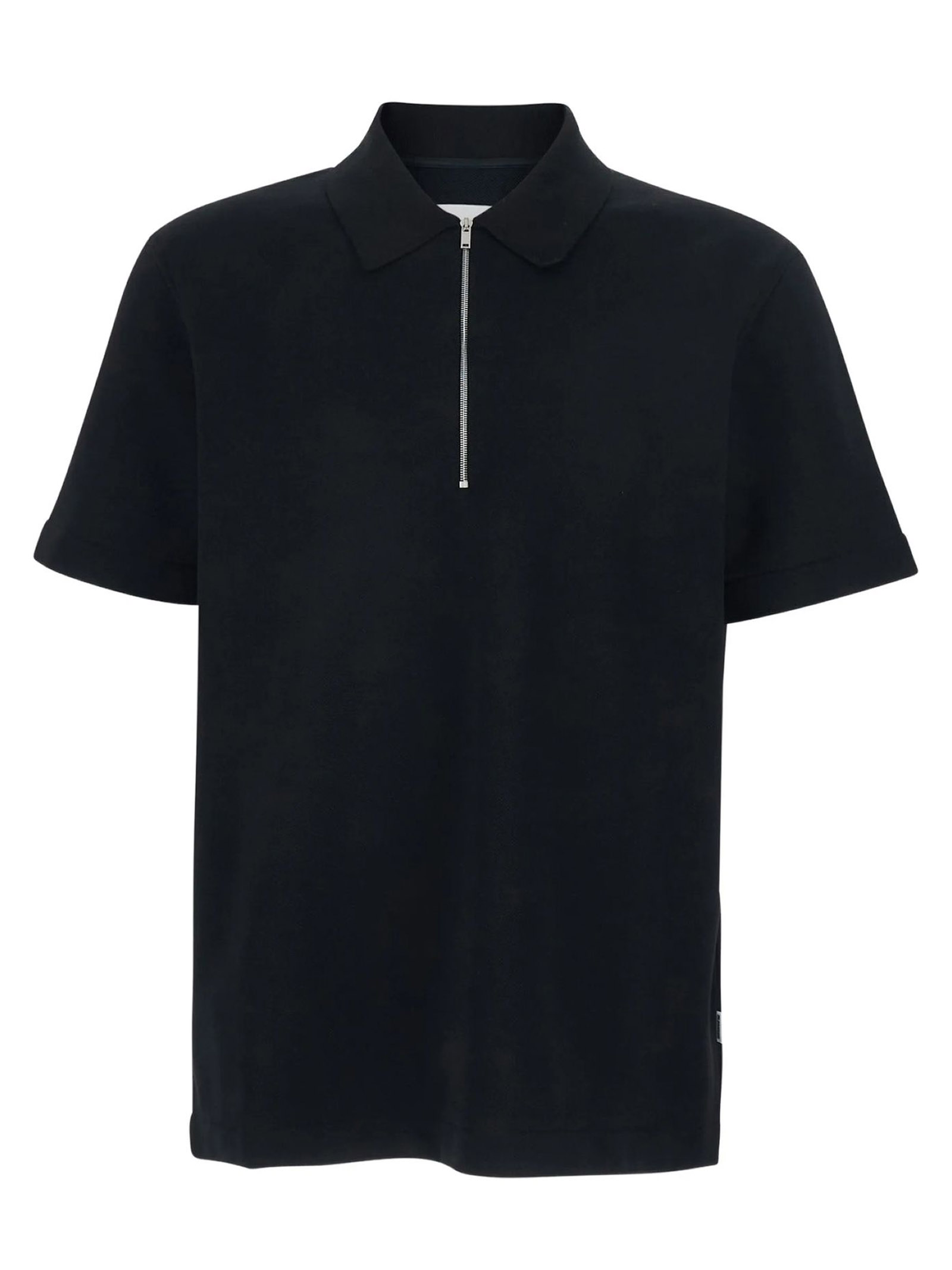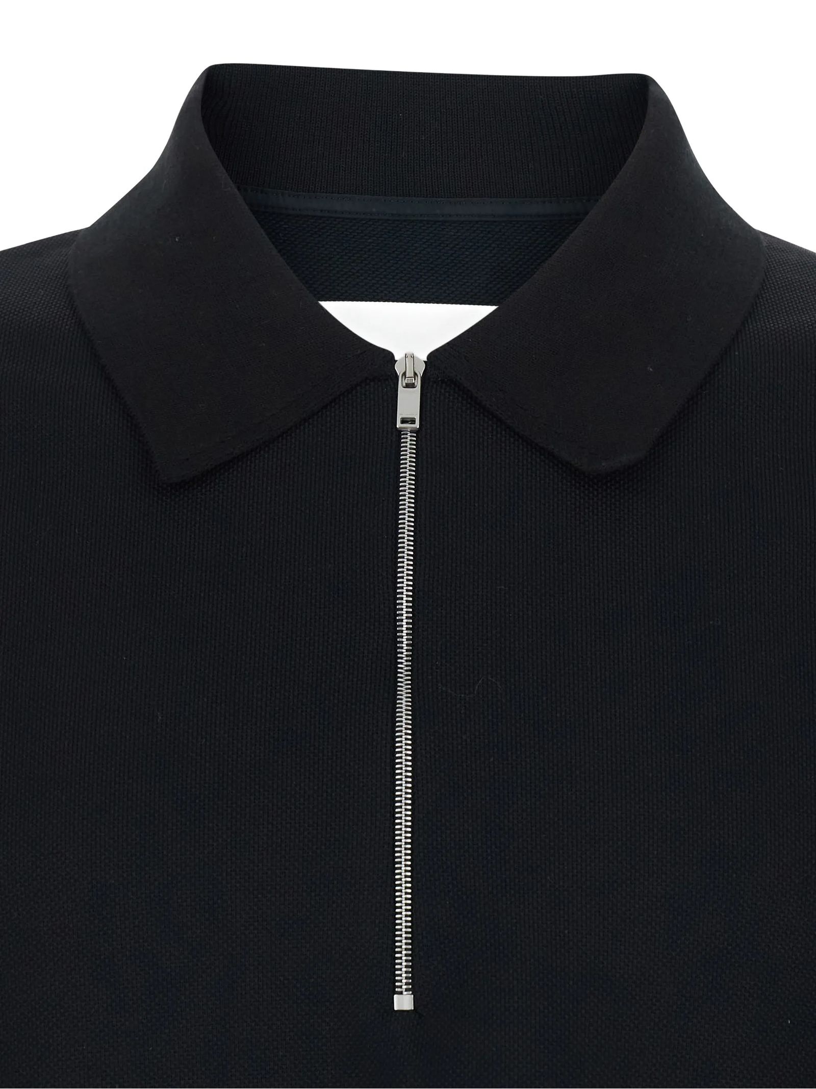 Black cotton piqué polo shirt, regular fit, knitted polo collar with zip closure, Jil Sander logo label on the side seam, cotton lining, cotton piqué fabric