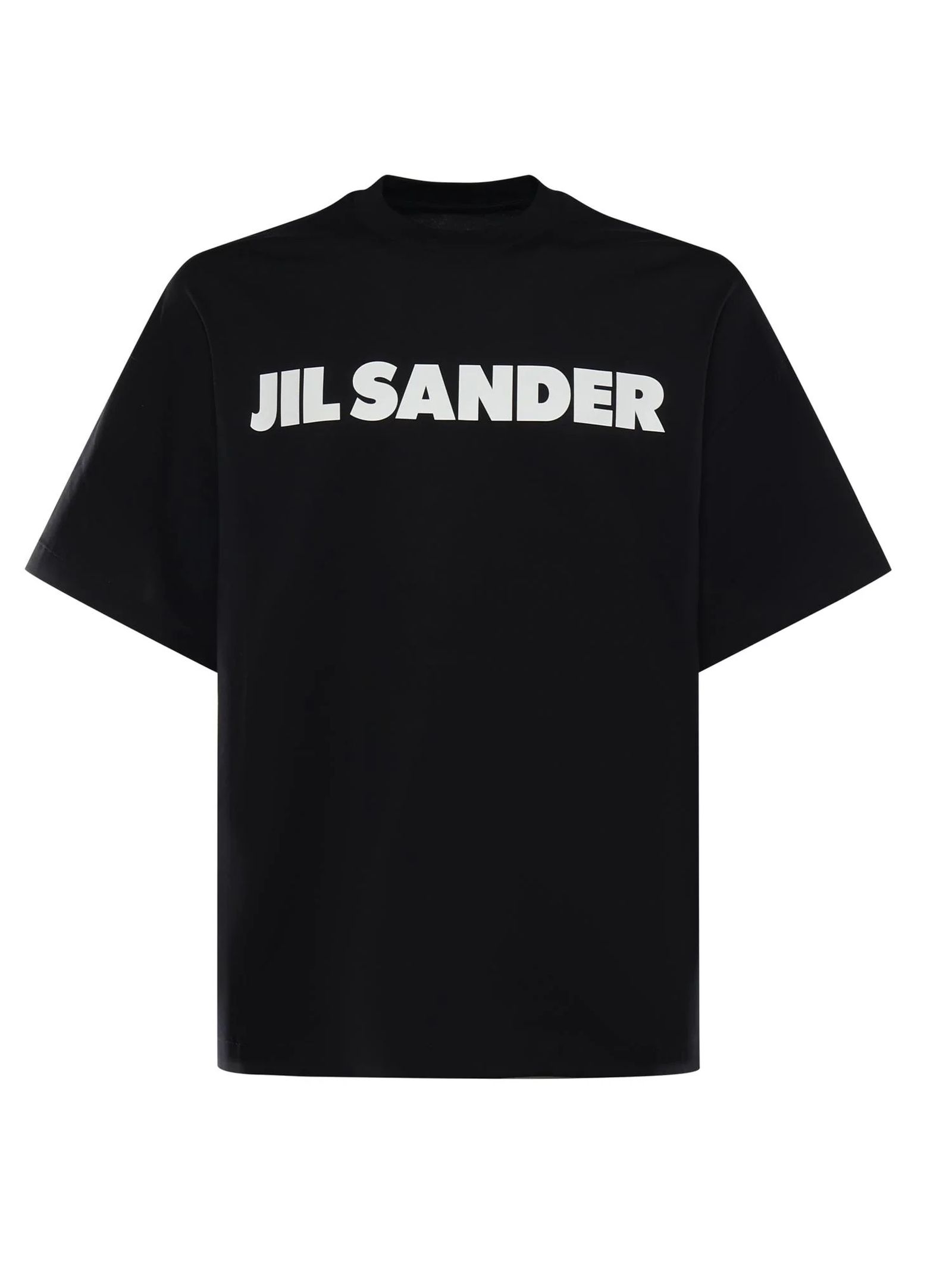 Black cotton T-shirt featuring logo detail, short sleeves, round neck