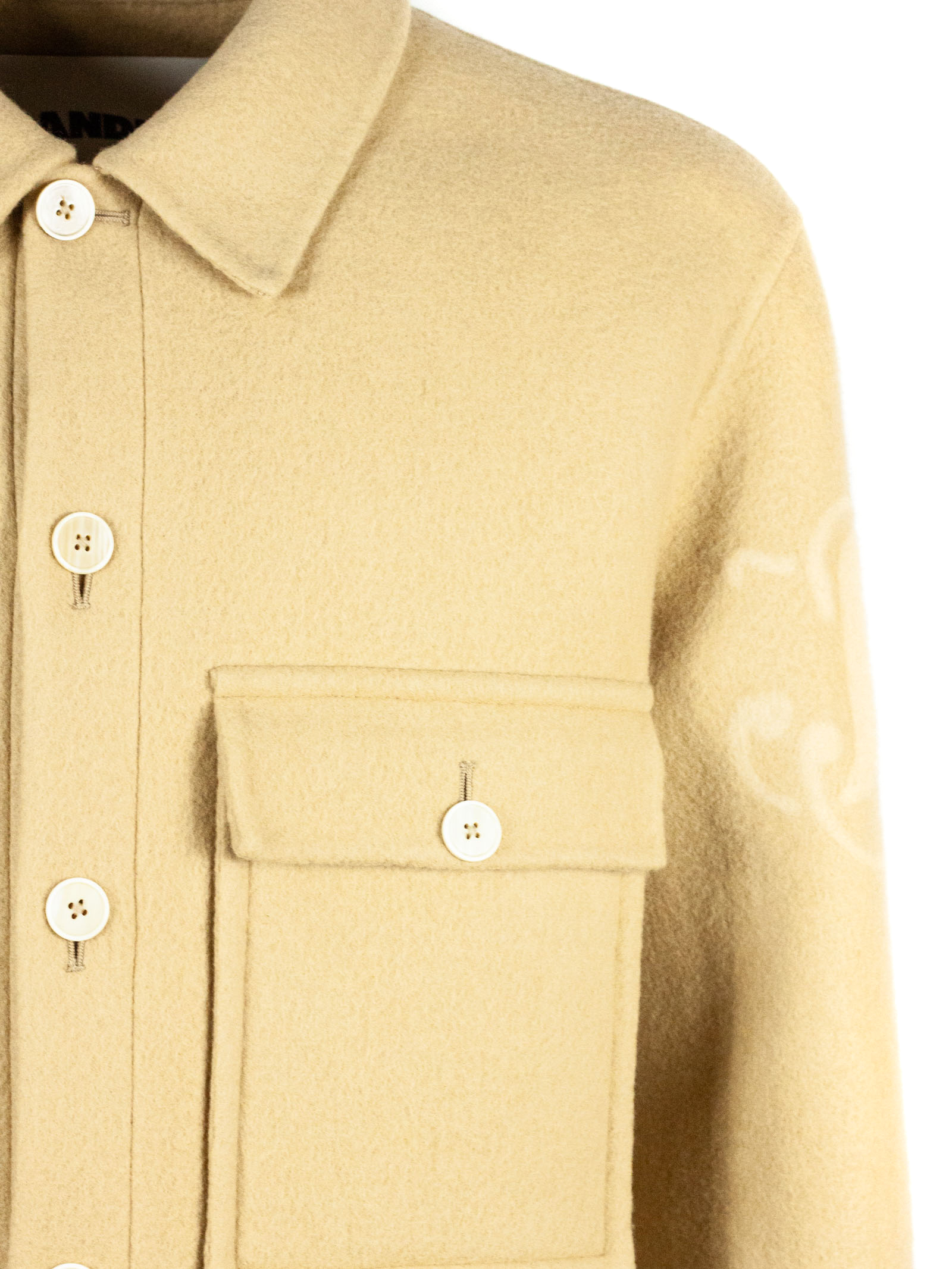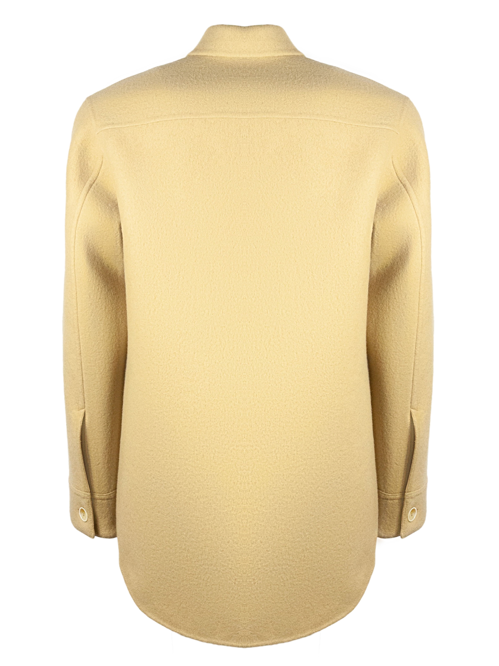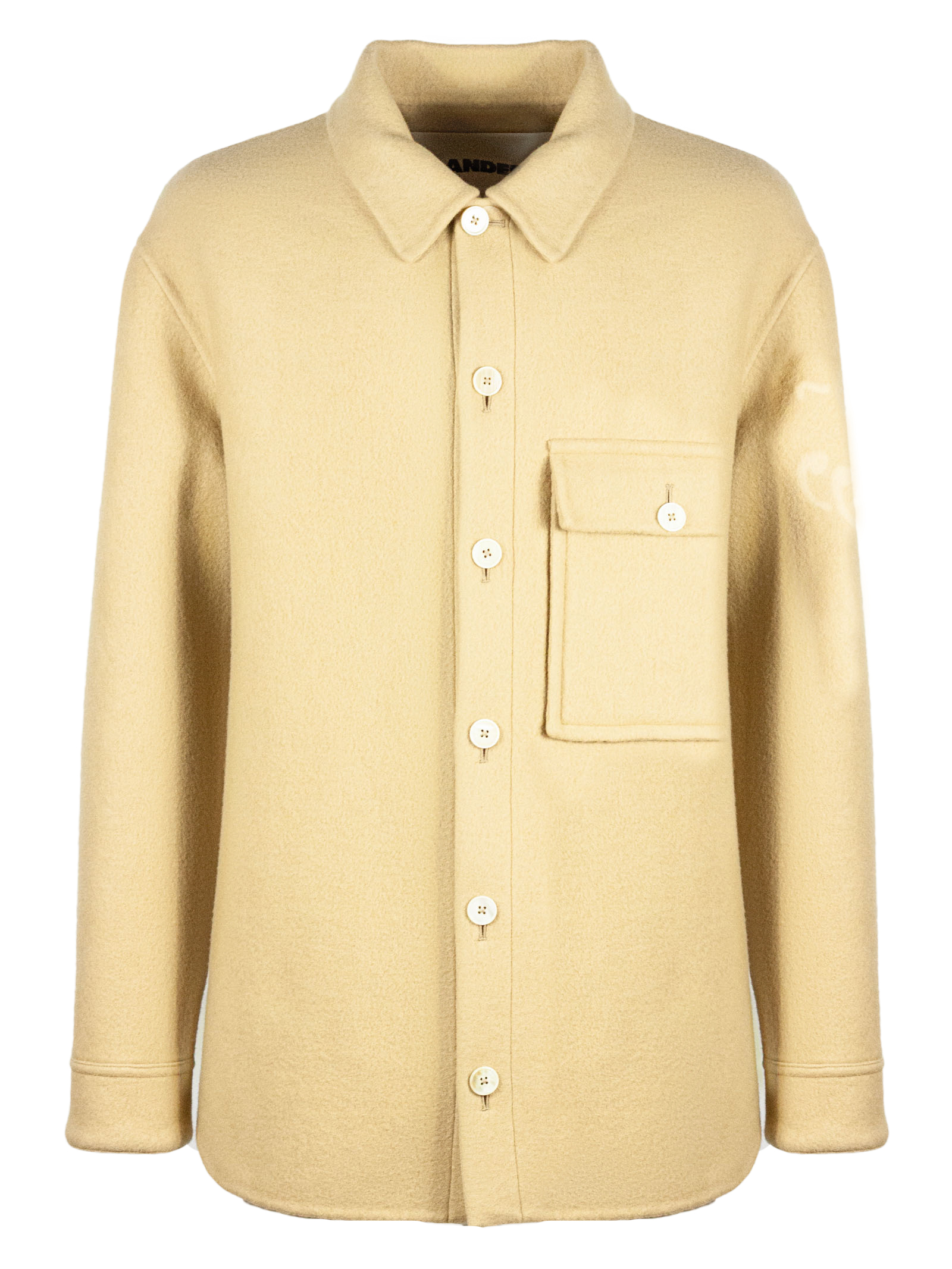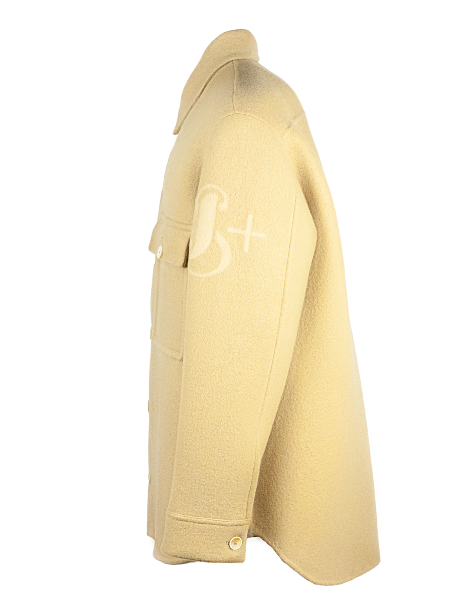 Camel brown virgin wool coat with viscose lining, classic collar, logo detail on the sleeve, chest pocket with flap and button, front button closure