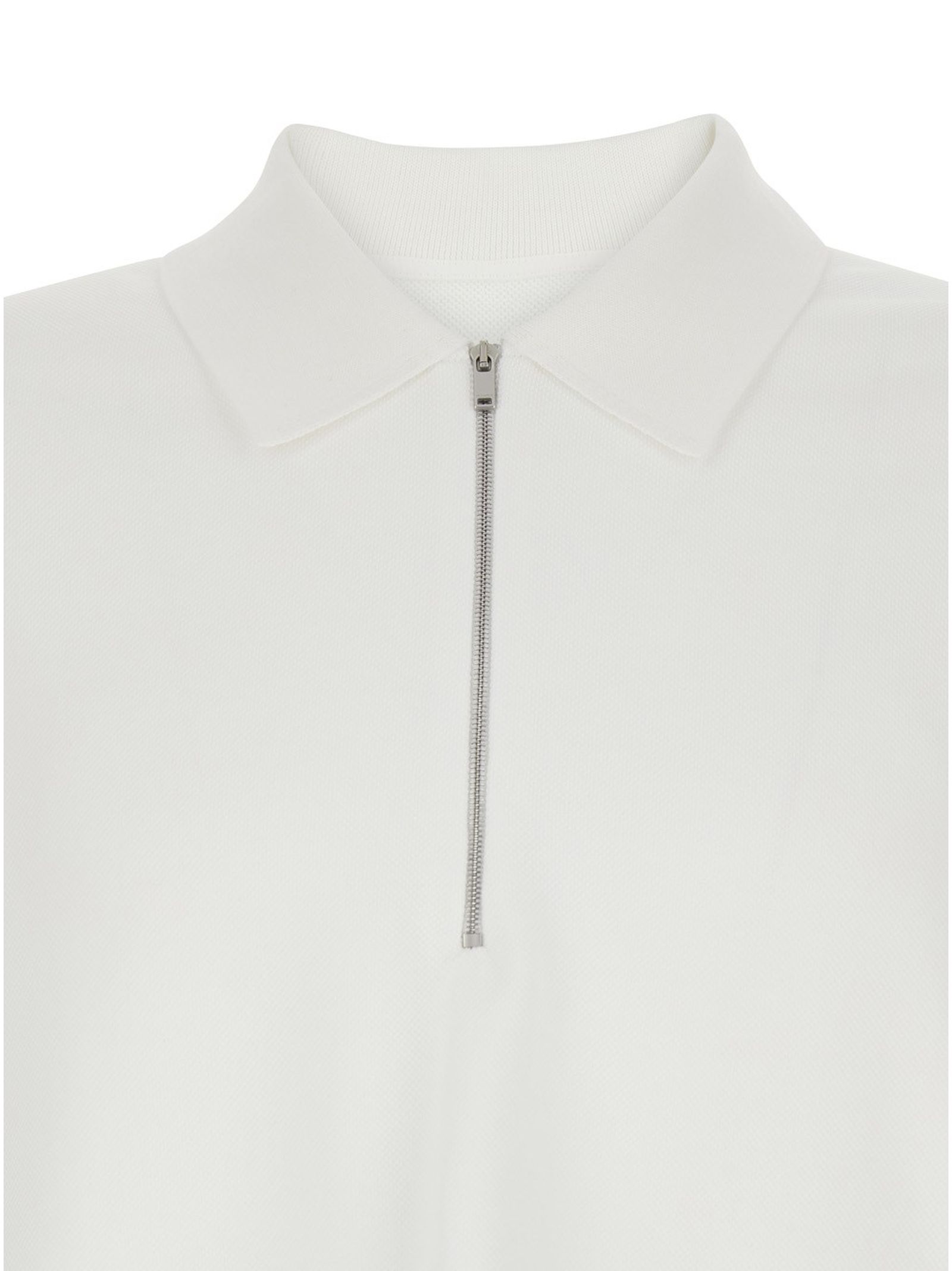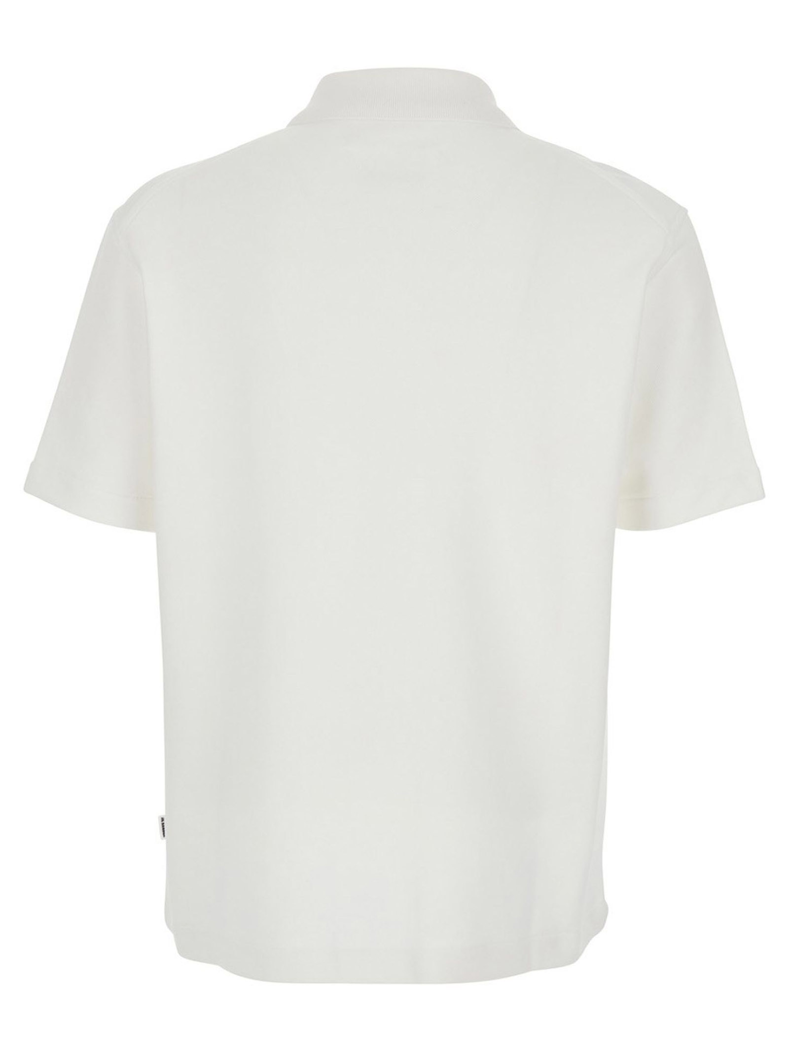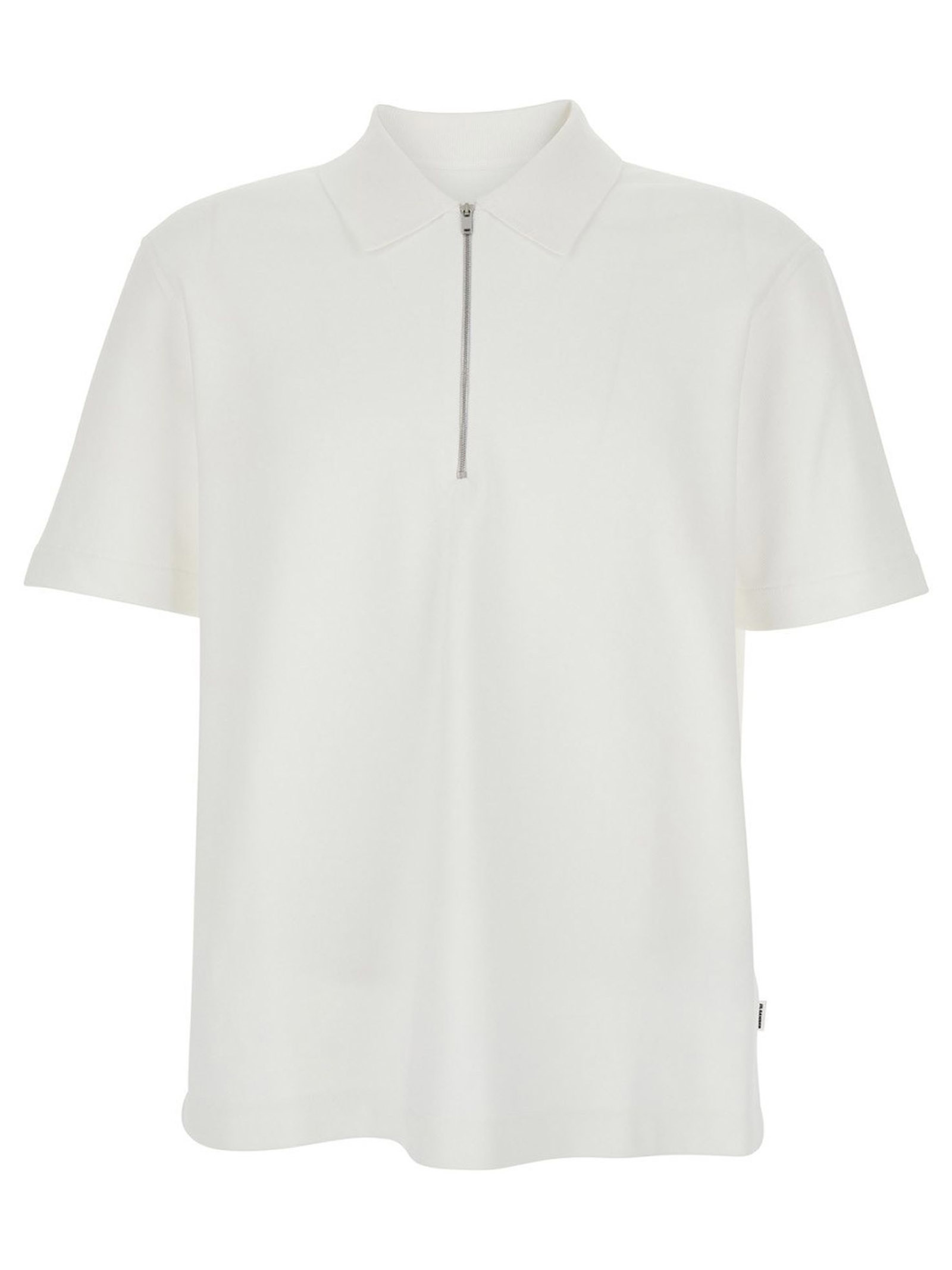 White cotton piqué polo shirt, regular fit, knitted polo collar with zip closure, Jil Sander logo label on the side seam, cotton lining, cotton piqué fabric
