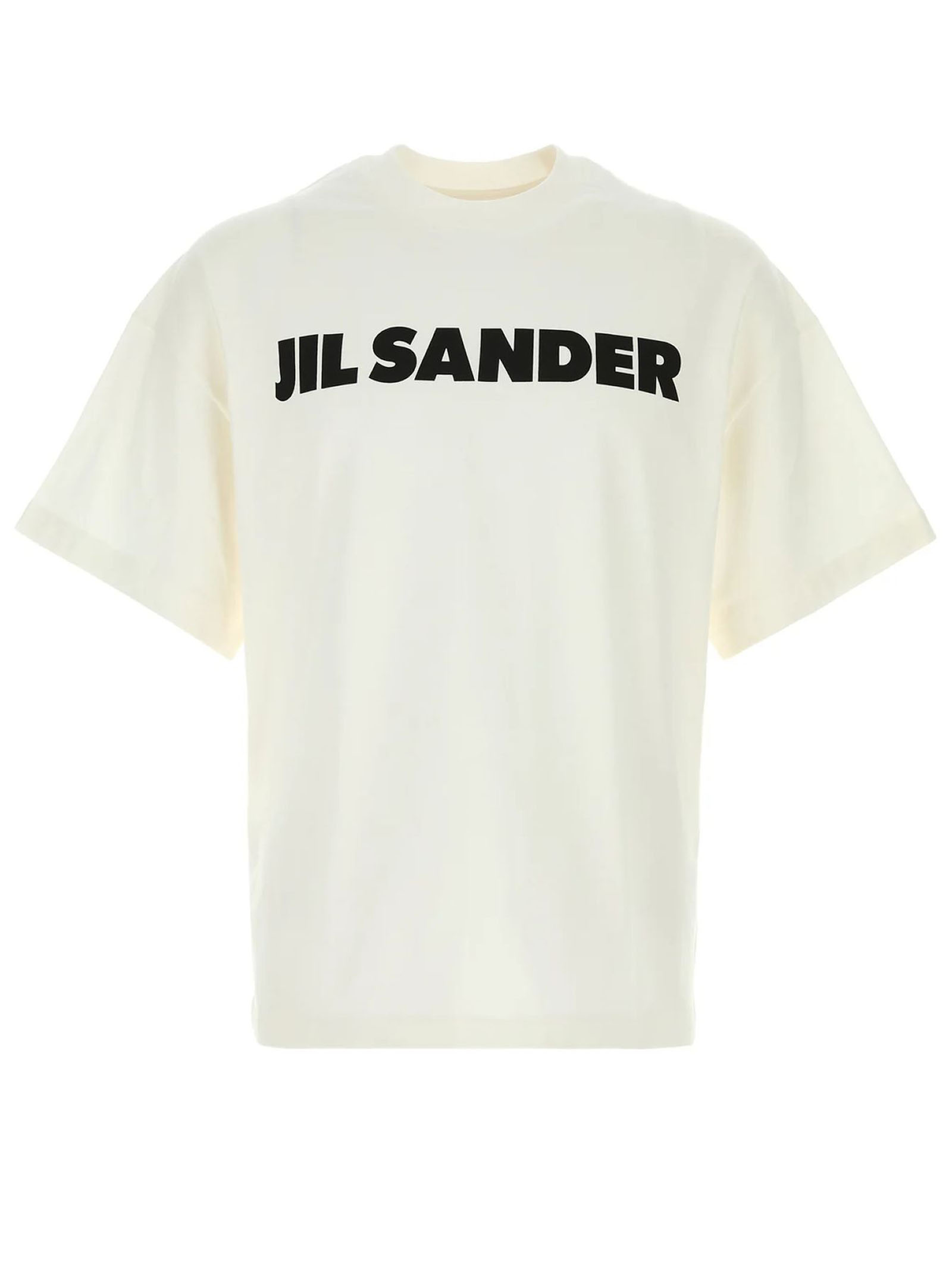White cotton T-shirt featuring logo detail, short sleeves, round neck