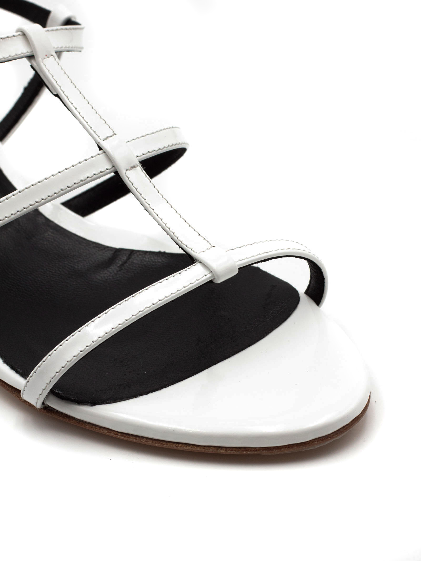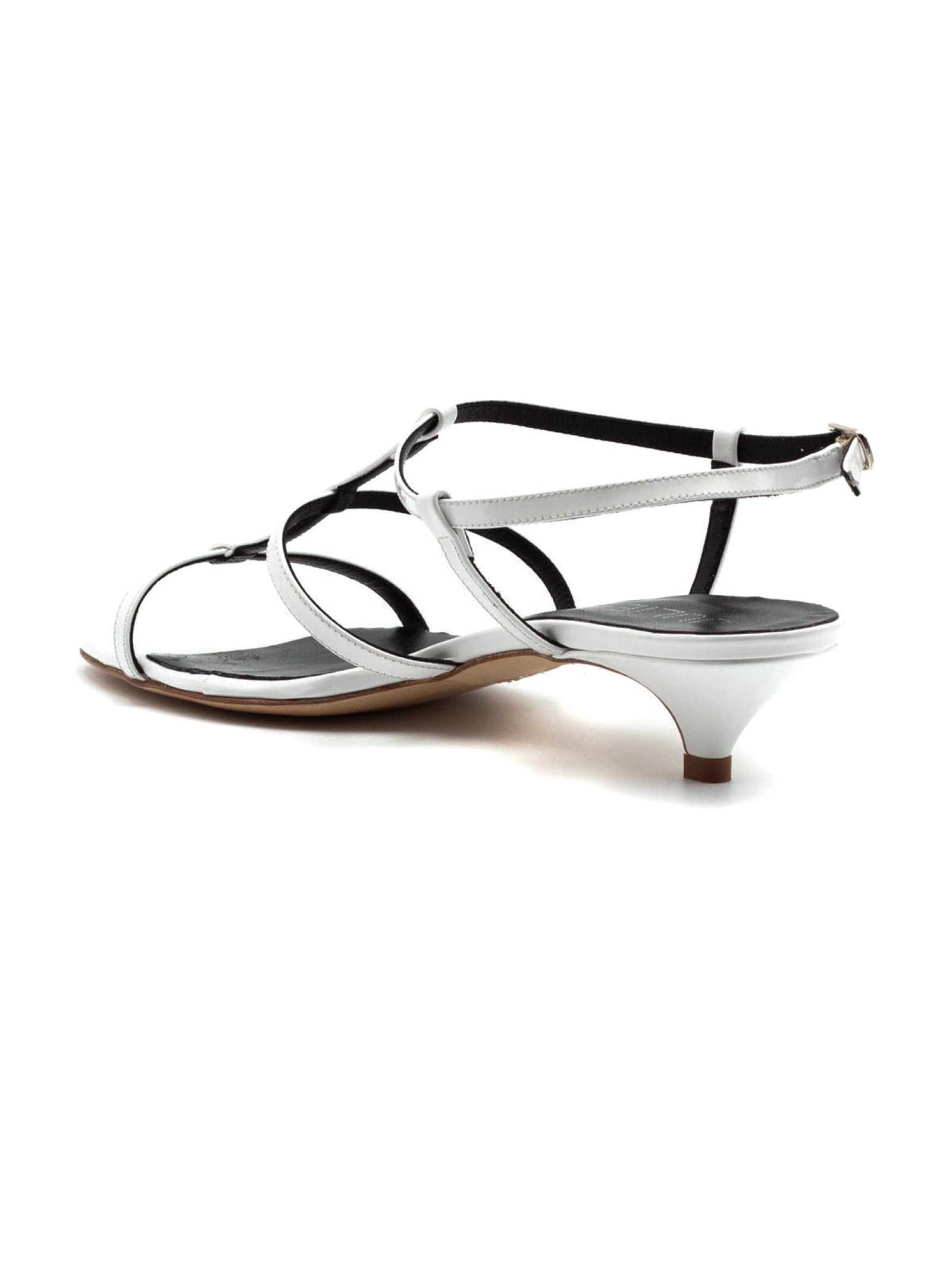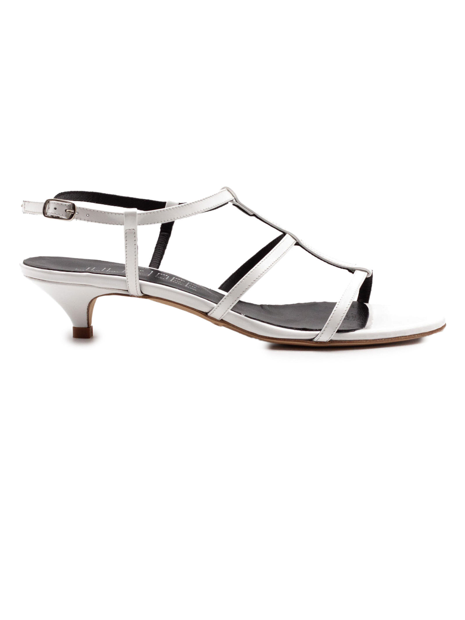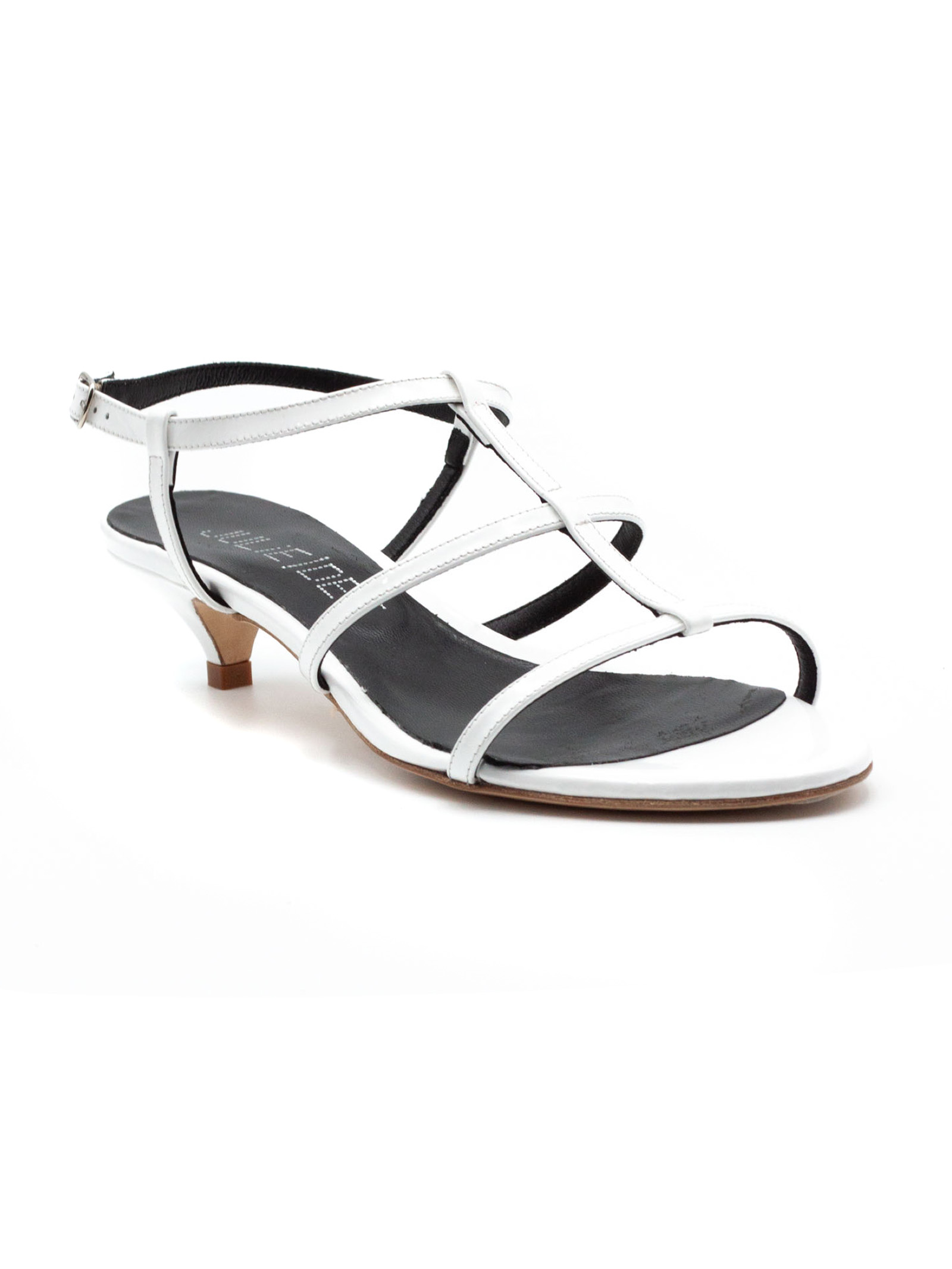 White Leather Sandals with strap, minimalist design with thin straps, low contoured heel, heel height 3.5 cm