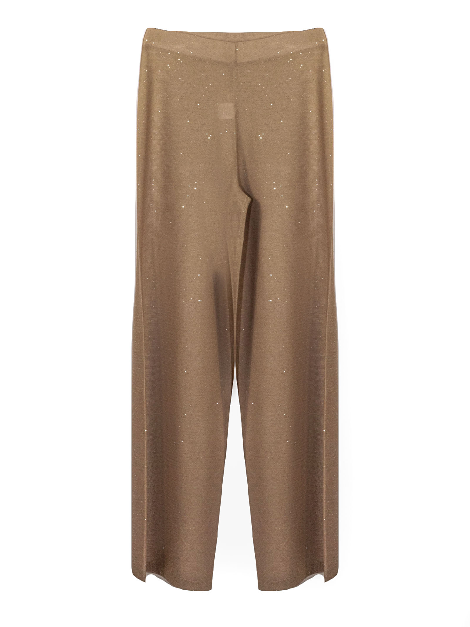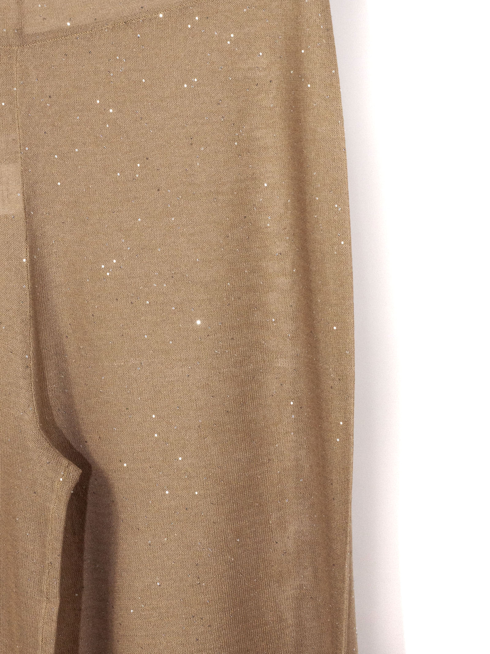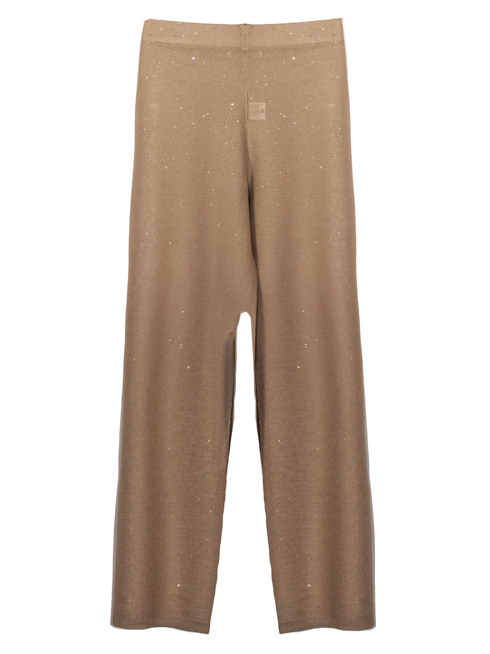 Beige viscose palazzo trousers with micro-sequins, crafted from 14-gauge reverse-brushed fabric, wide-leg style, elasticated waist