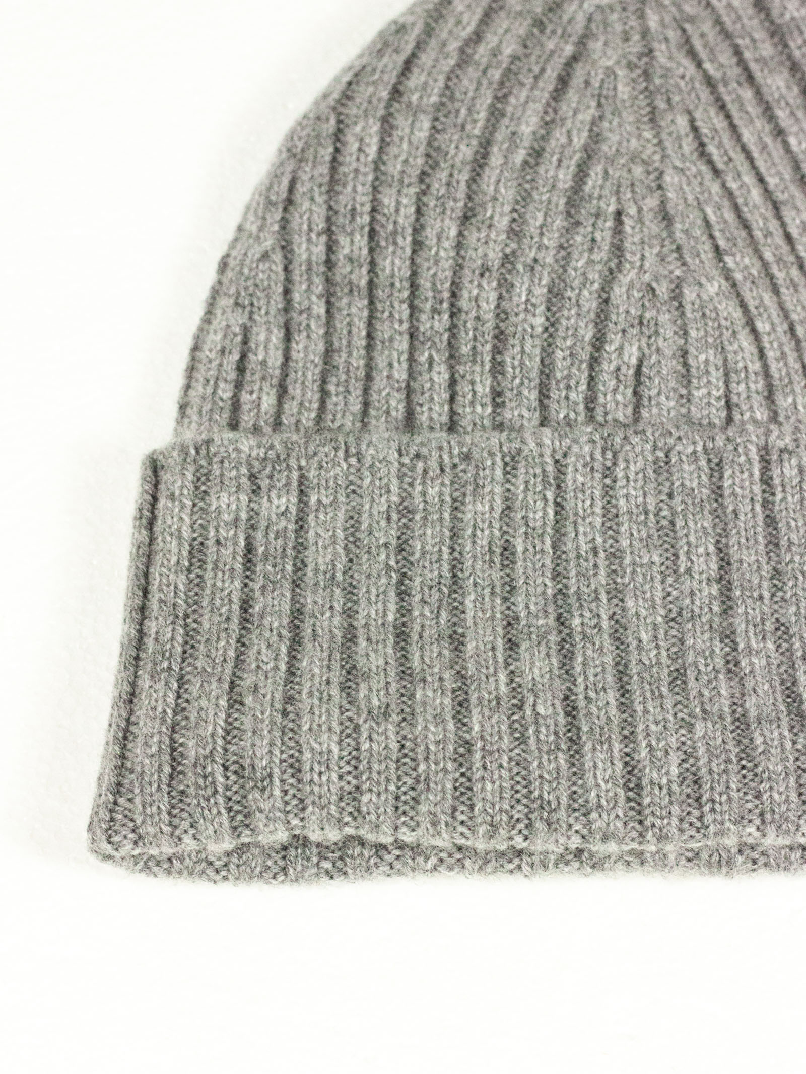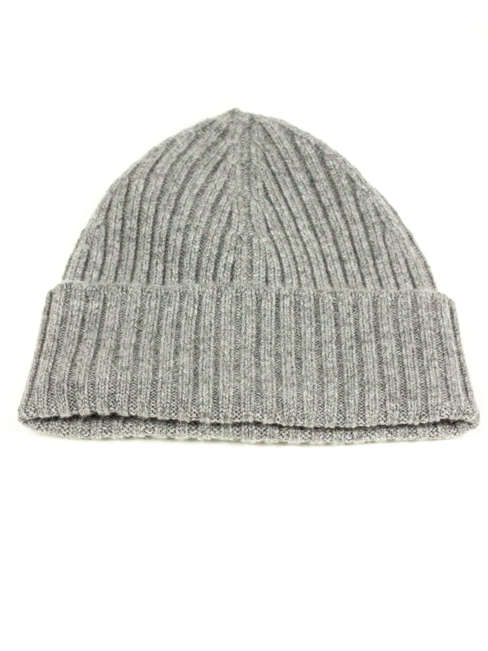 Grey pure cashmere hat with ribbed design and turn-up