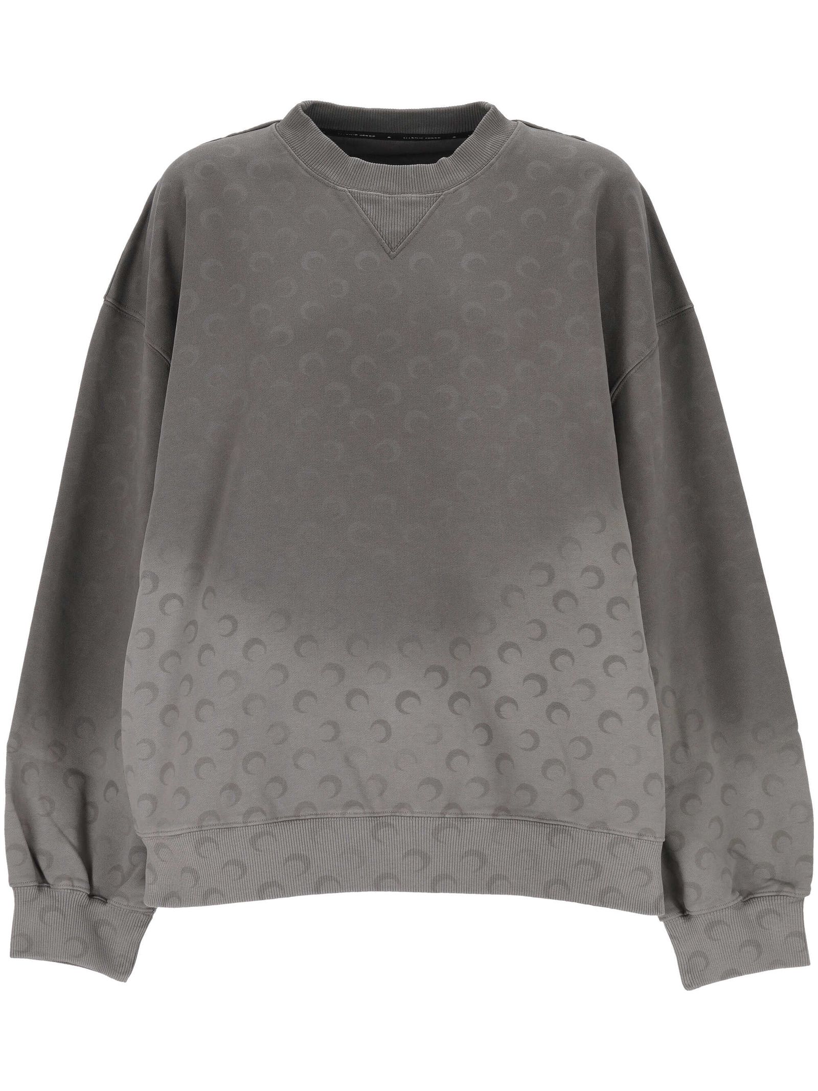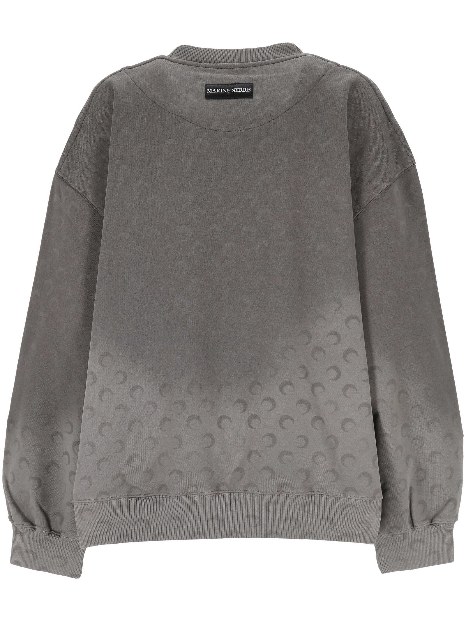 Grey cotton crew-neck sweatshirt, moon pattern, ombré effect, long sleeves
