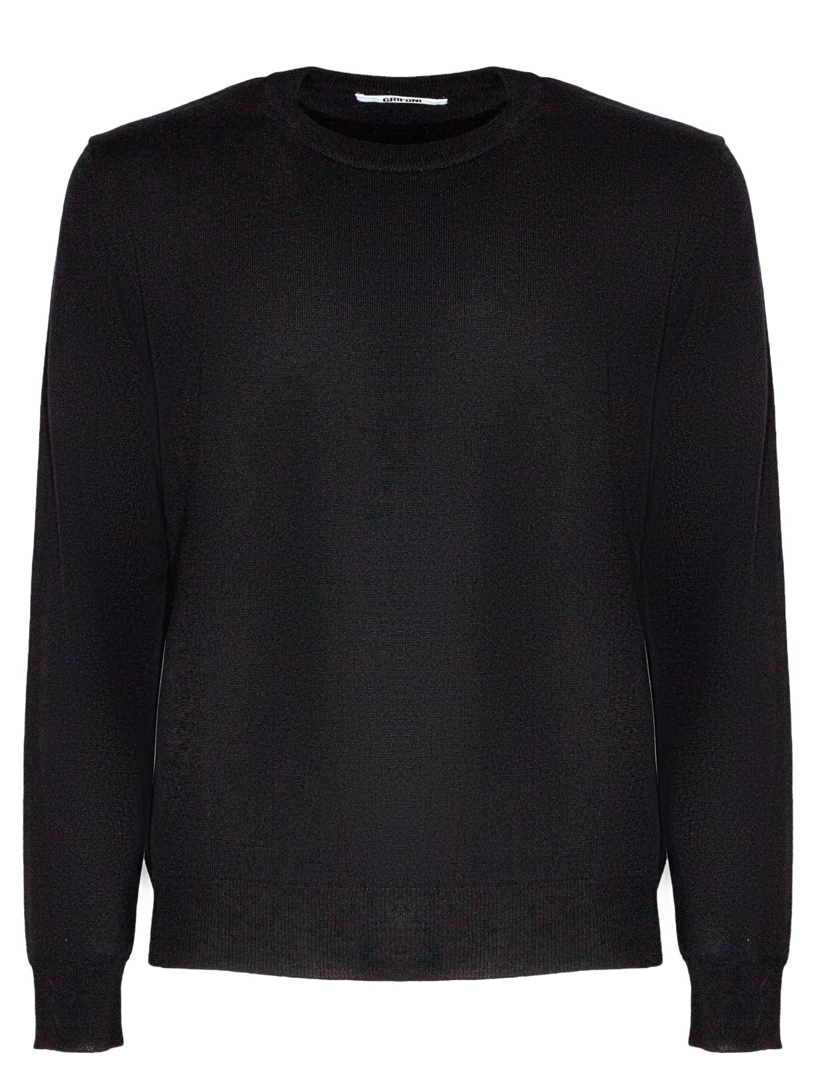 Black virgin wool jumper with round neck, long sleeves and ribbed trim. Virgin wool 100%