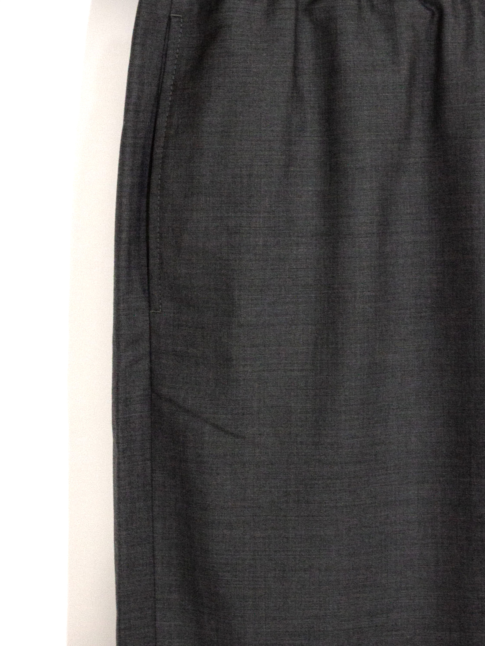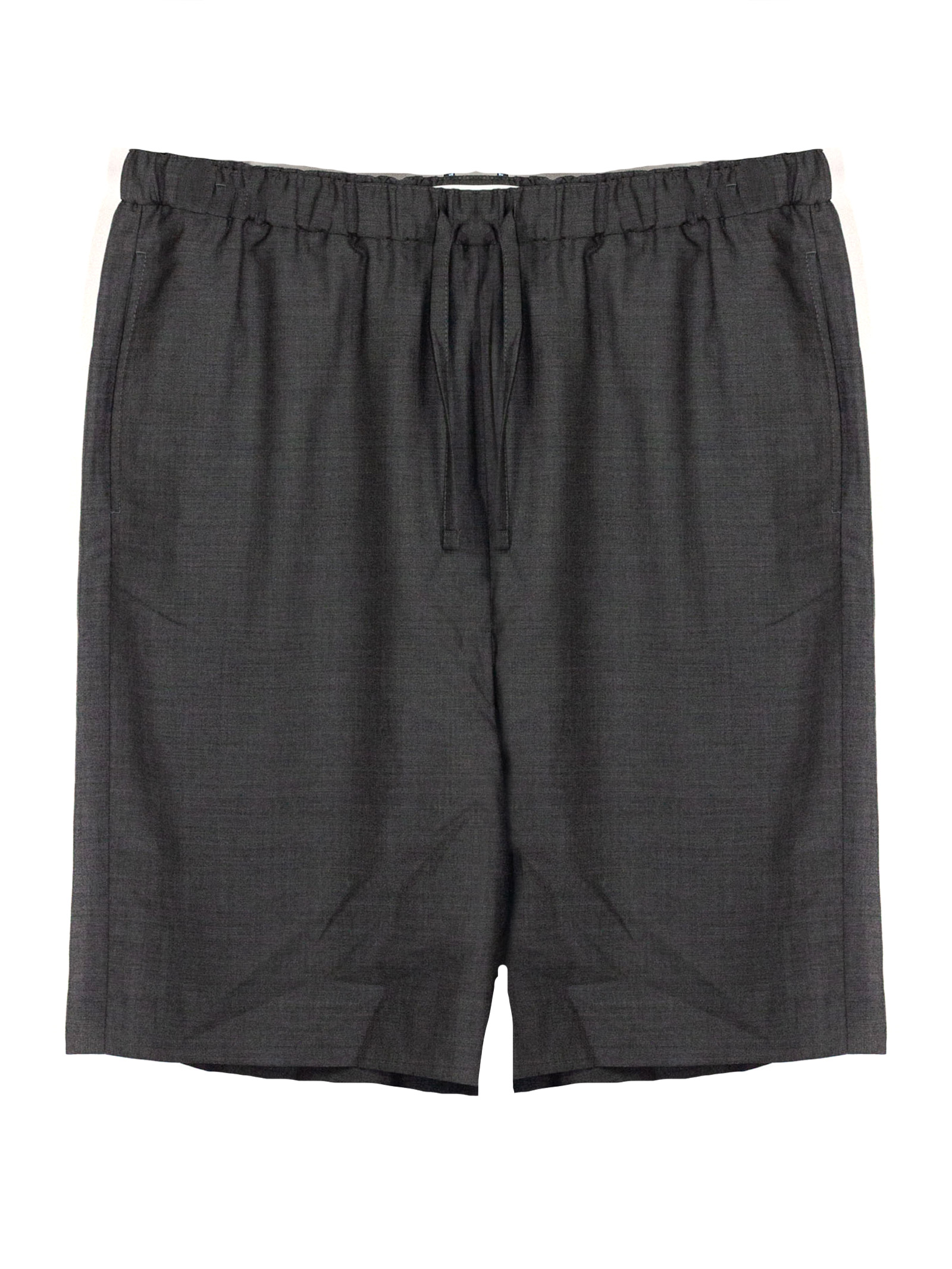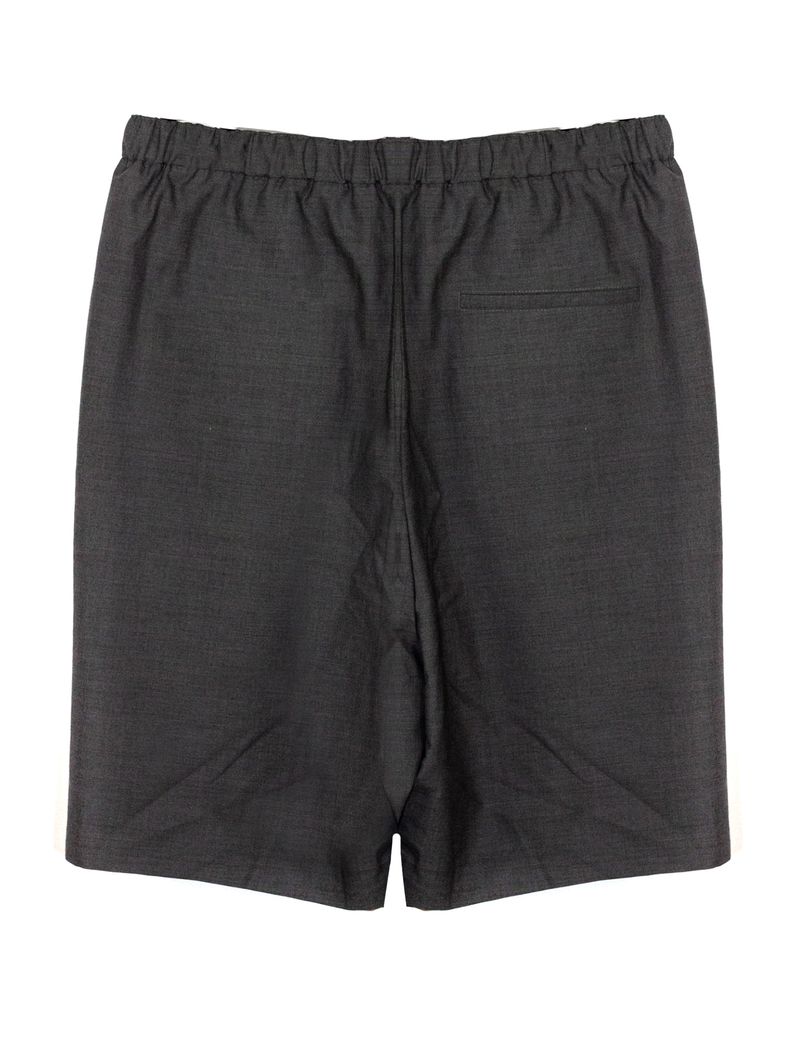 Grey virgin wool Bermuda shorts with an elasticated waist, drawstring, side pockets, a back pocket and a cotton lining