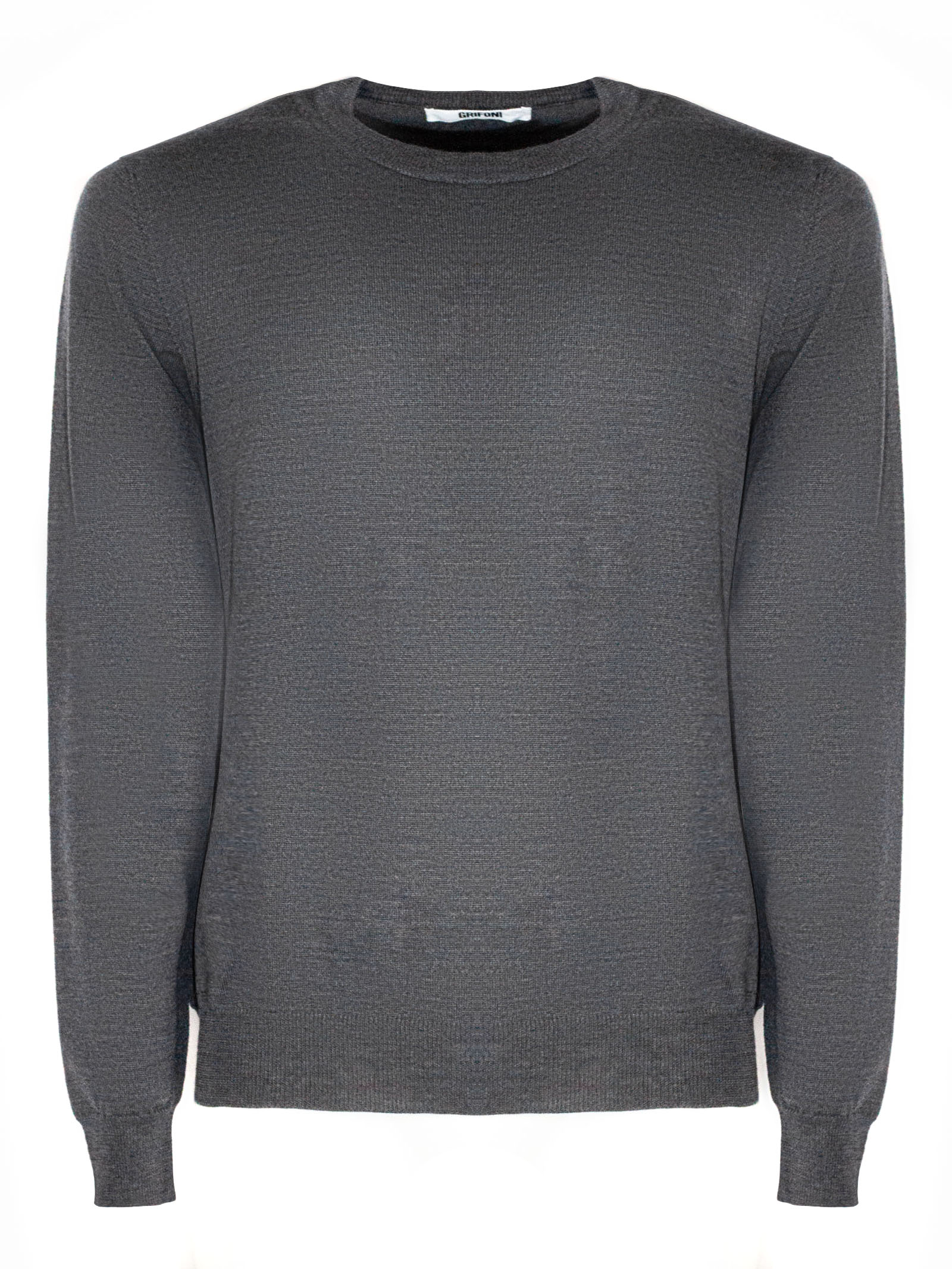 Grey virgin wool jumper with round neck, long sleeves and ribbed trim. Virgin wool 100%