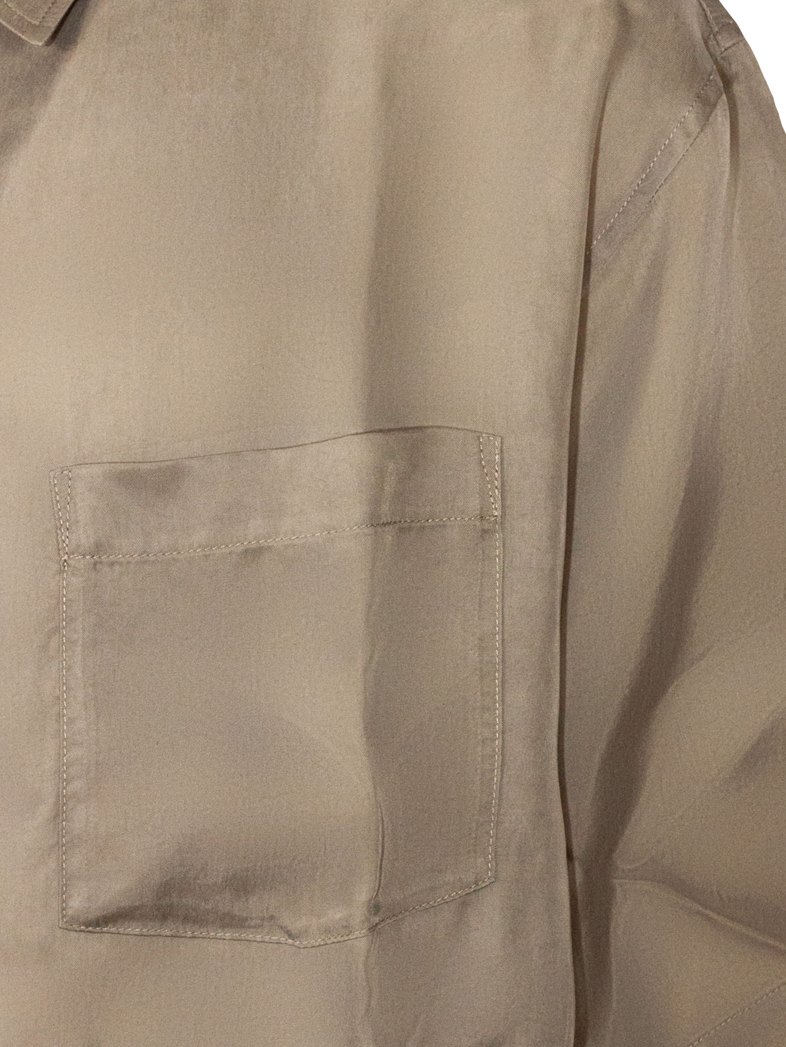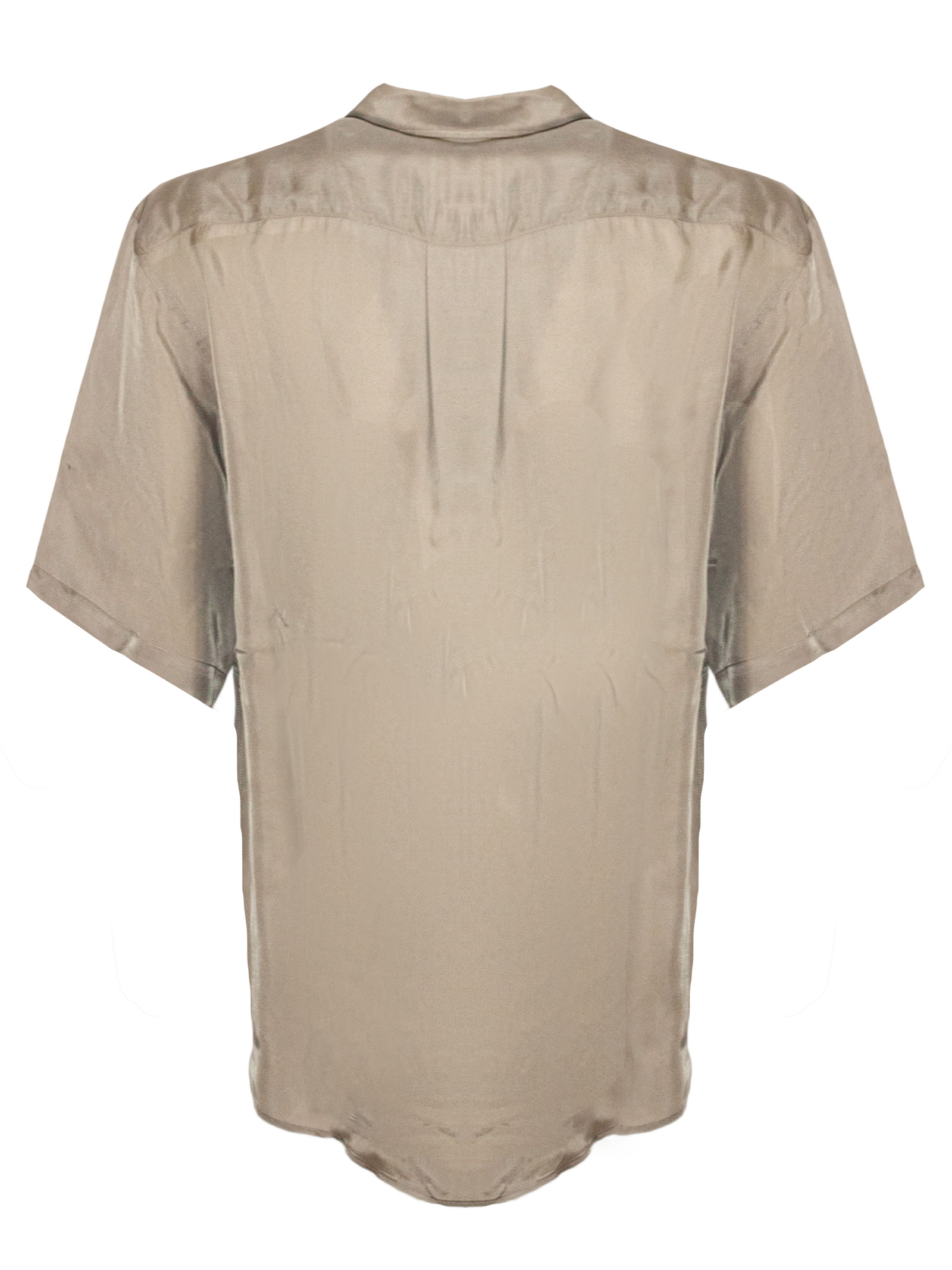 Short-sleeved shirt in cupro, in a satin-finish beige, with a classic collar, button fastening and a breast pocket