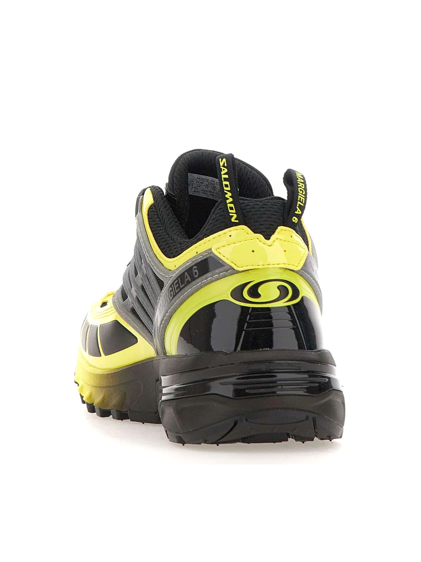 MM6 Maison Margiela x Salomon ACS PRO Outdoor Limited Edition trainers in technical mesh and yellow and black synthetic material, ultra-thin lace-up fastening, translucent TPU heel, pull tab at the back, iconic logos on the upper and rubber sole.