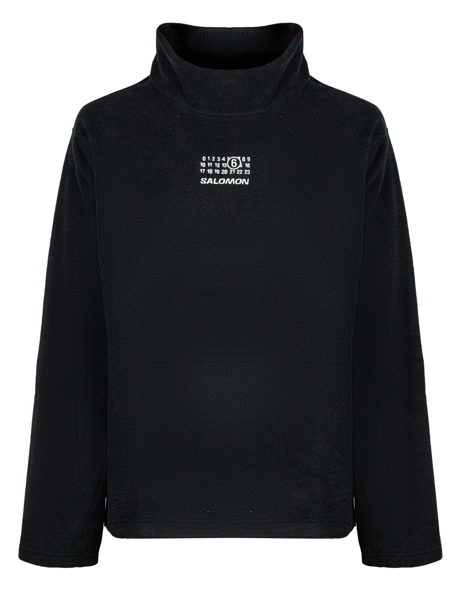 MM6 Maison Margiela x Salomon dark blue fleece sweatshirt with funnel neck, long sleeves, logo detail, iconic brand stitching detail on the back