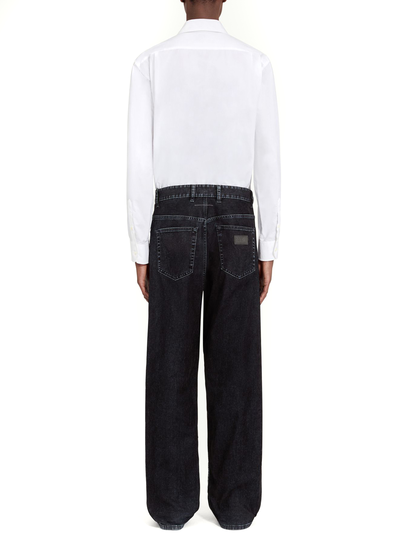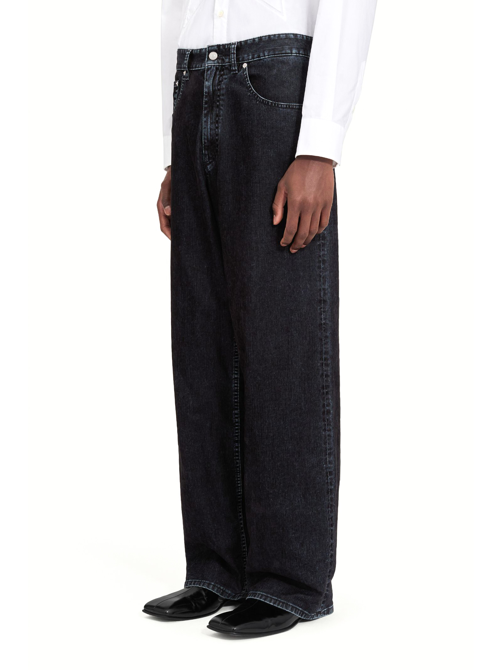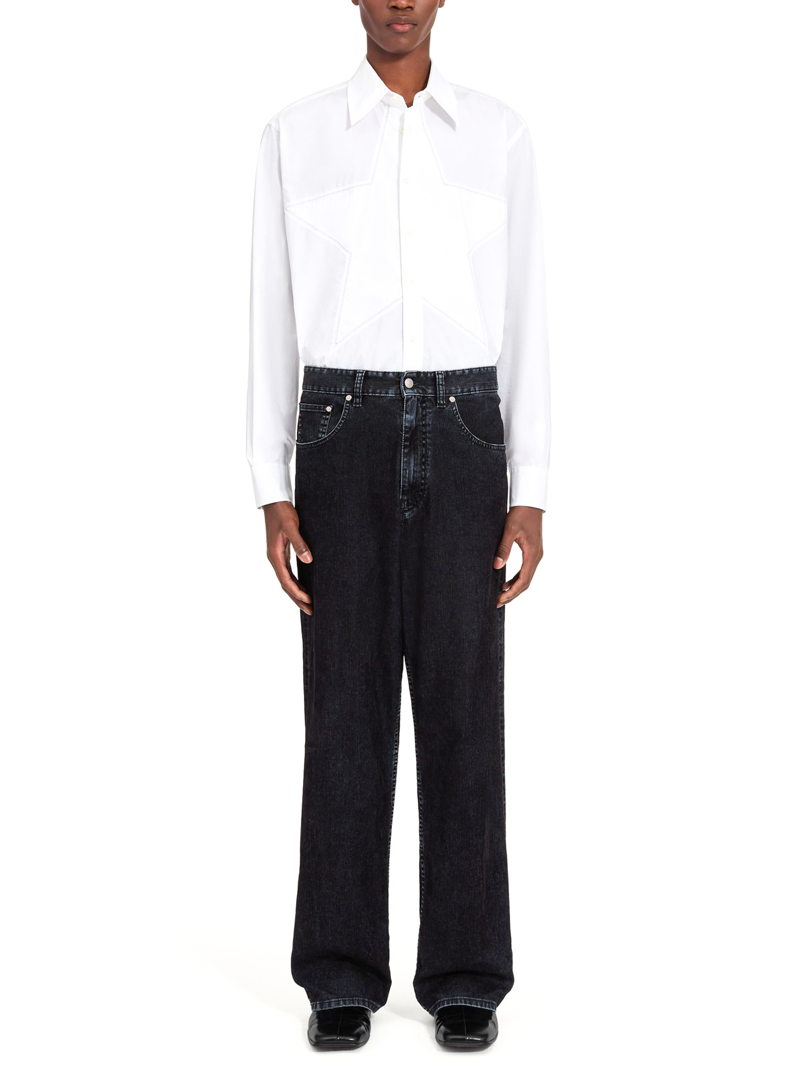 Wide-leg jeans in washed denim, Five-pocket construction, Belt loops, Back leather logo patch, White stitch line at the back