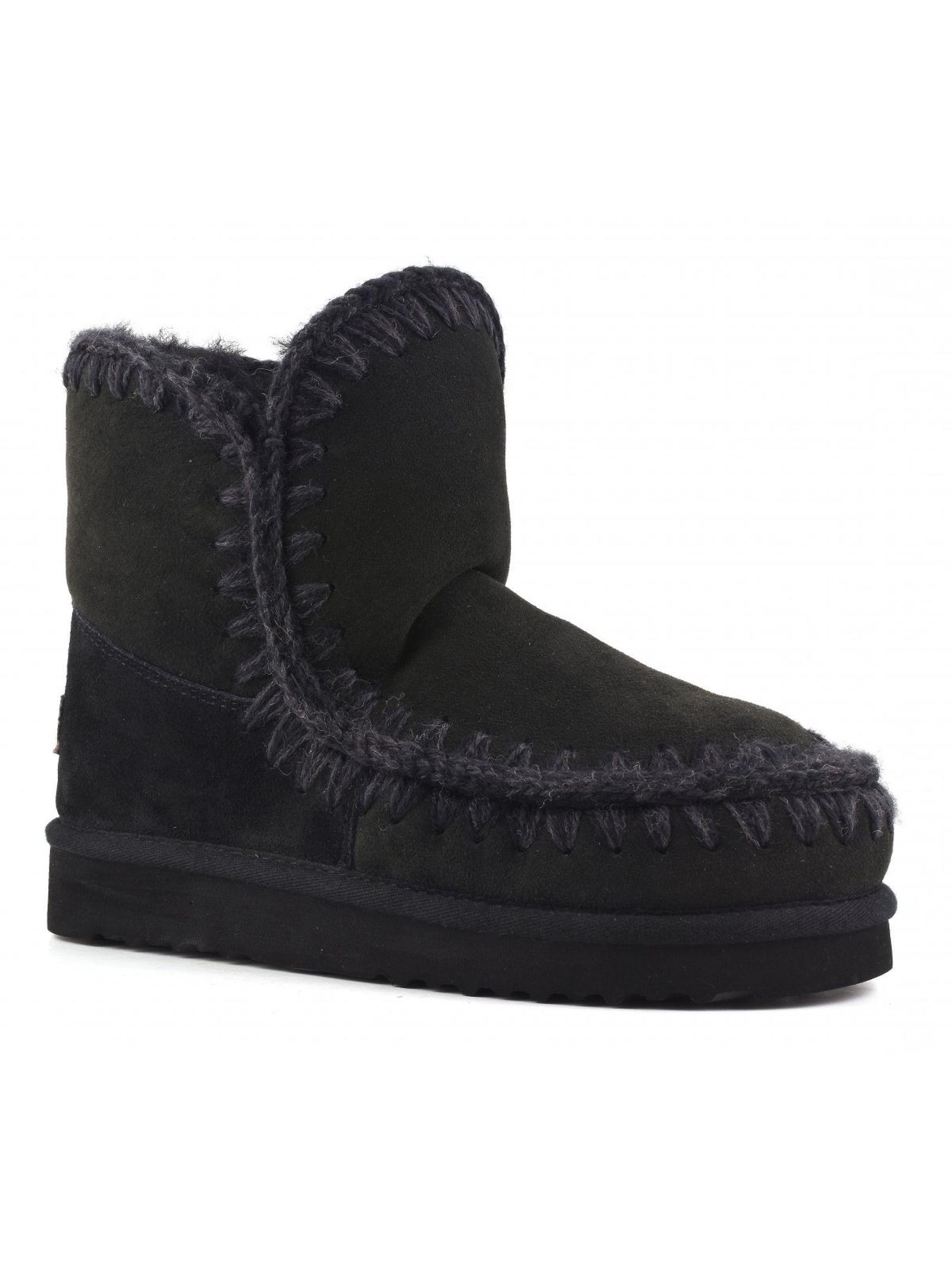 Black double-face sheepskin Eskimo 18, hand-crocheted wool seams, a supportive heel counter and an EVA & rubber outdoor sole, height 18cm, regular fit
