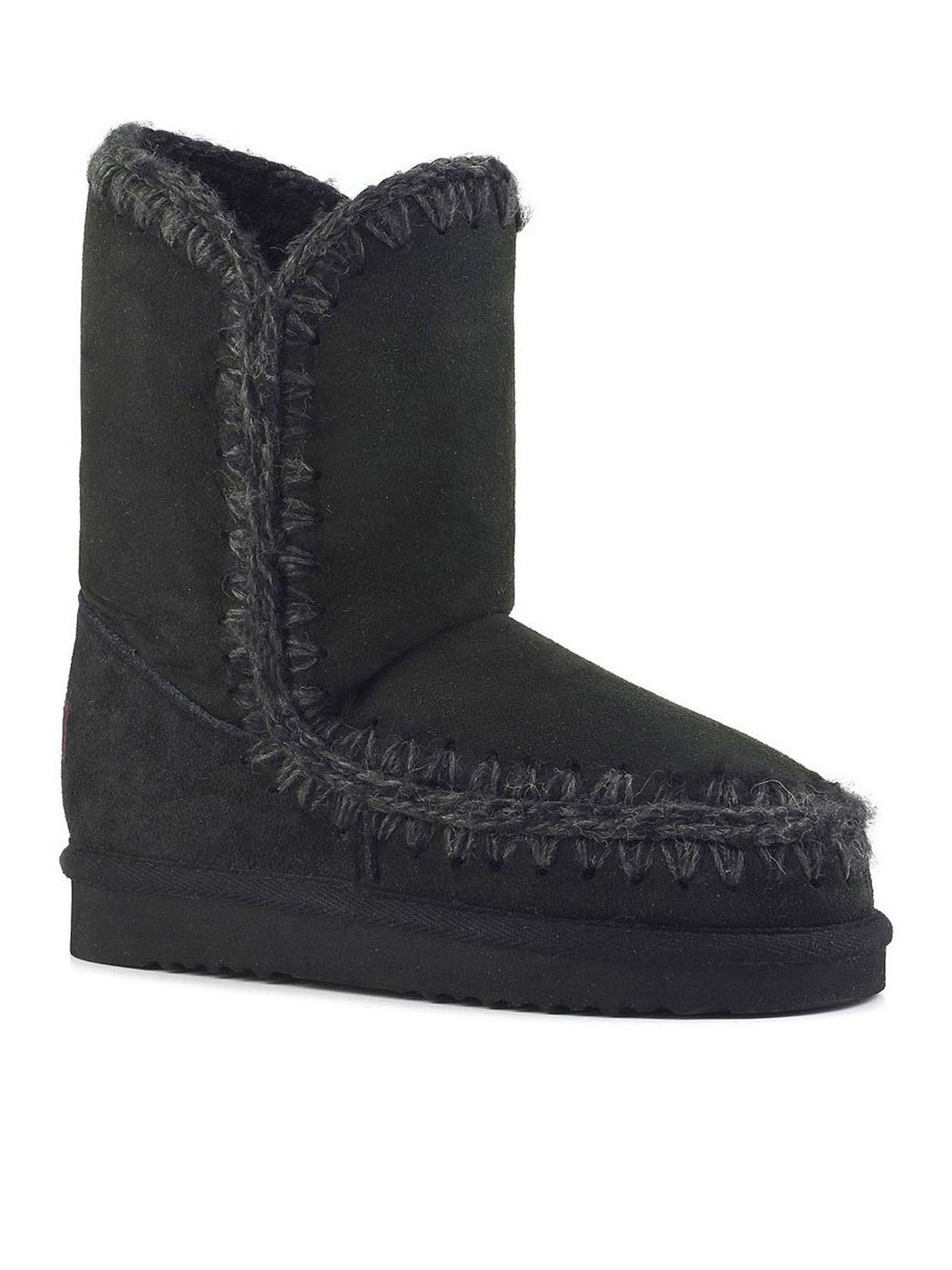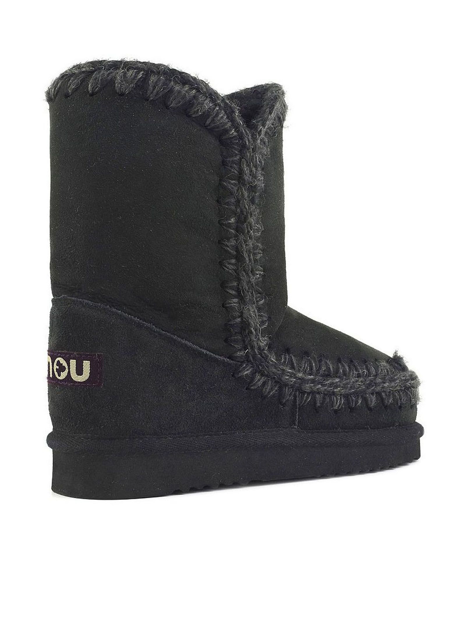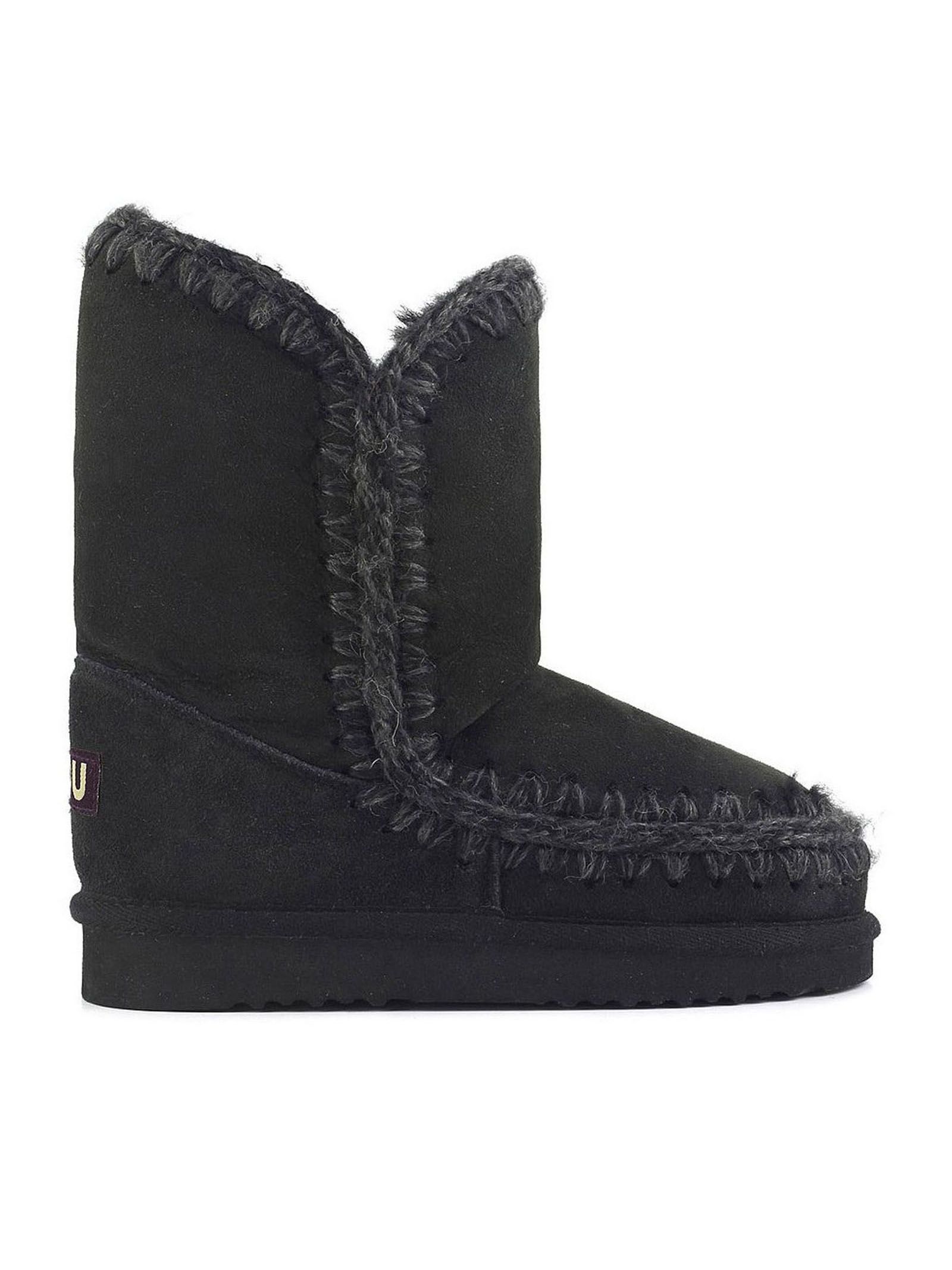 Black double-face sheepskin Eskimo 24, hand-crocheted wool seams, a supportive heel counter and an EVA & rubber outdoor sole, height 24cm, regular fit
