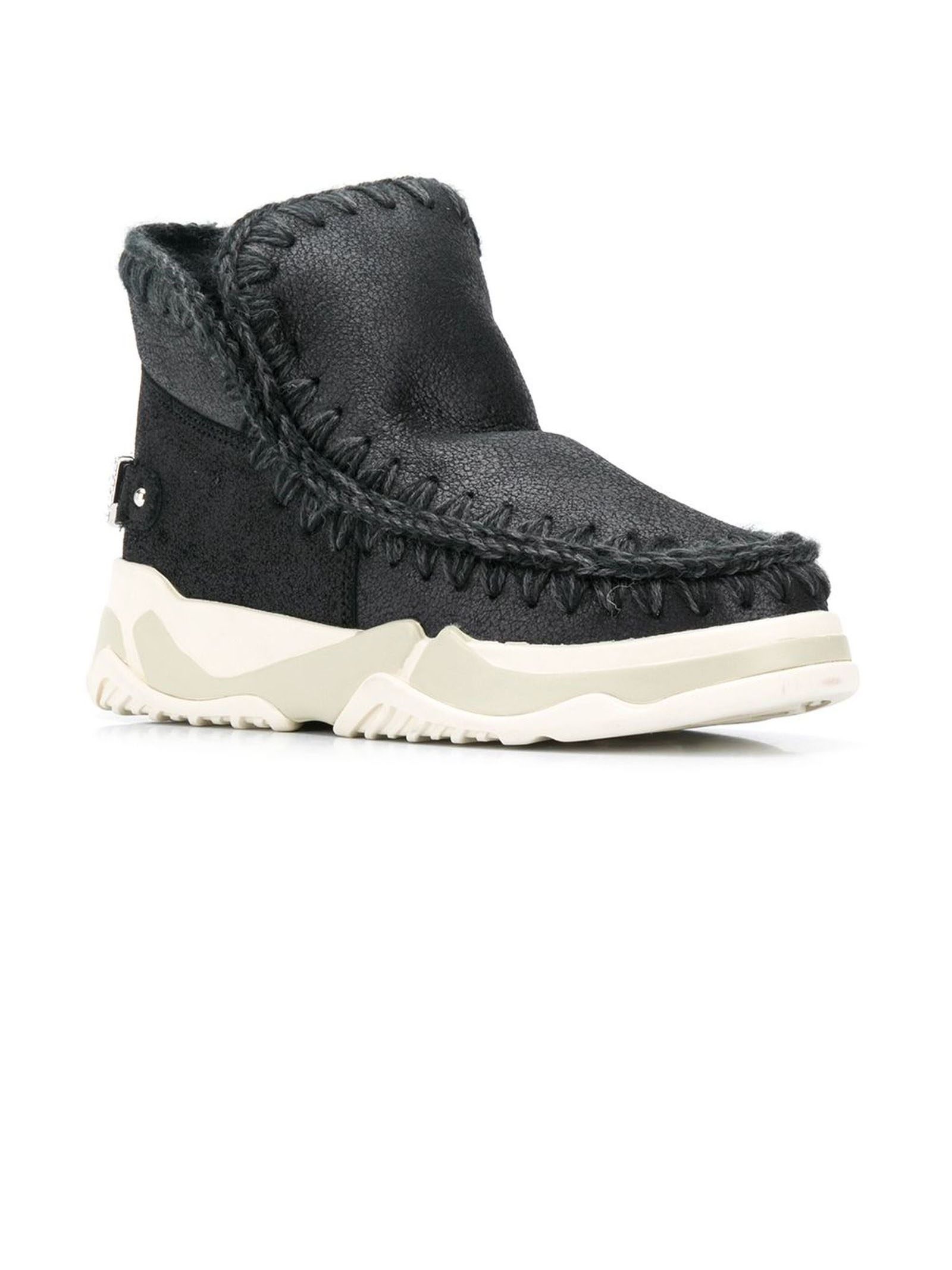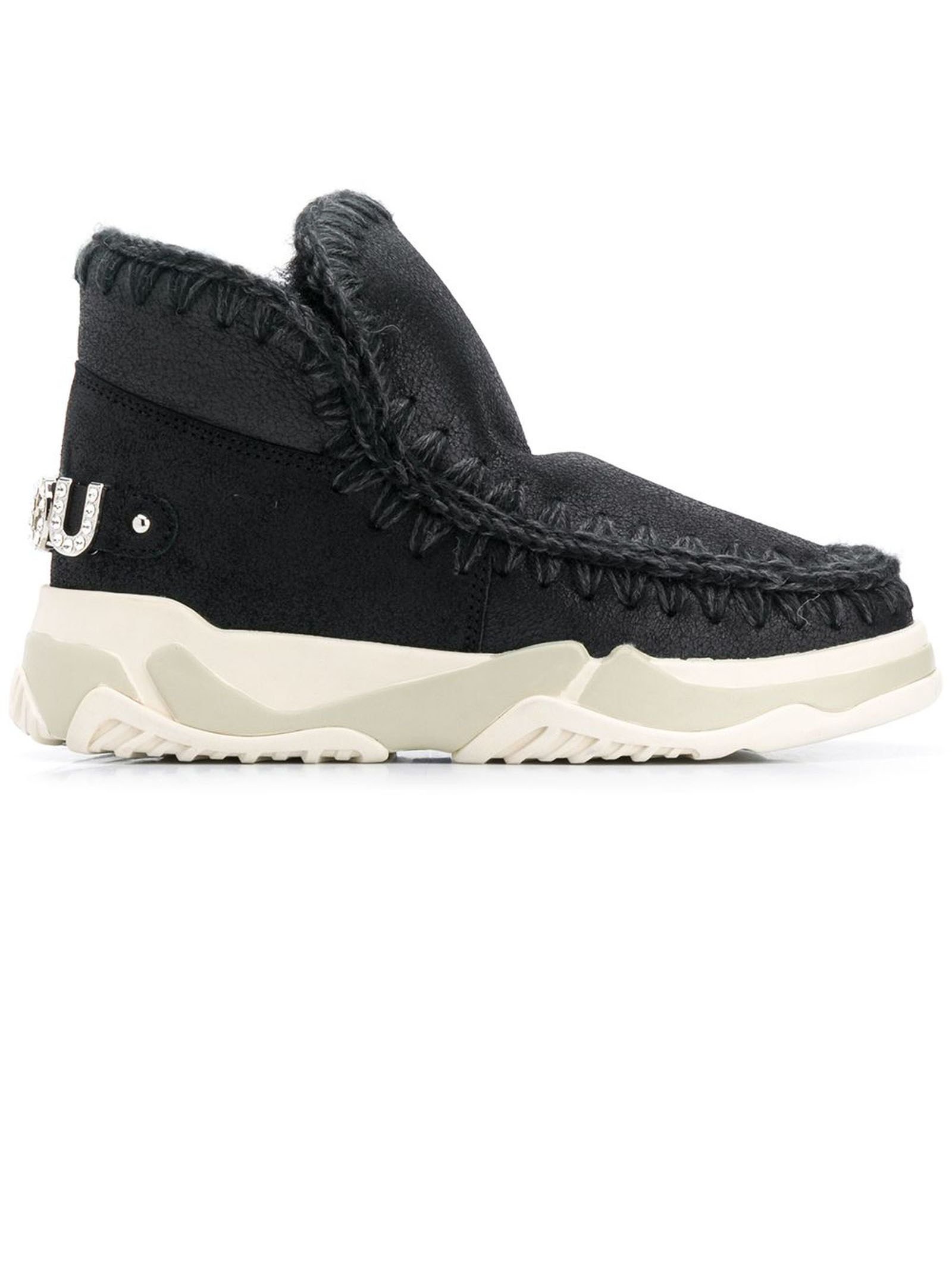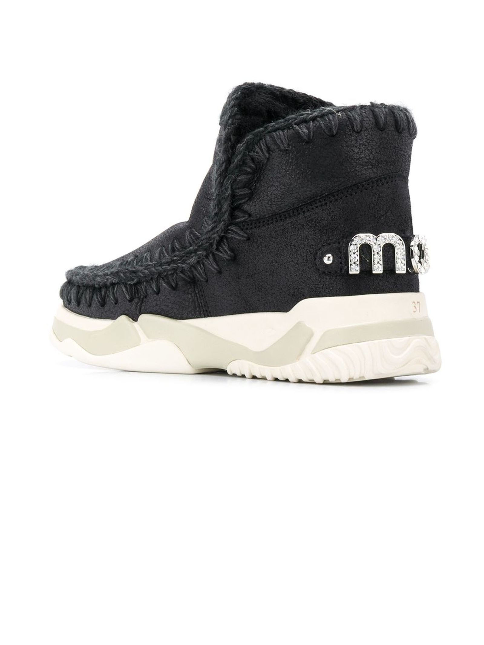 Cracked Black Eskimo trainer rhinestones logo detail, double-face sheepskin with mou trademark wool stitch embellishment, supportive heel-counter and lightweight EVA & rubber sole, height 14.5cm