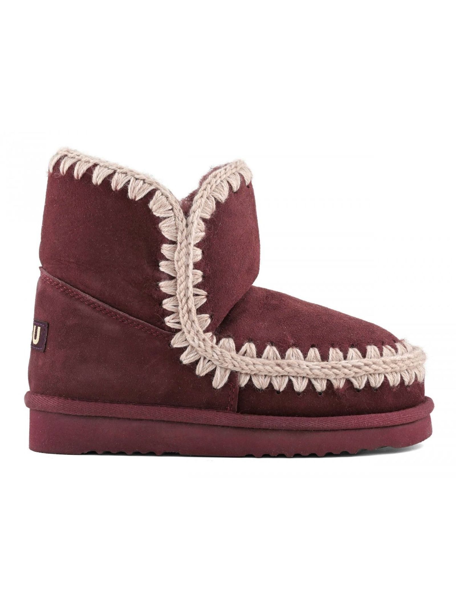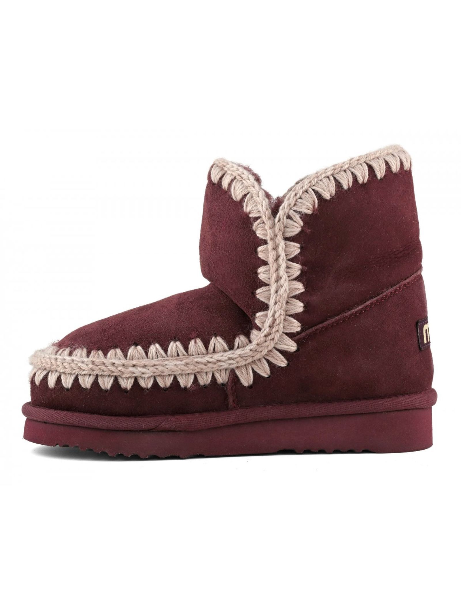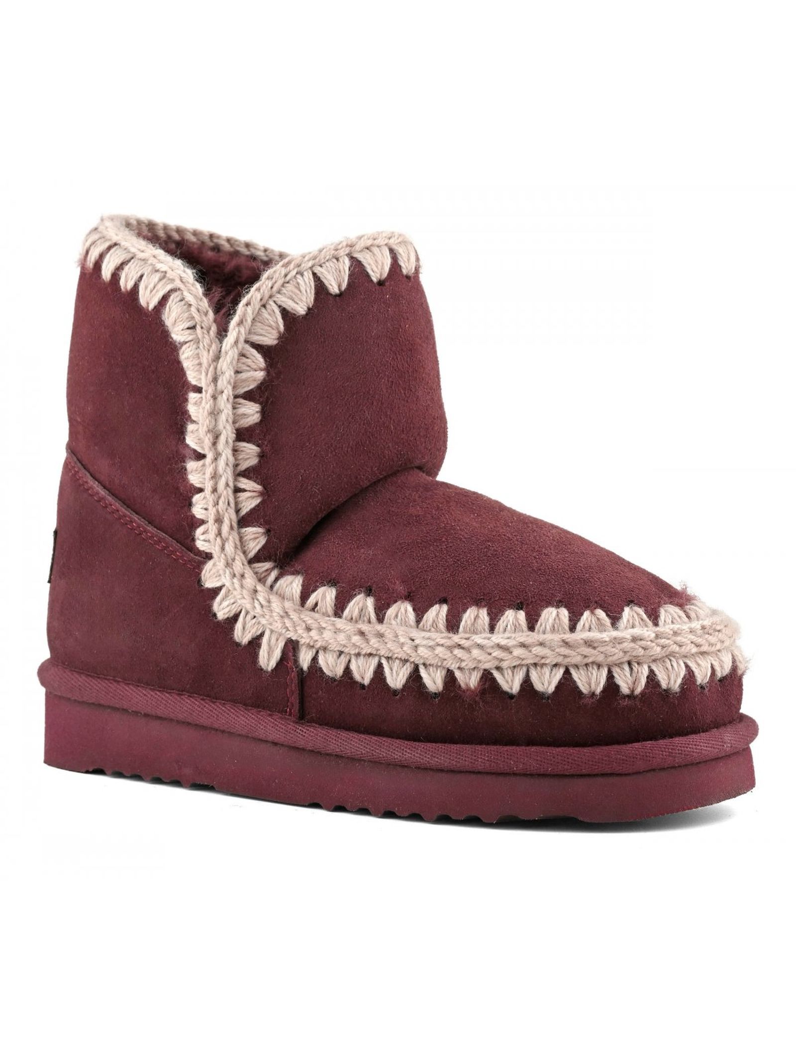 Eskimo 18 in bordeaux sheepskin, warm double-face sheepskin, crochet wool seams, height 18cm, rubber and EVA outsole