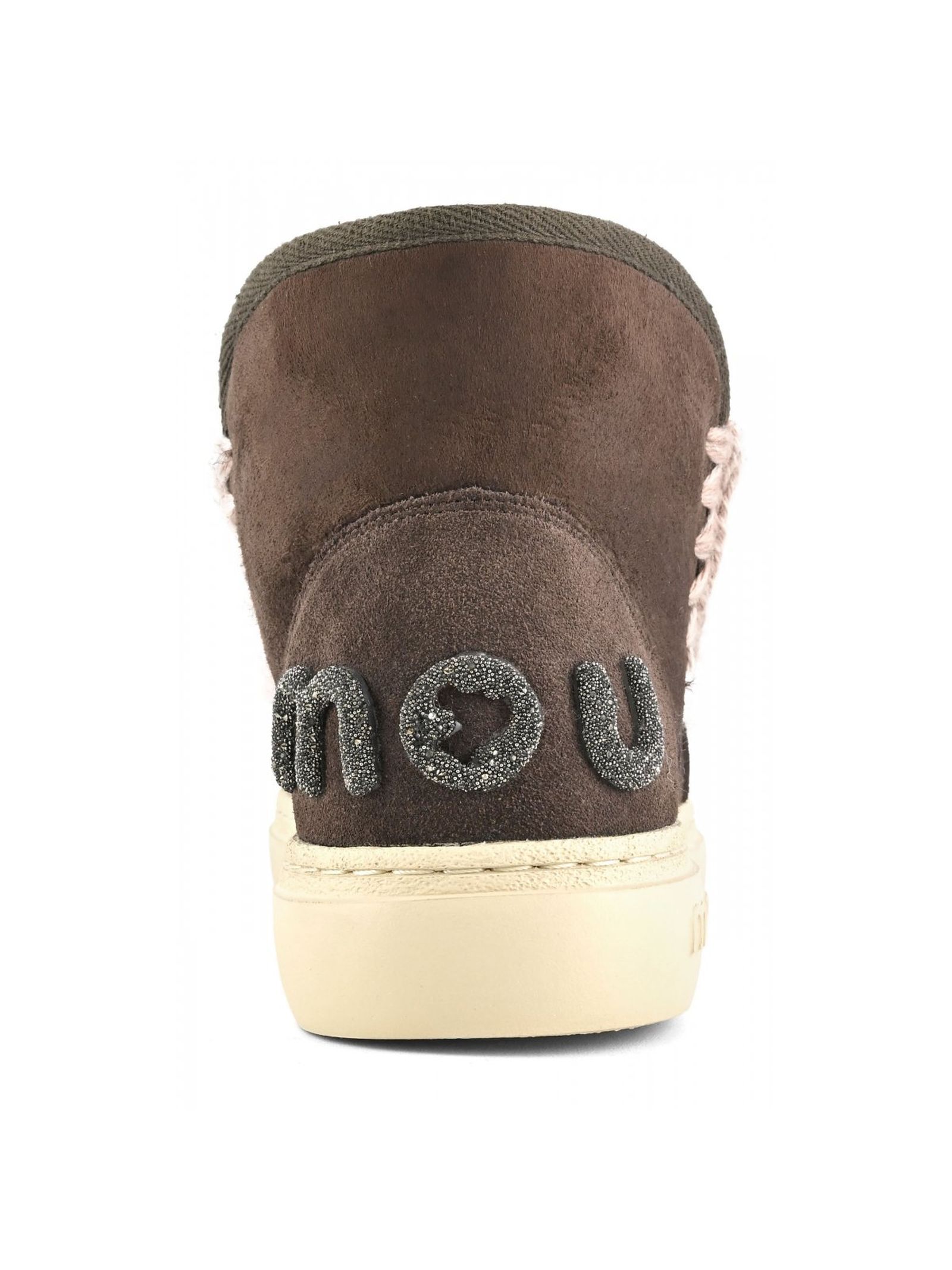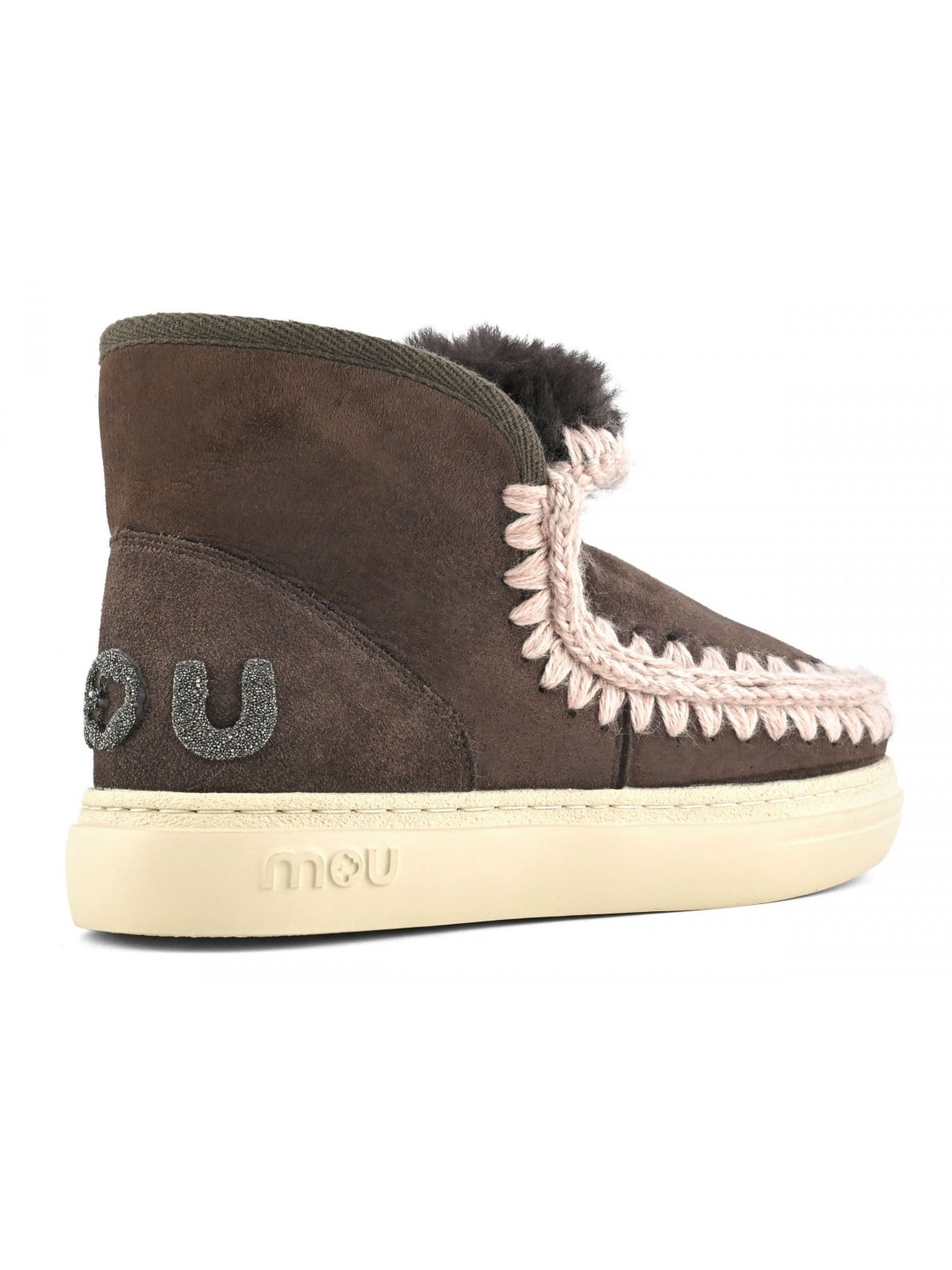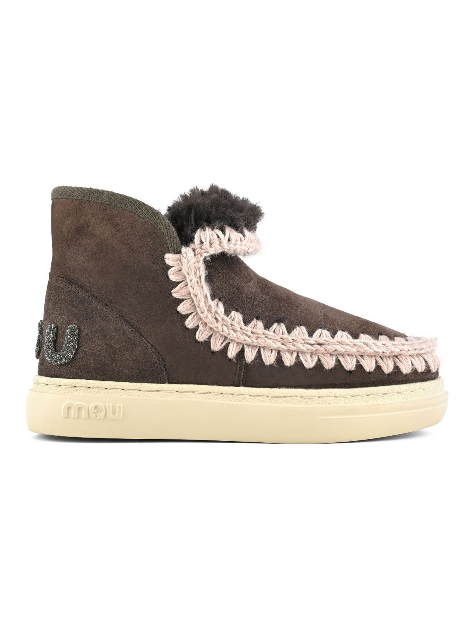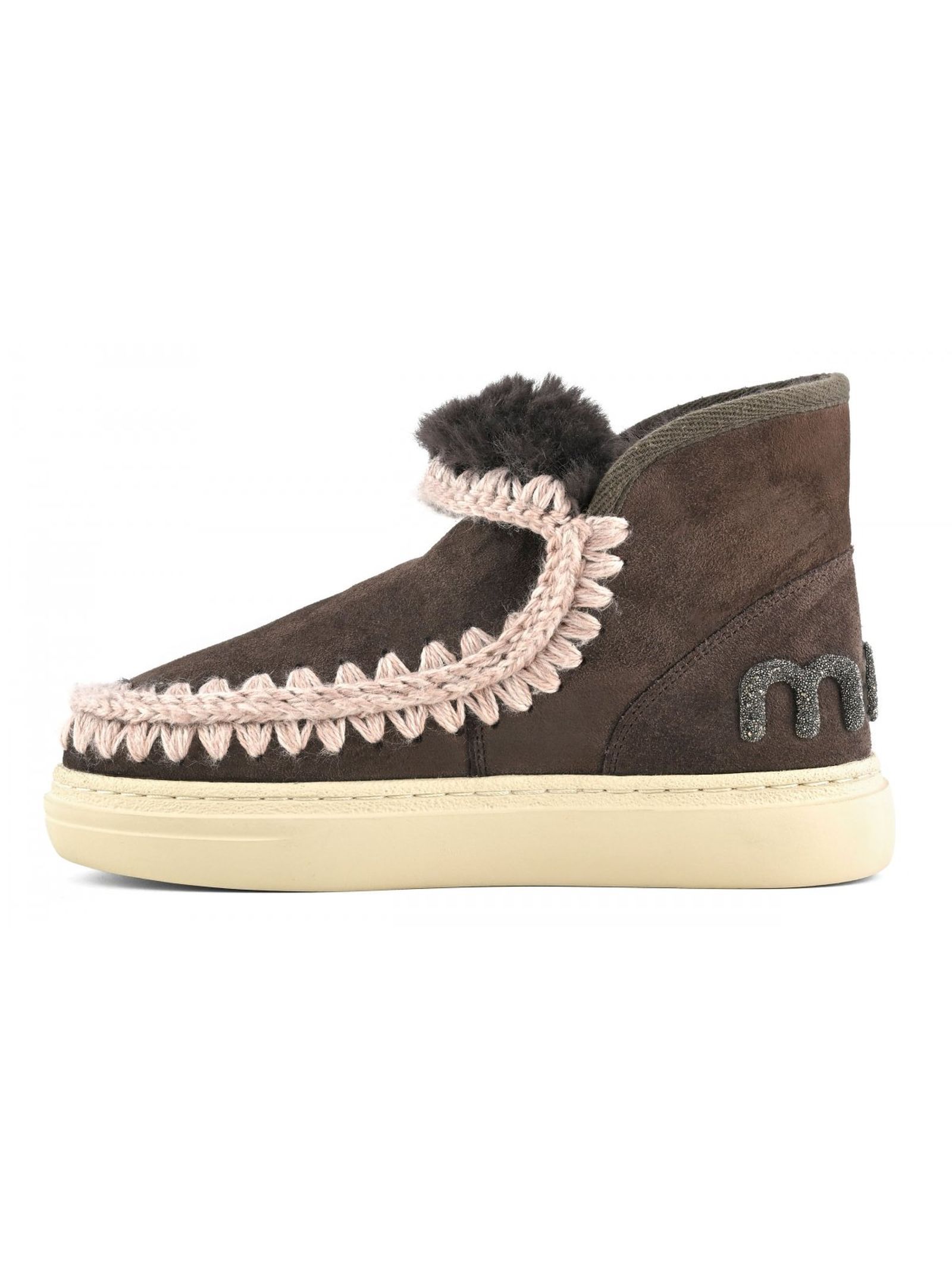Eskimo sneaker bold with glitter logo in brown leather, double-face sheepskin with crochet stitch details, supportive heel counter and durable, comfort, height 16cm.