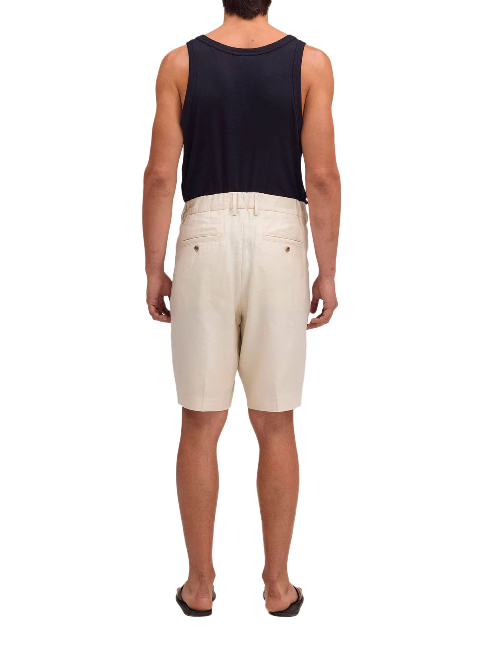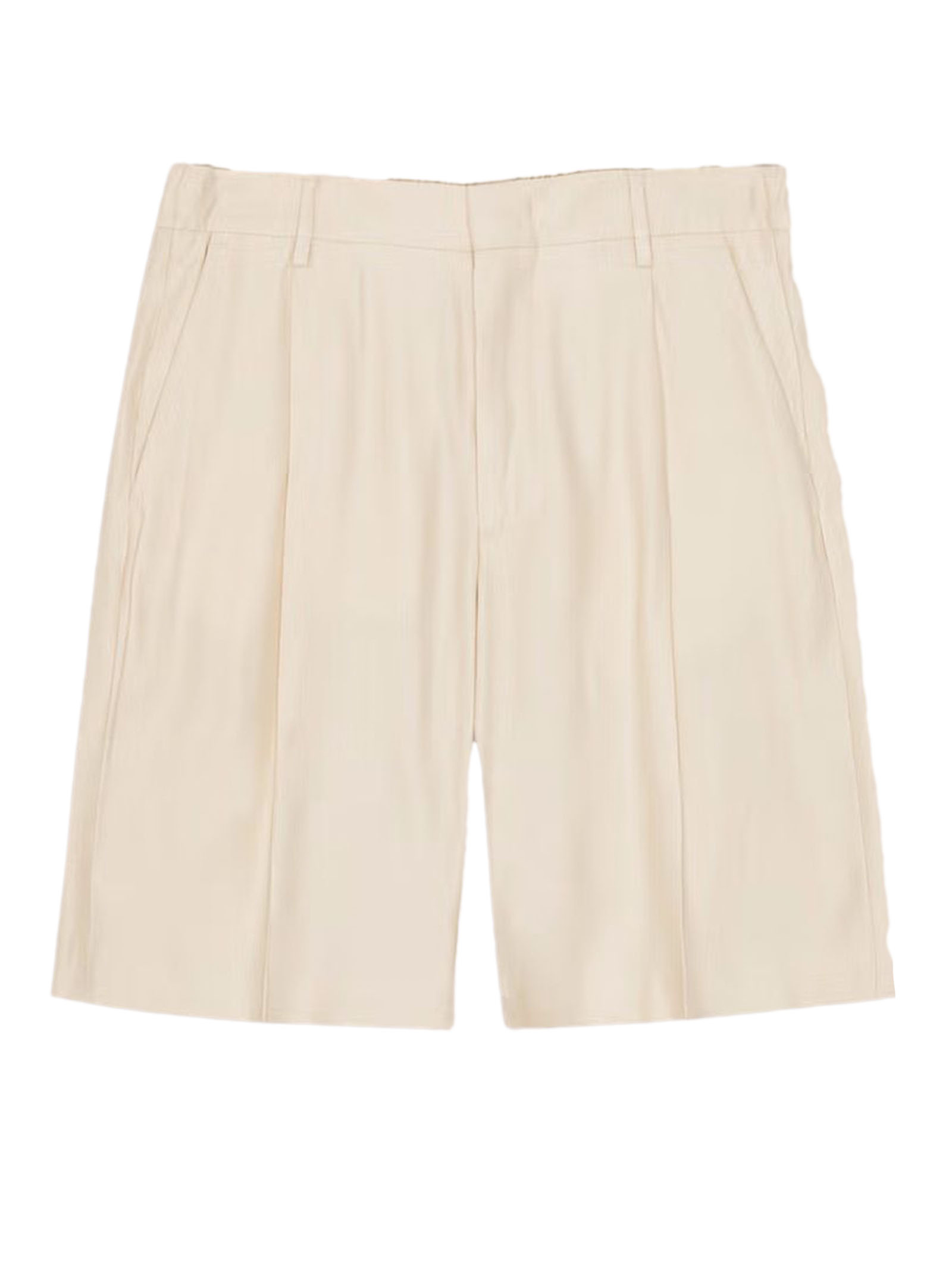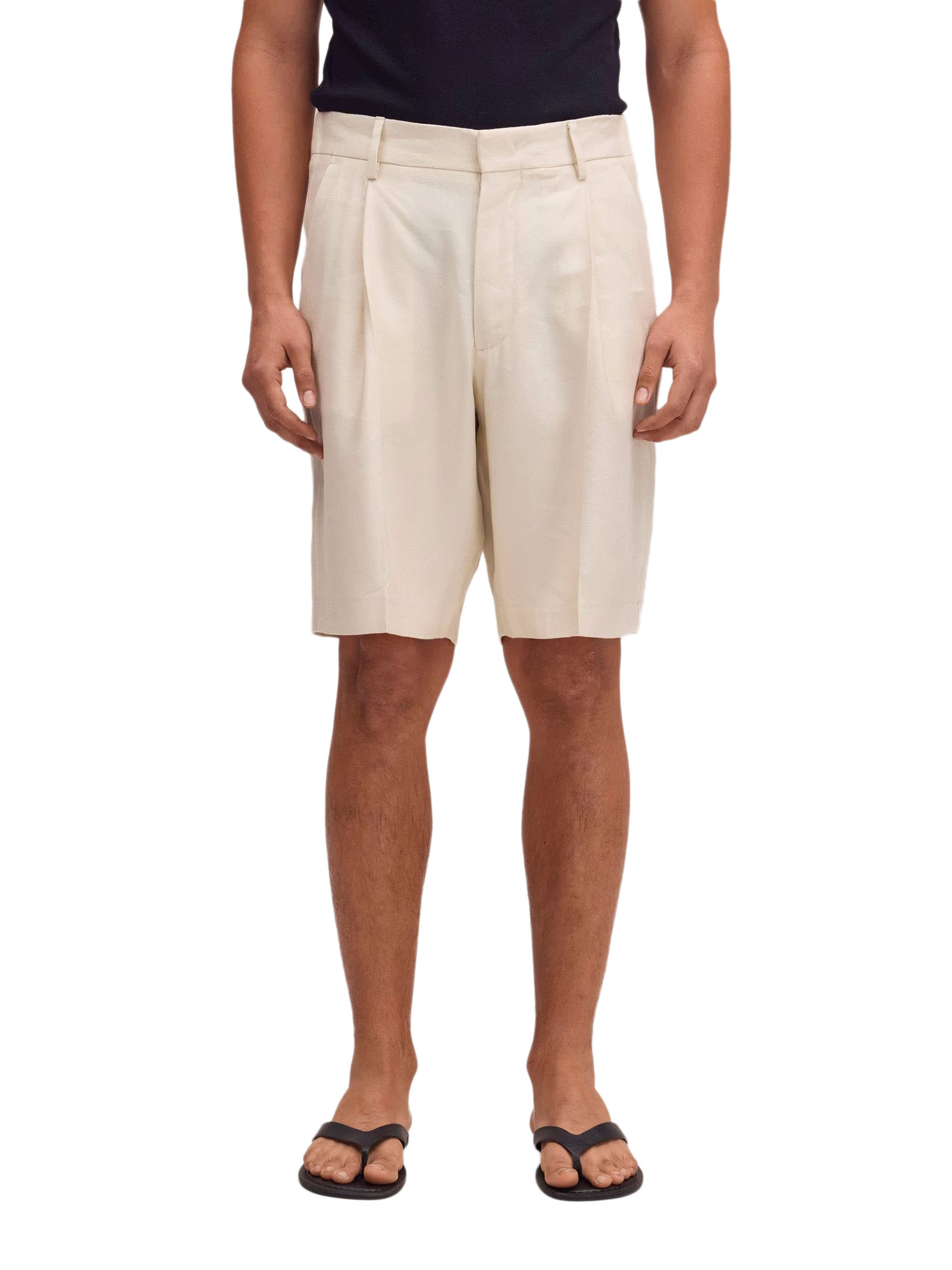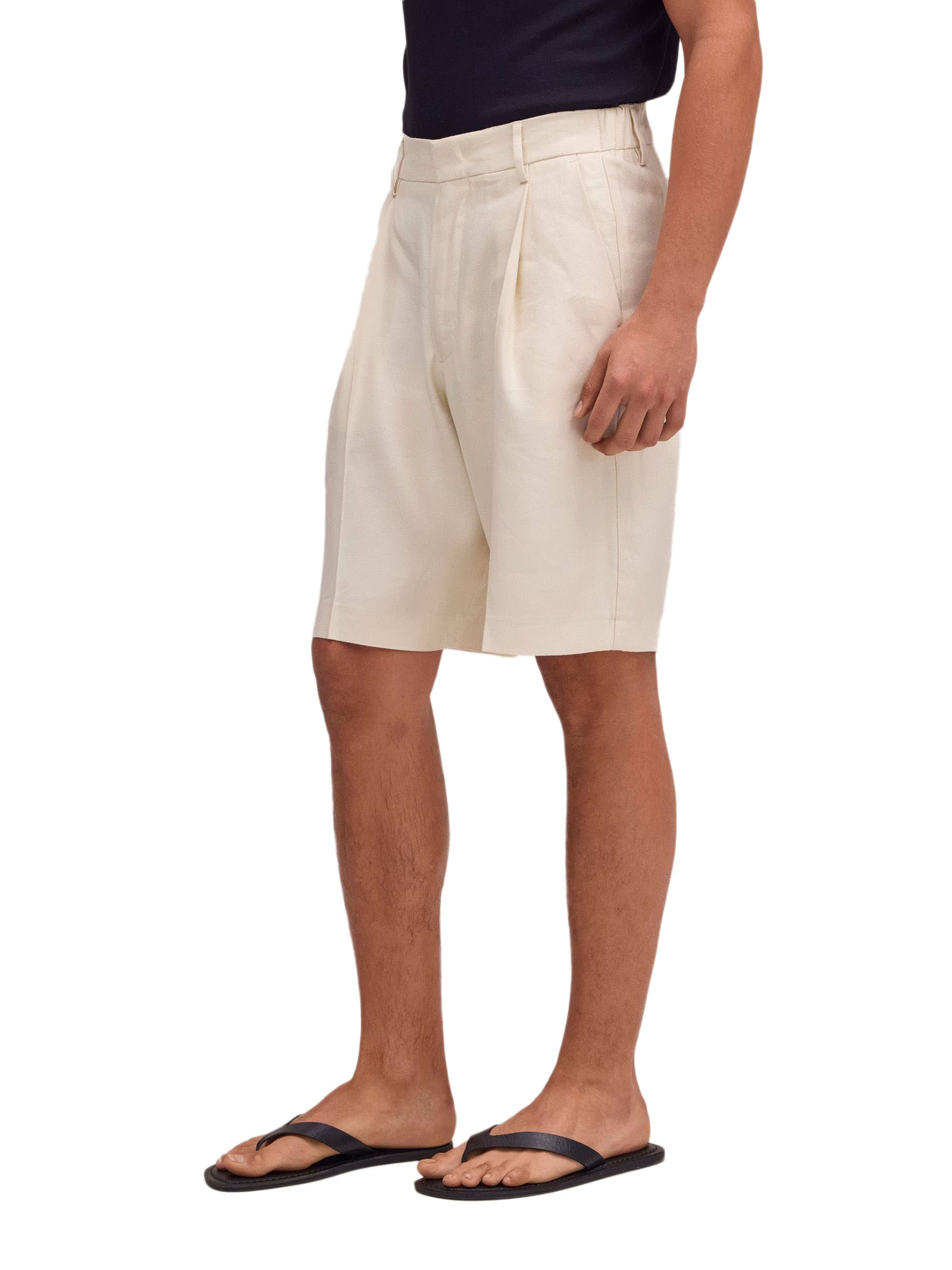 Light Beige linen blend Shorts, LENZING™ ECOVERO™ viscose, Relaxed fit, Hook & bar closure, Pleated front, Back welt pockets, Panama weave, LENZING™ ECOVERO™ viscose, European Flax linen