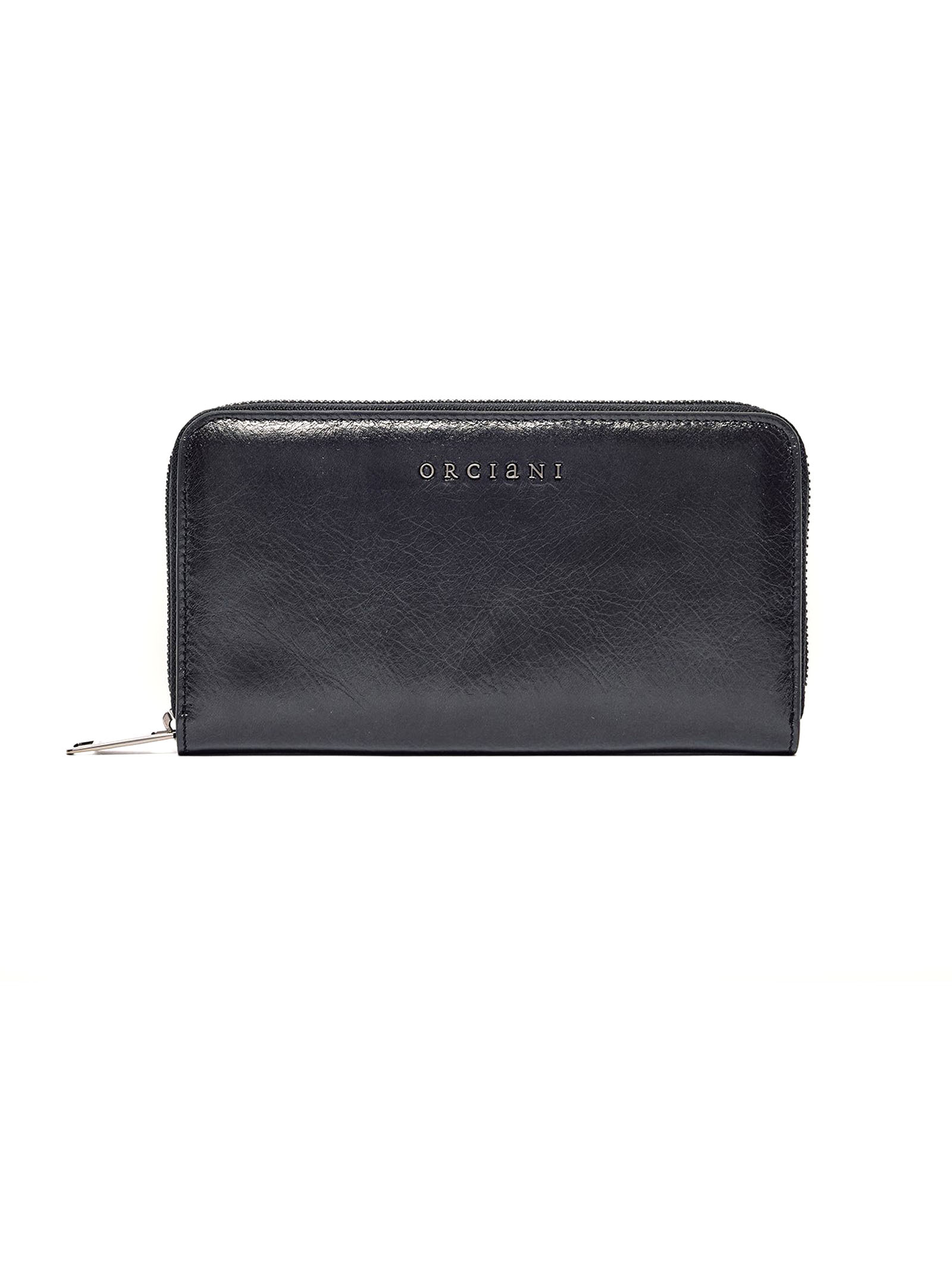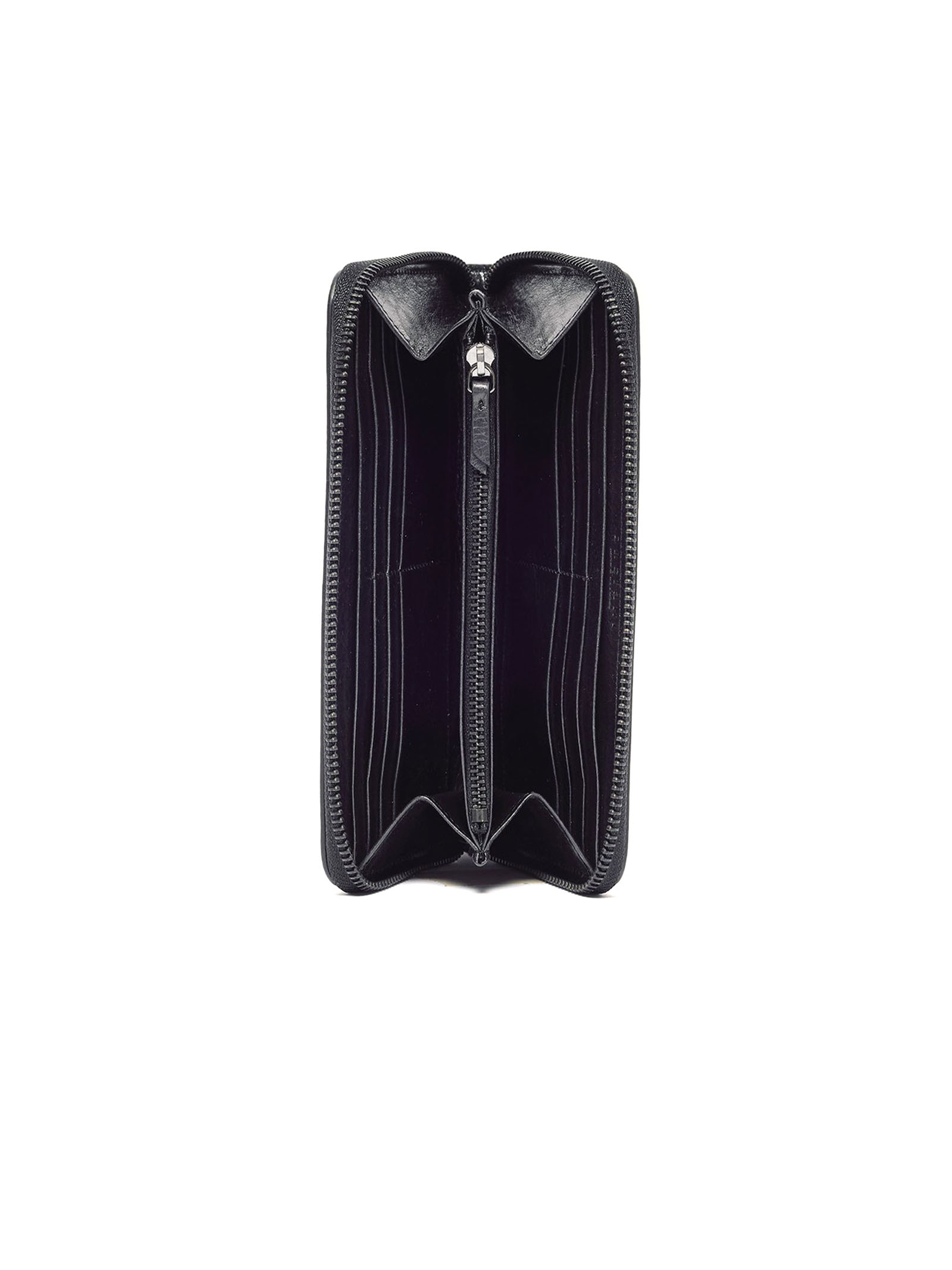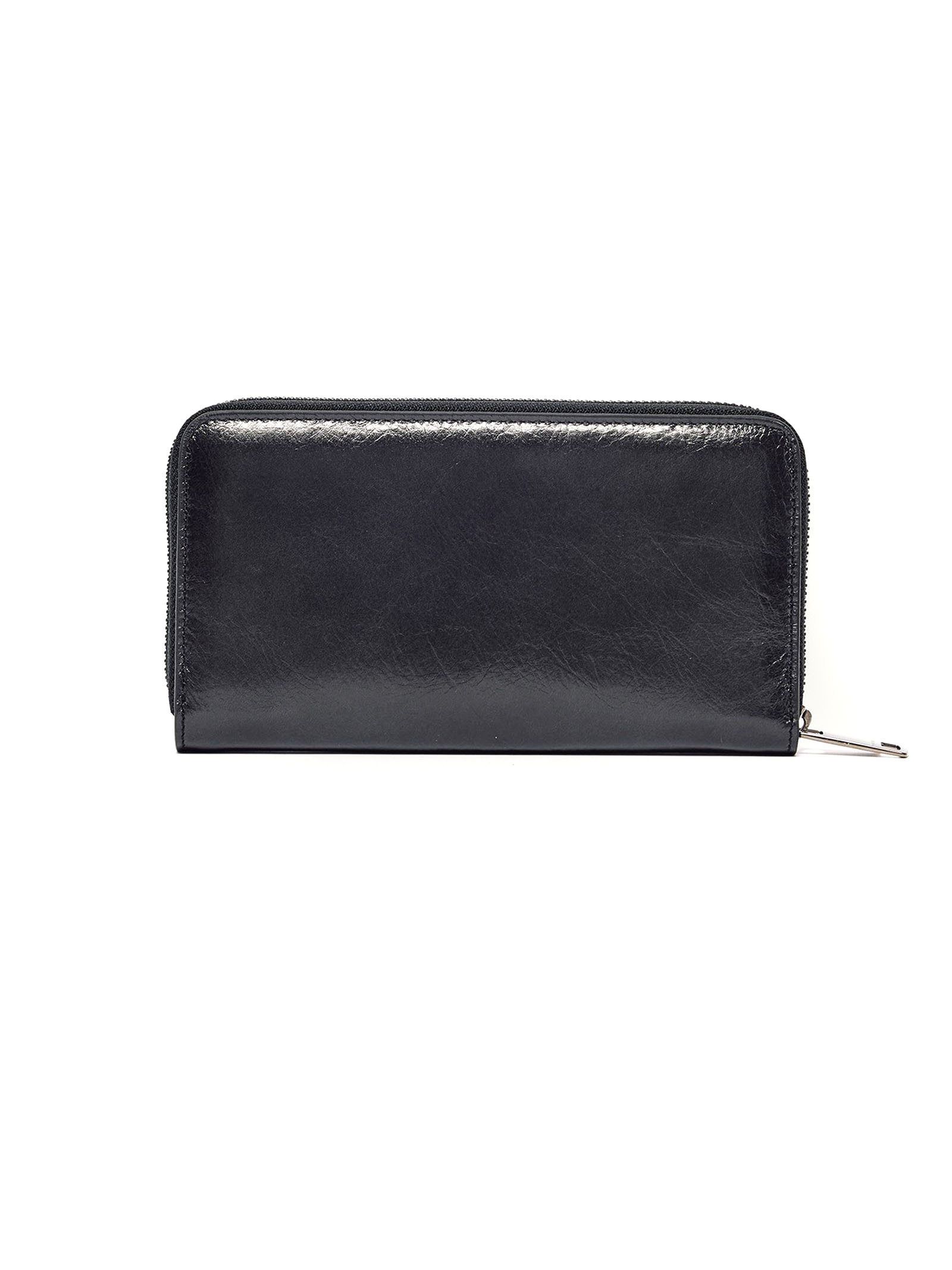 Black Gotham leather wallet, two banknotes compartments, eight card slots, central zipped coin pocket, Fastening with zip, RFID data protection system, shiny finish leather, polished gun metal finish hardware, Width: 19 cm, Height: 10,5 cm, Depth: 2 cm