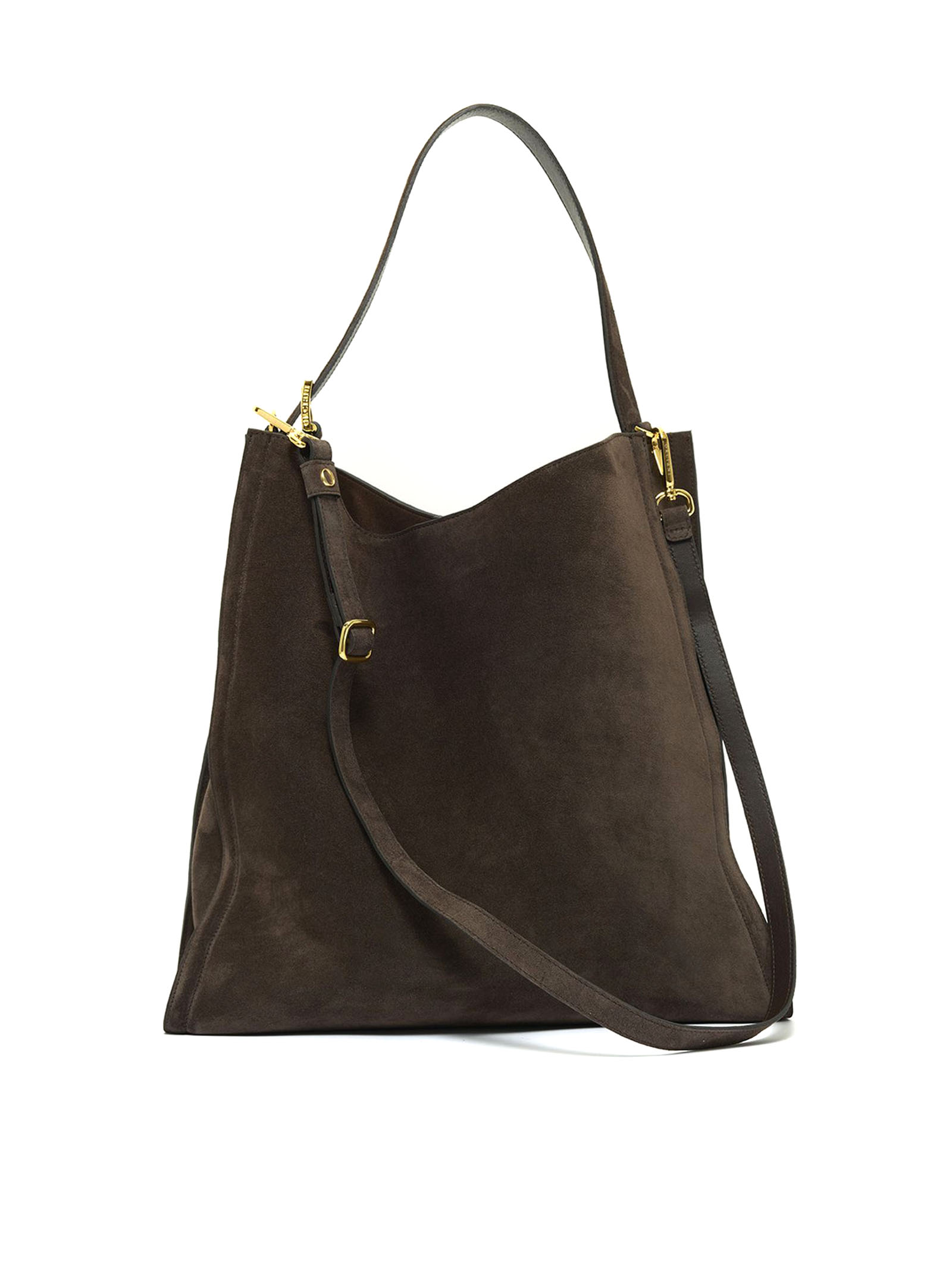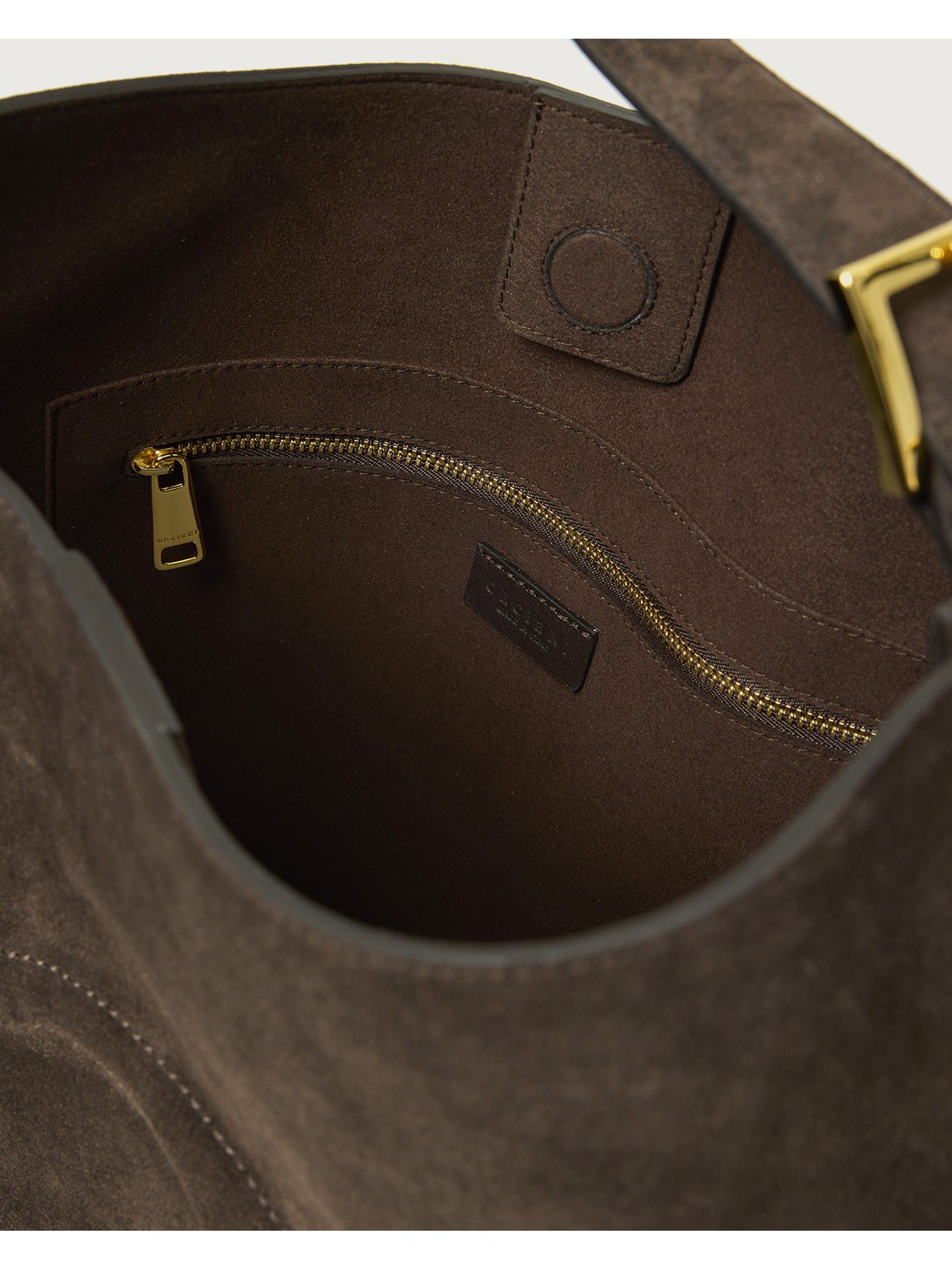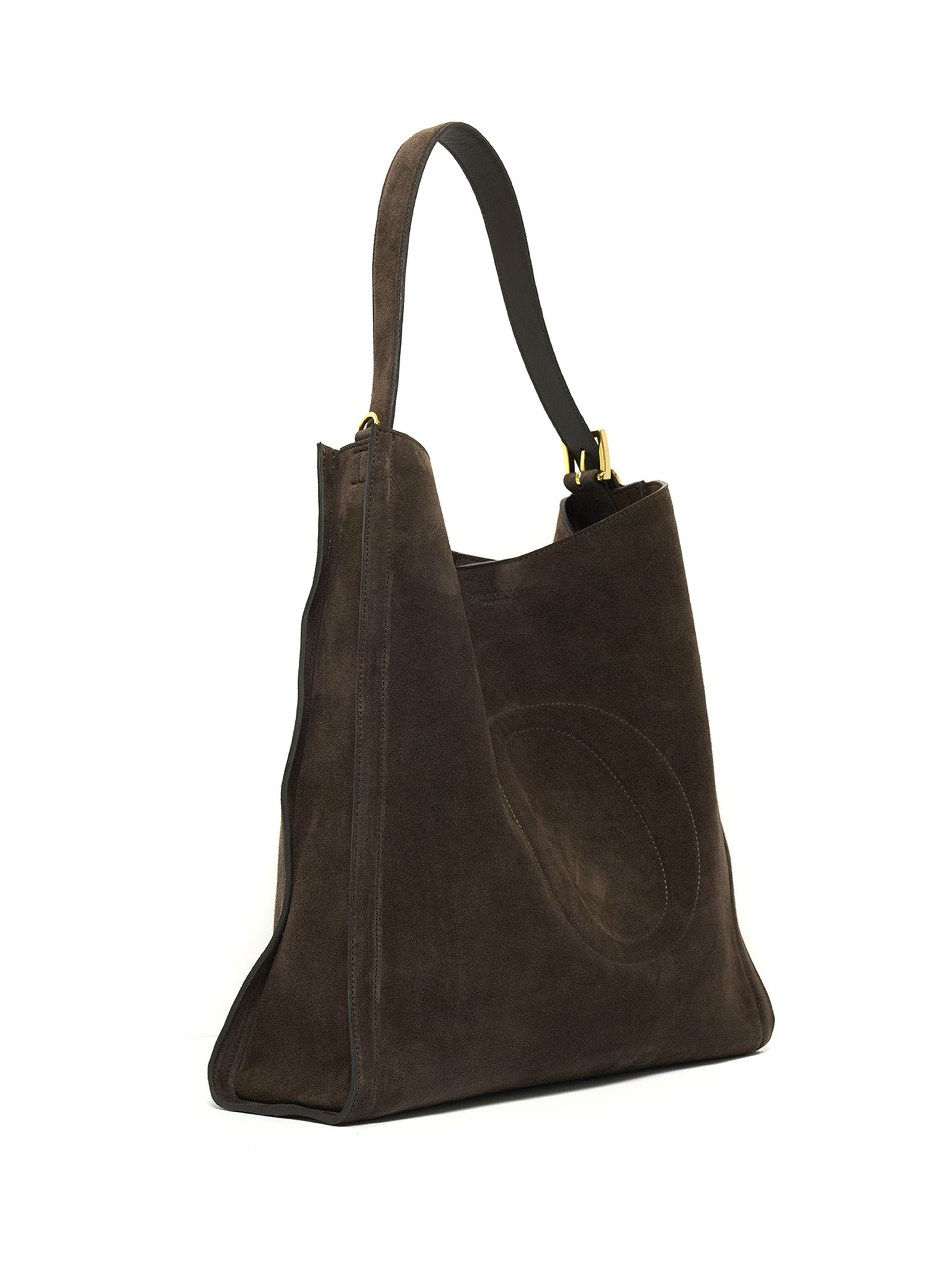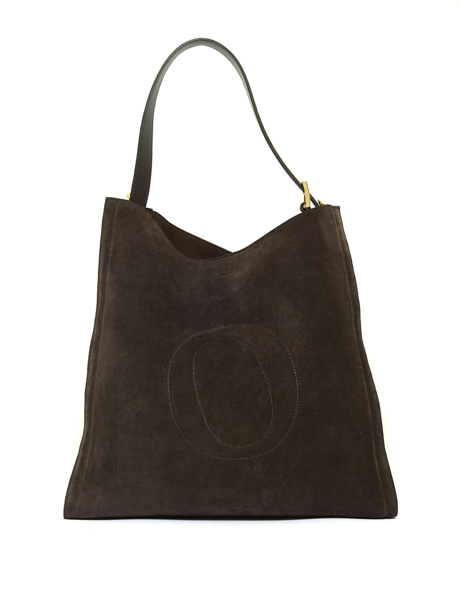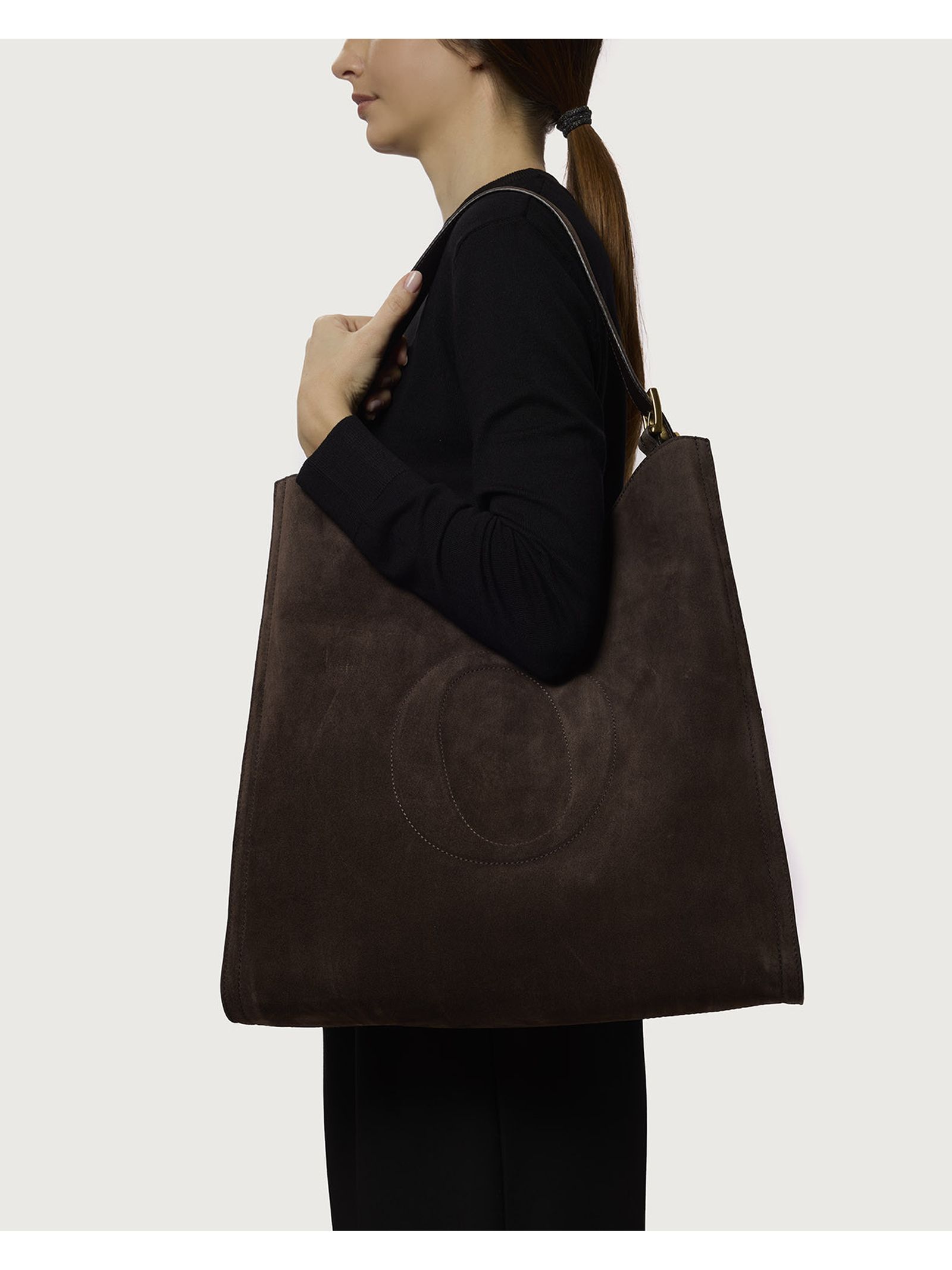 Her-O Peach Large suede leather shoulder bag, dimensions: Width: 40 cm / Height: 40 cm / Depth: 12 cm, Pockets: 3 internal, one of which is zippered, Closure: magnetic button, Features: adjustable strap with buckle, additional adjustable shoulder strap, Details: polished gold finish hardware