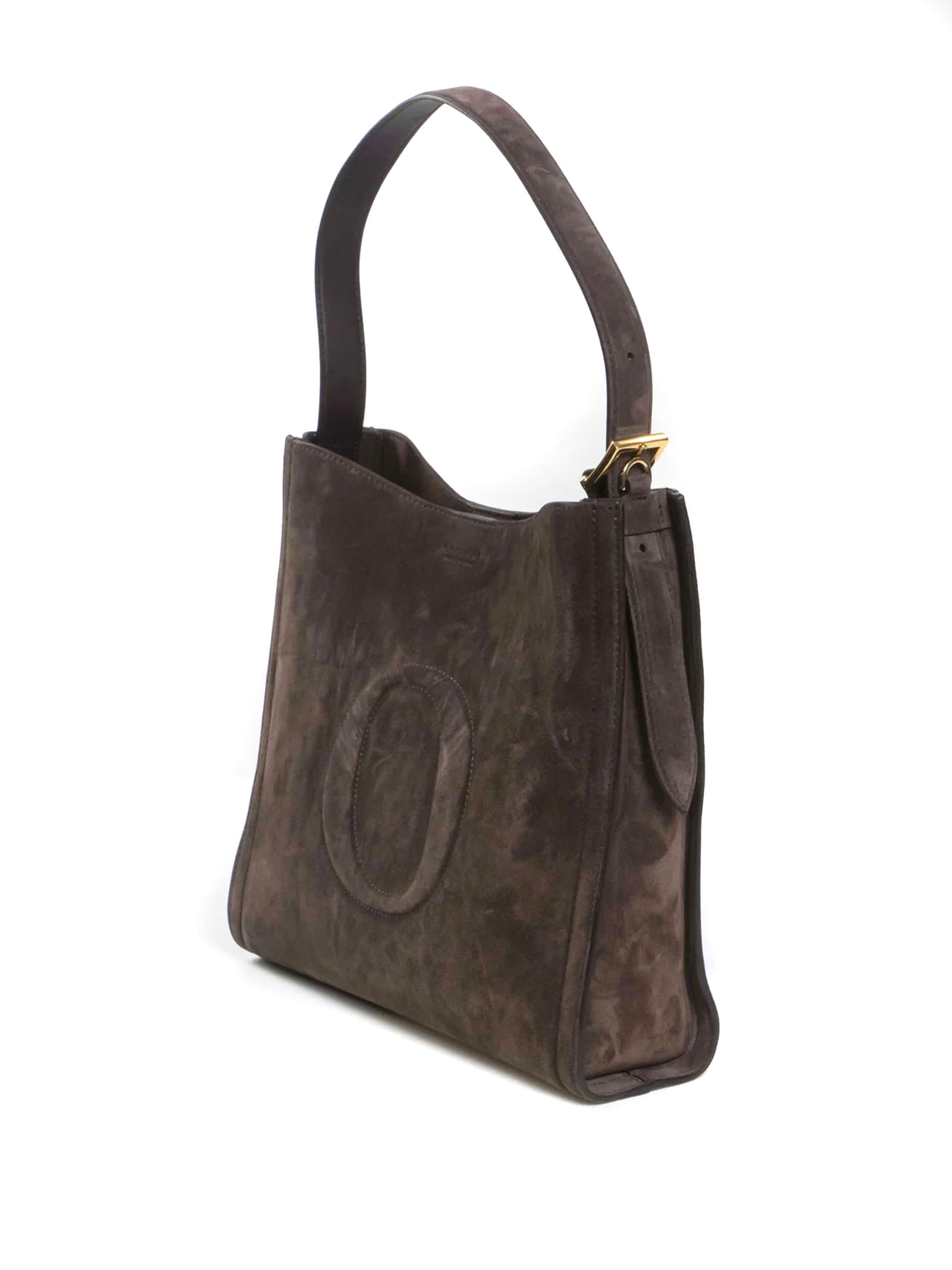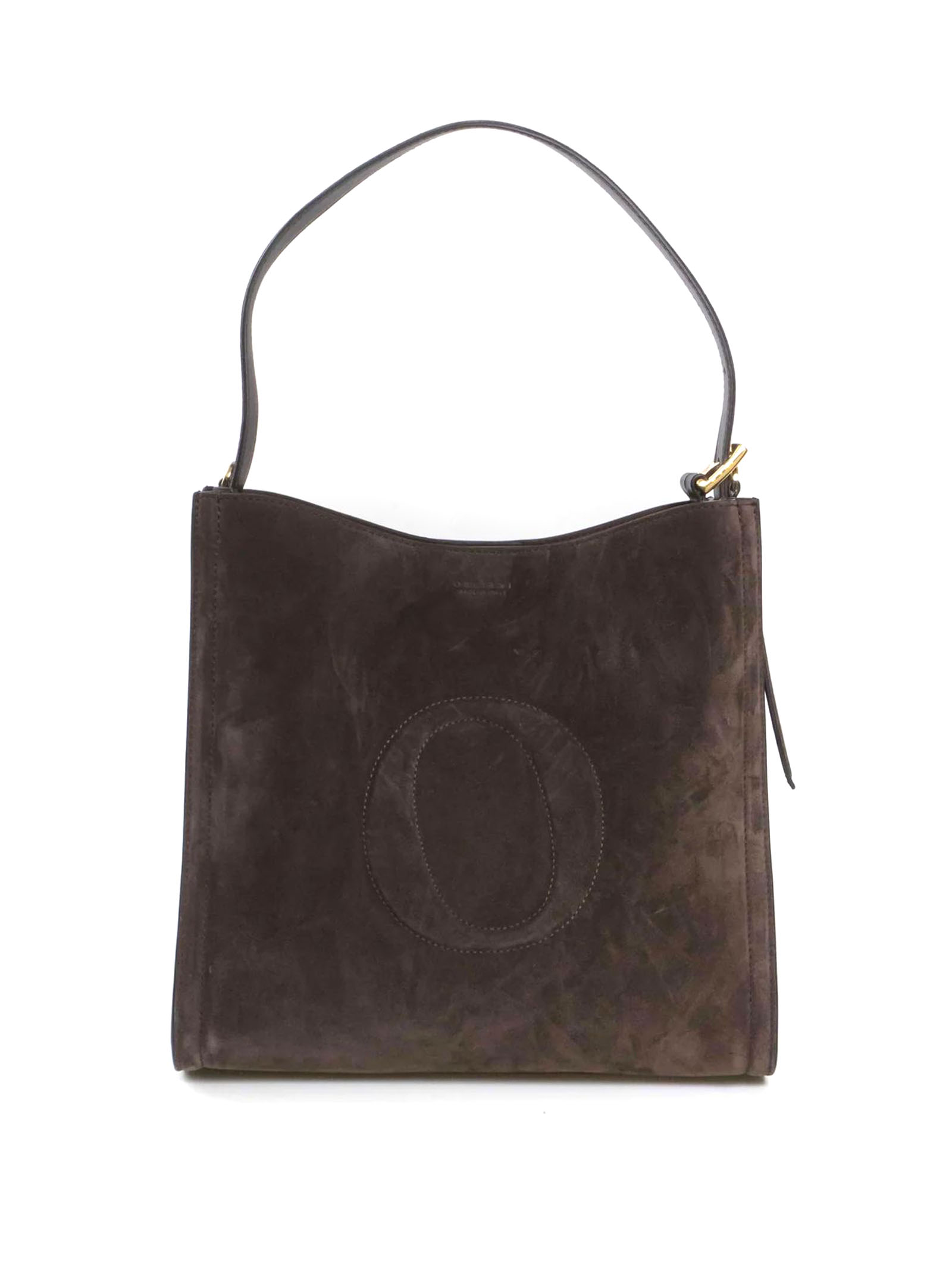 Her-O Peach Midi suede leather shoulder bag, pockets 3 internal, one of which is zippered, closure magnetic button, features adjustable strap with buckle, additional adjustable shoulder strap, material suede leather, details: polished gold finish hardware, Width: 33 cm, Height: 33 cm, Depth: 11 cm