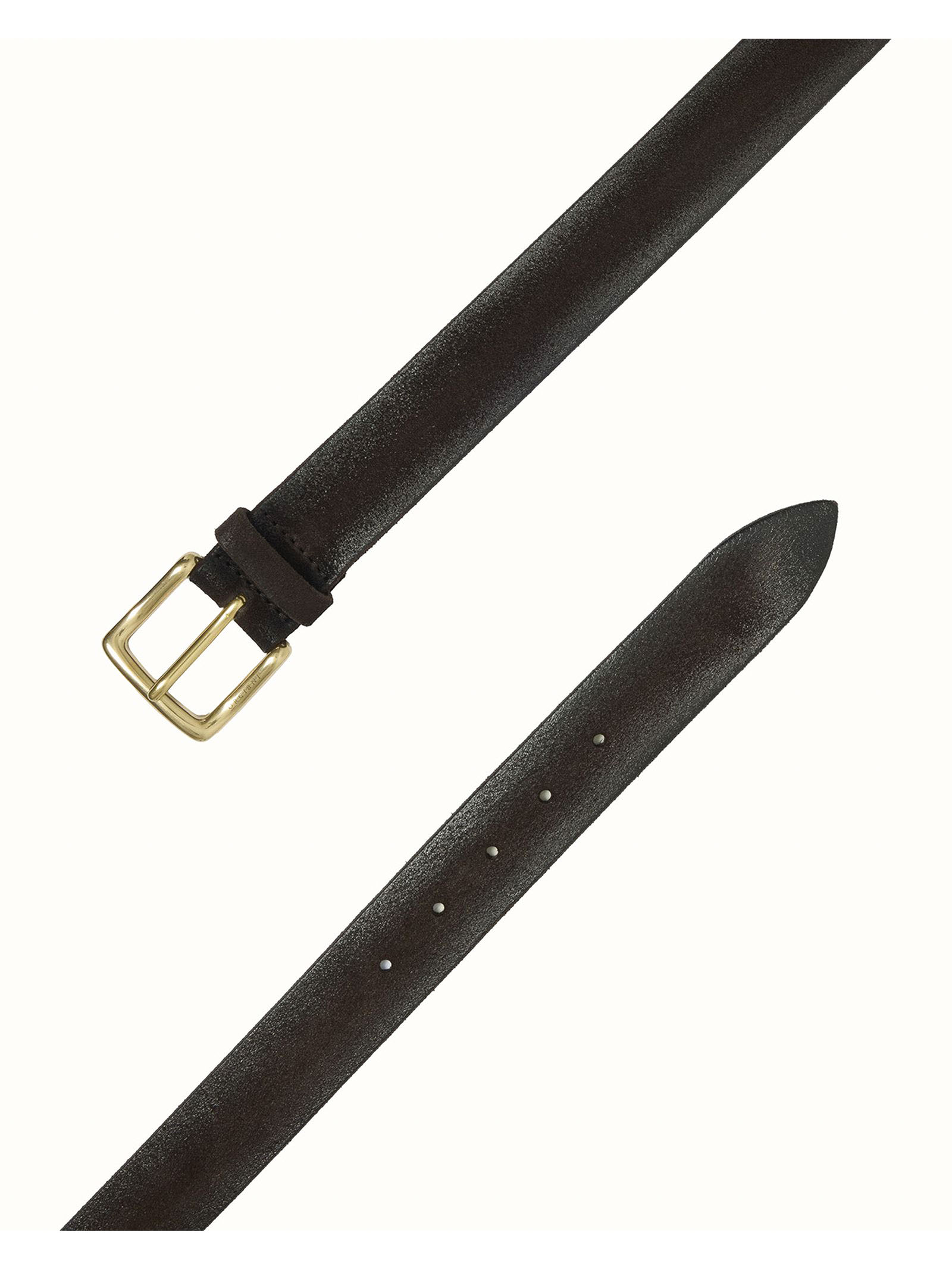 Hunting suede belt brass buckle 3,5 cm, polished brass finish