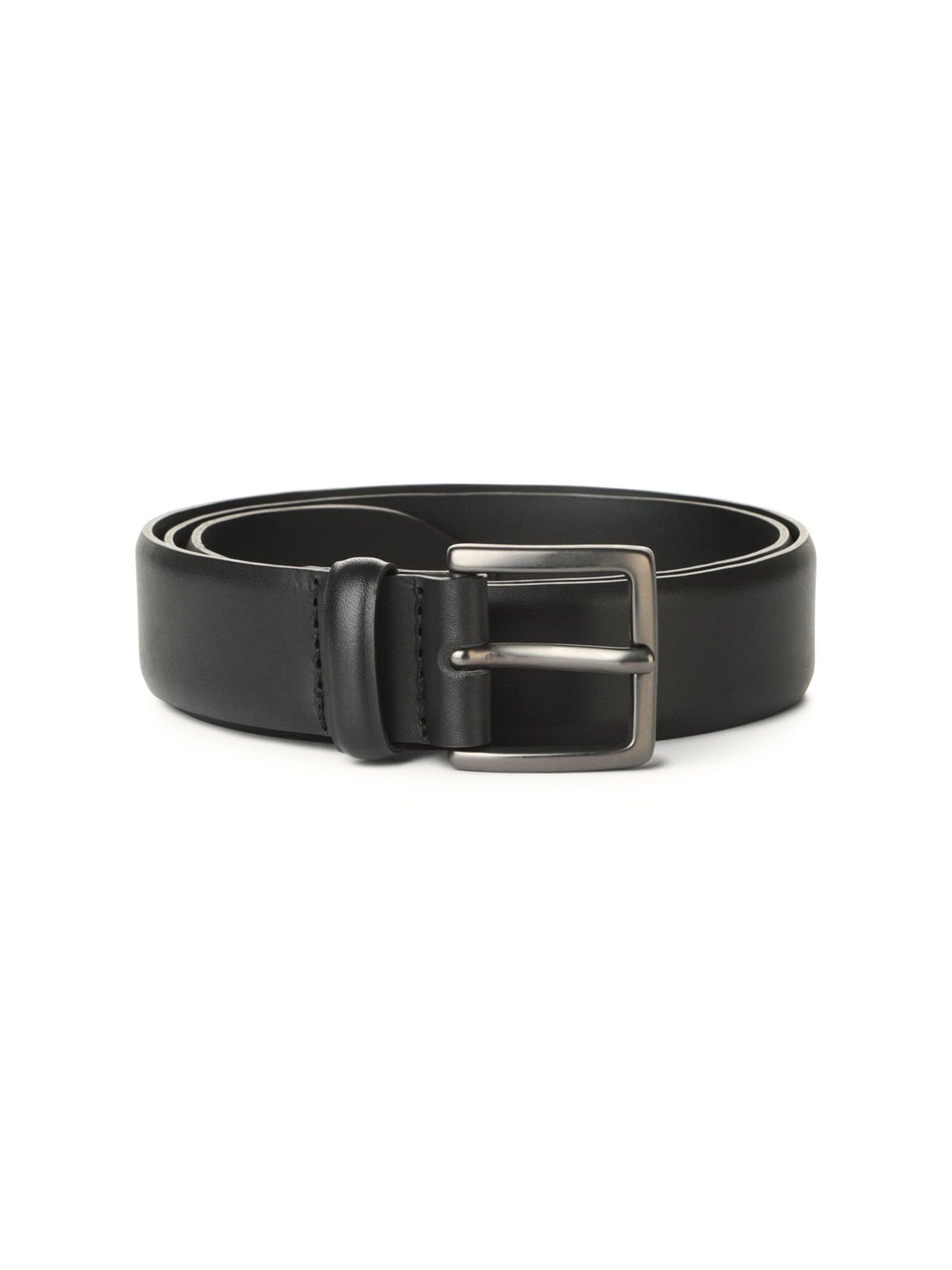 Monaco black leather belt, gunmetal finish, Height: 3,5 cm