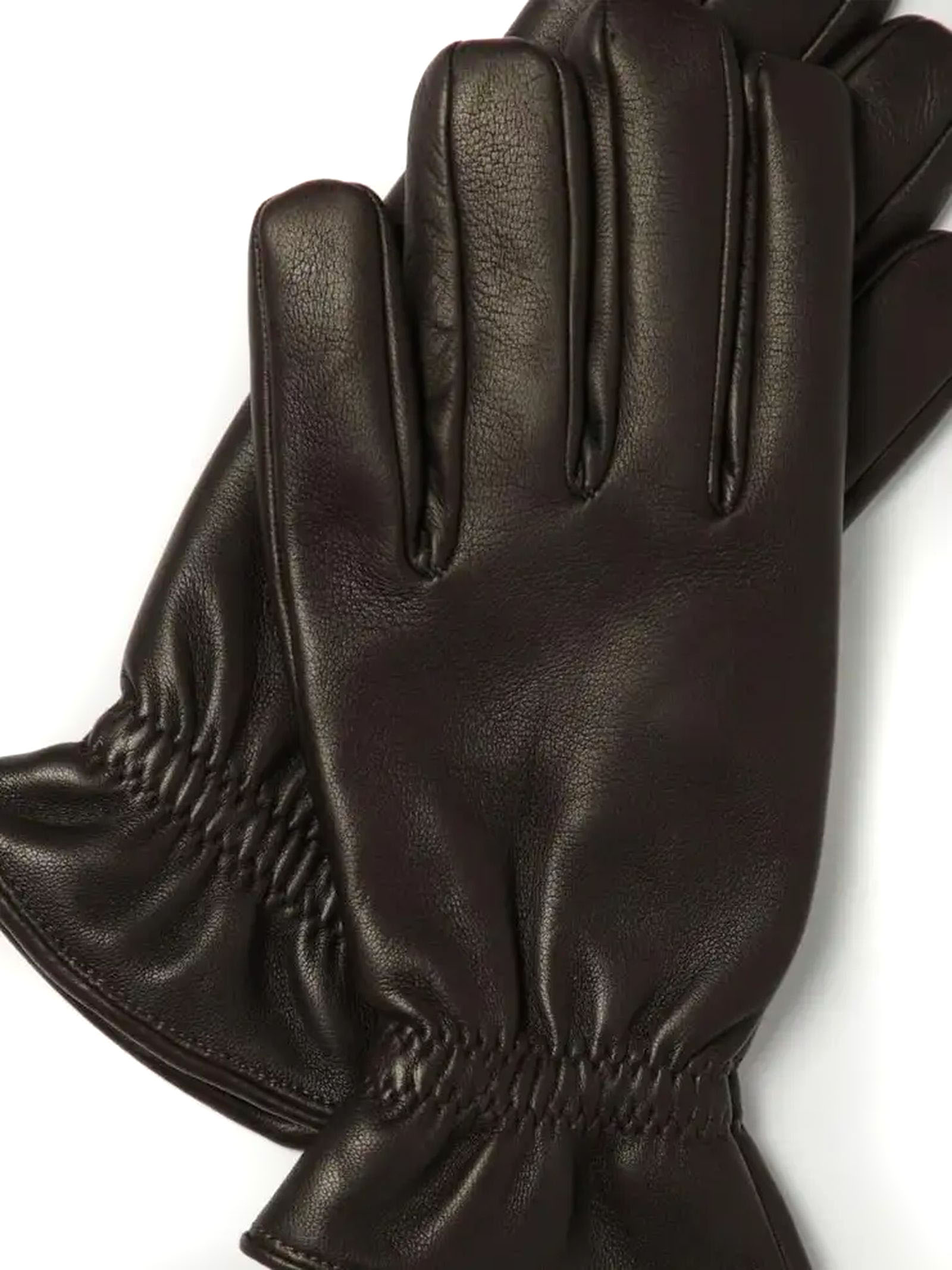 Dark Brown nappa Flake leather gloves, cashmere and wool lining