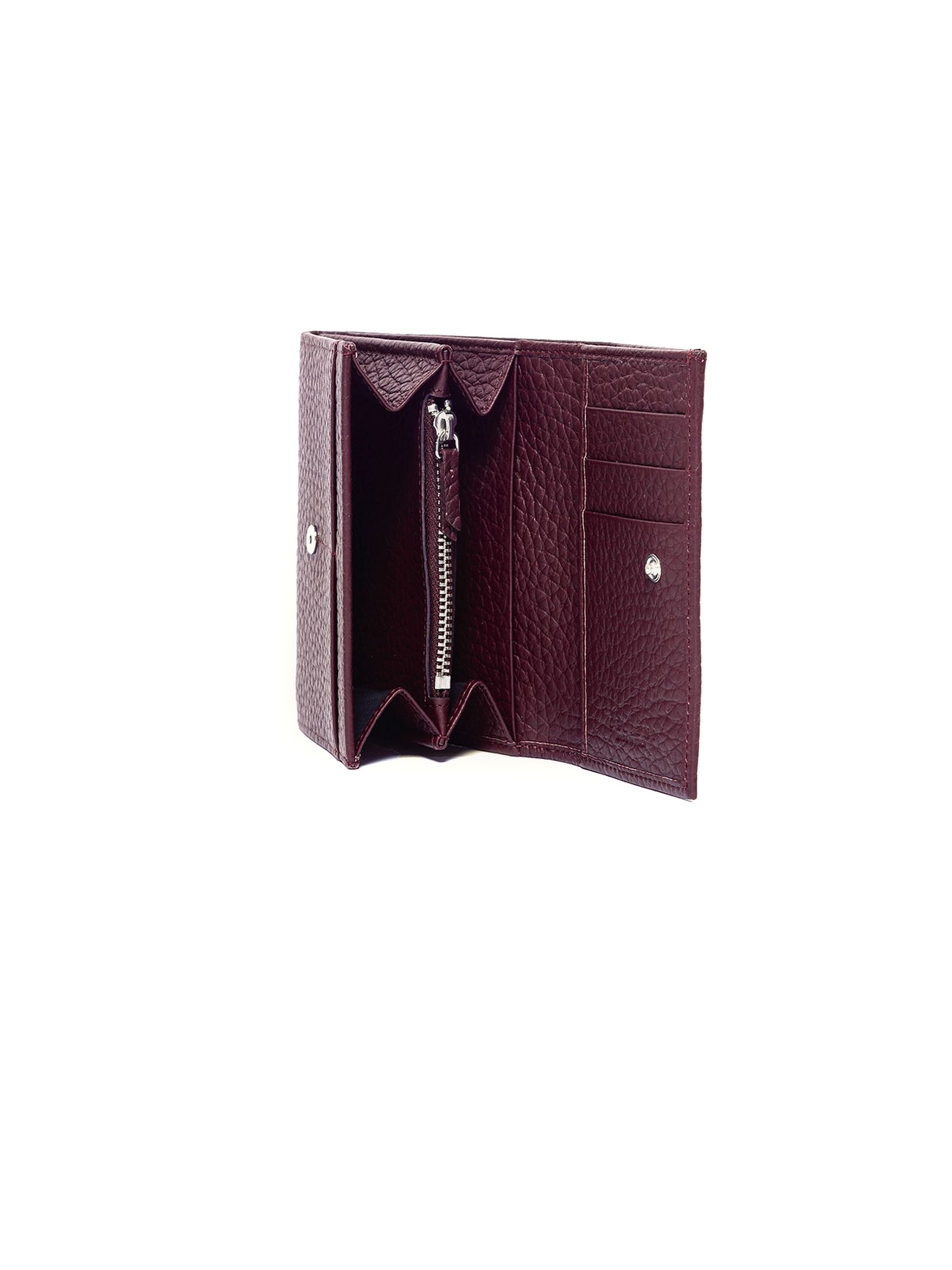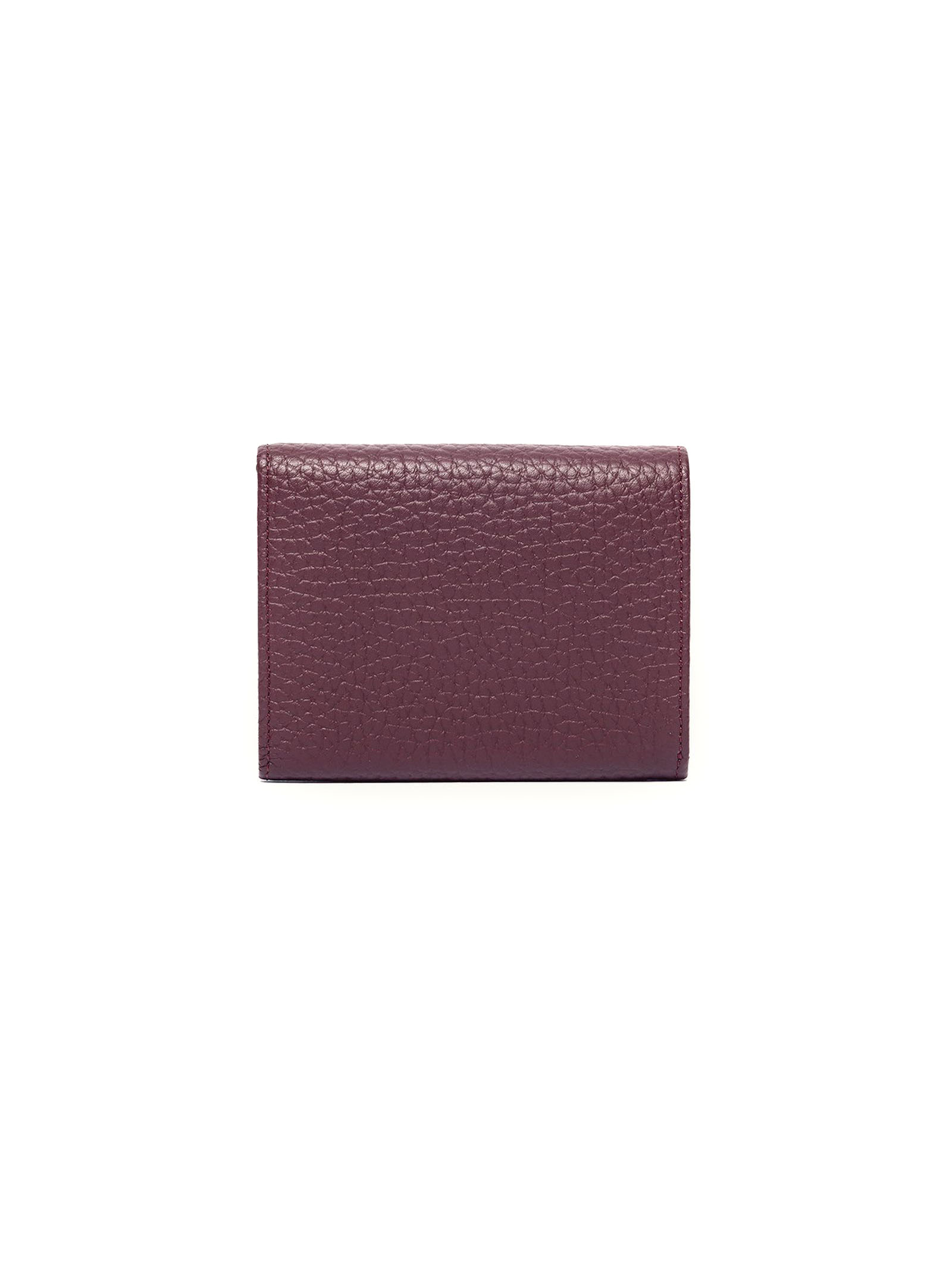 Soft small leather envelope wallet, grained leather wallet, RFID data protection system, snap-fastening front flap, three interior compartments, five card slots, central zipped coin purse, palladium finish details, width: 13 cm, height: 11 cm, depth: 3 cm