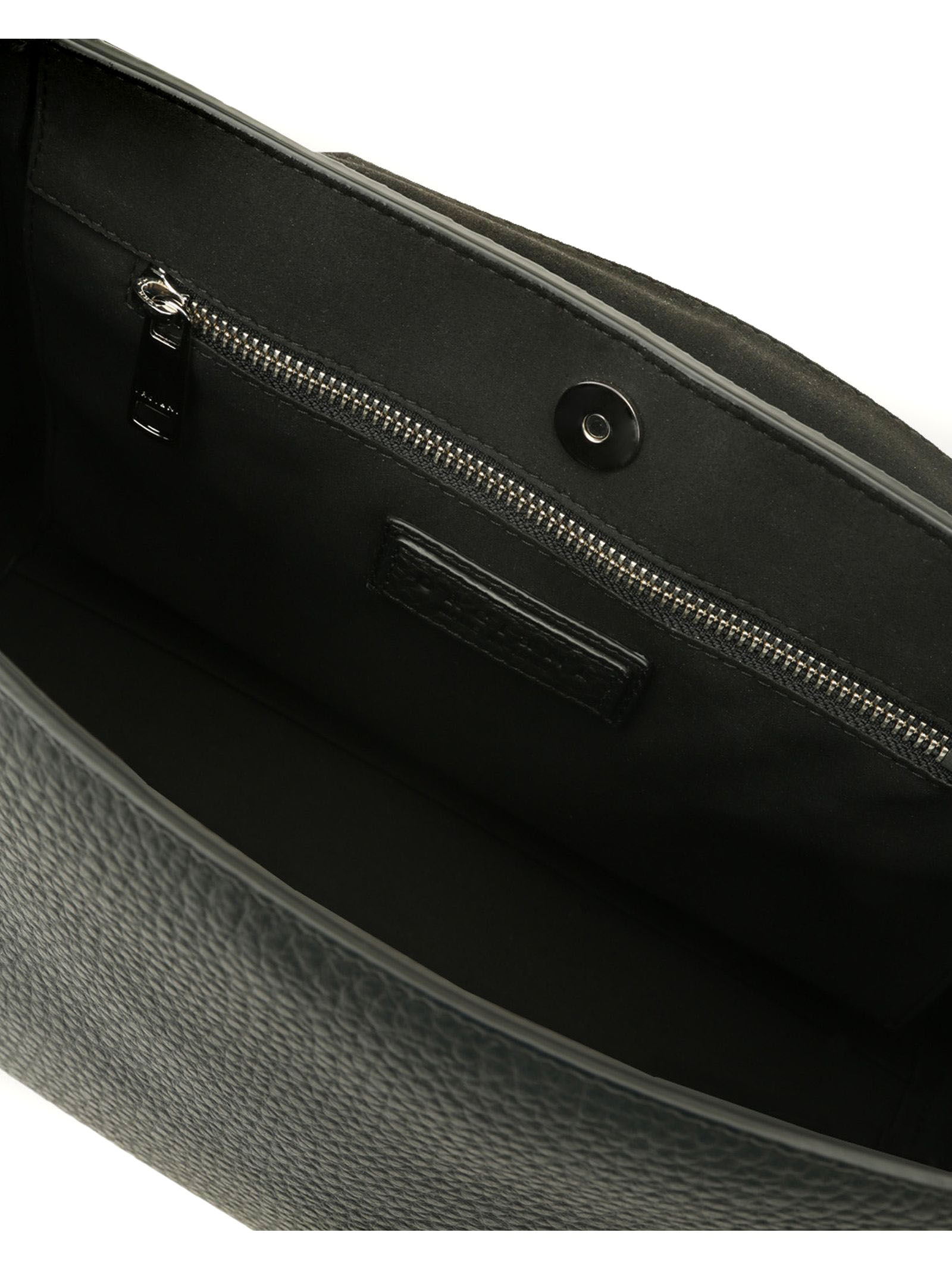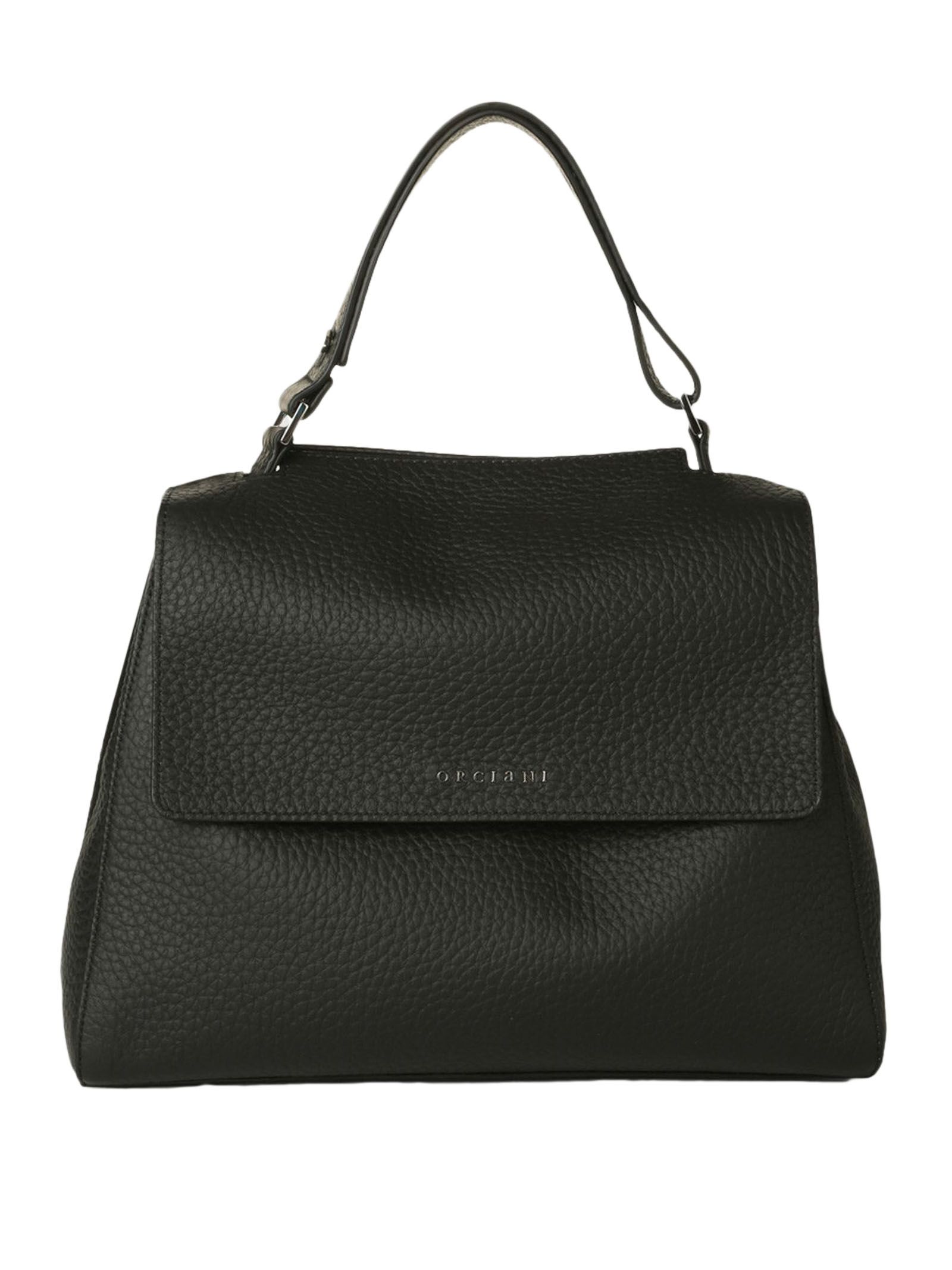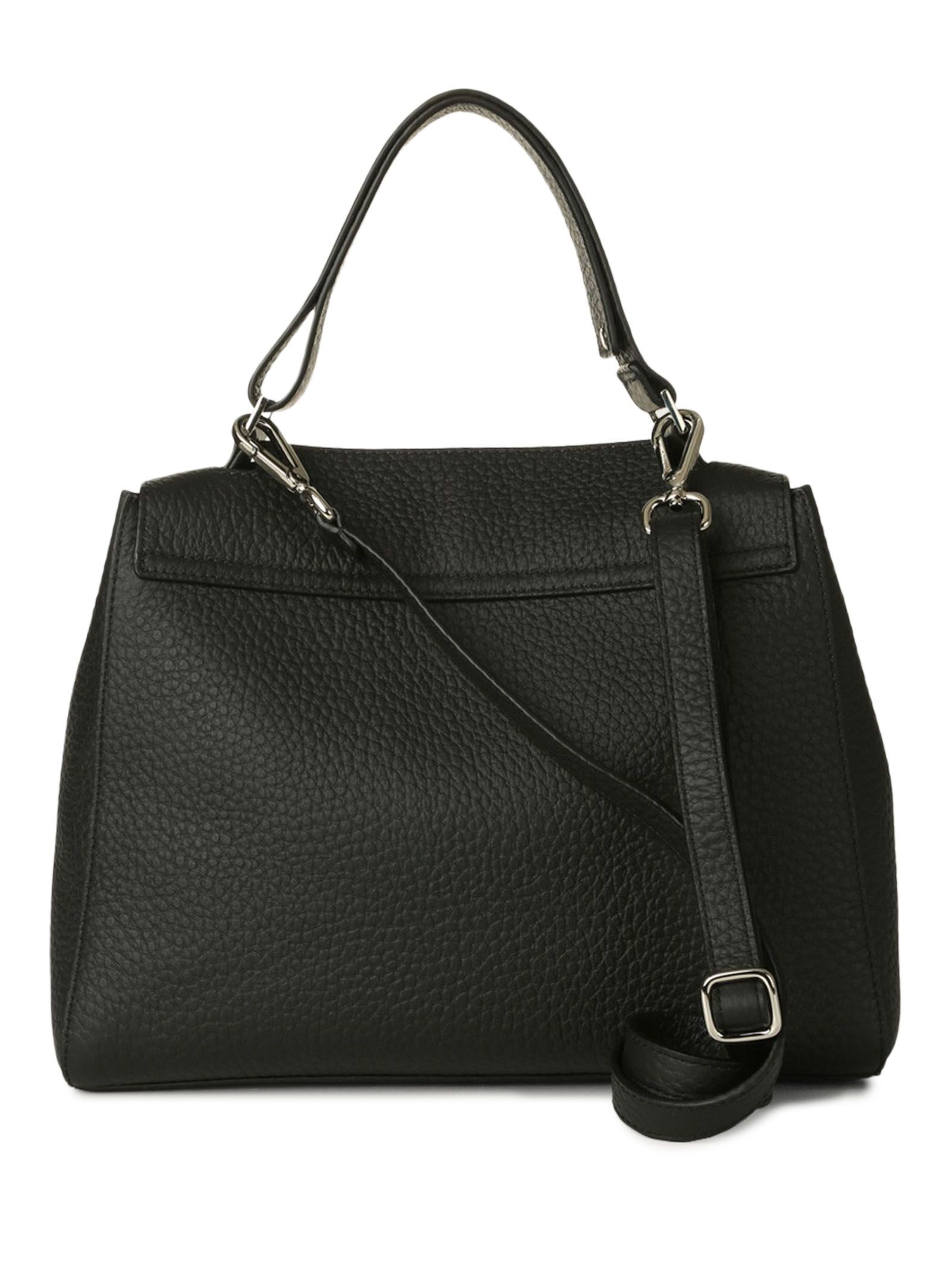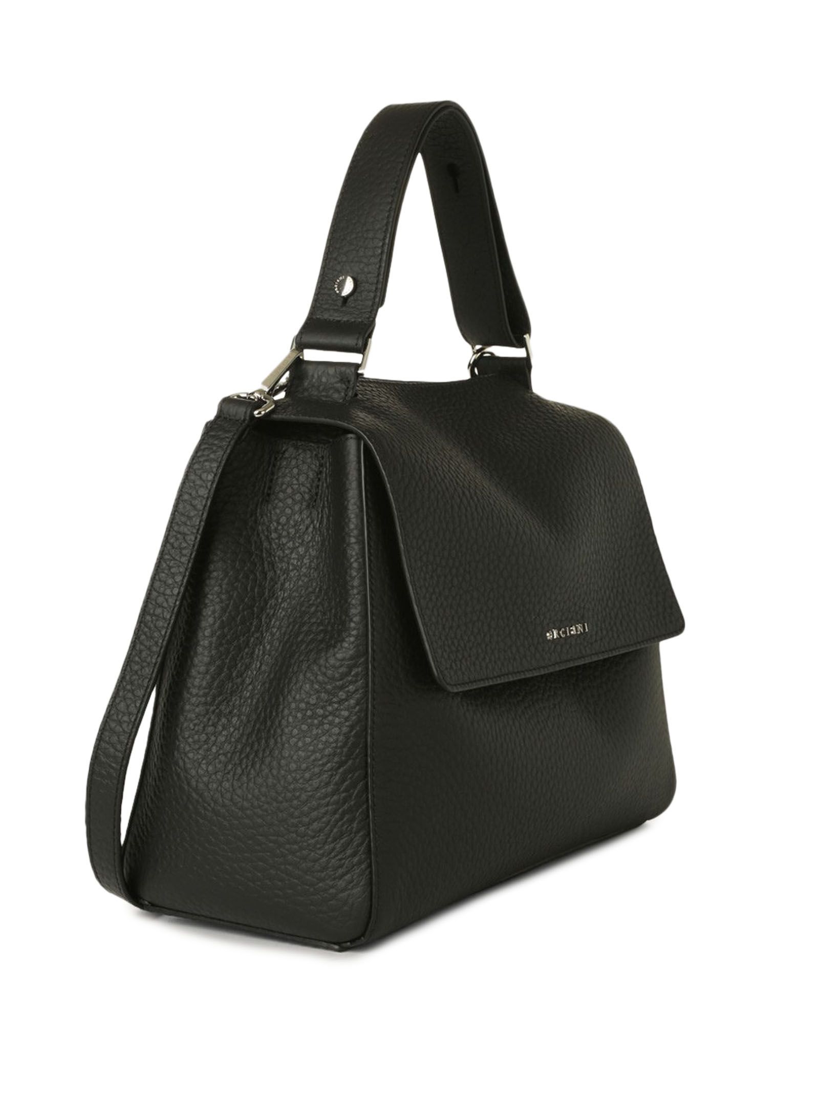 Sveva Soft Medium black leather shoulder bag, 3 interior pockets, one of which is zippered, closure flap with magnetic button, extendable handle and removable shoulder strap, palladium finish, width: 32 cm, height: 24 cm, depth: 15 cm