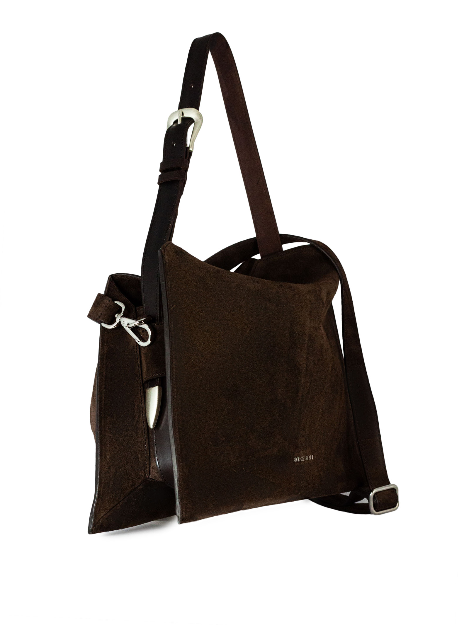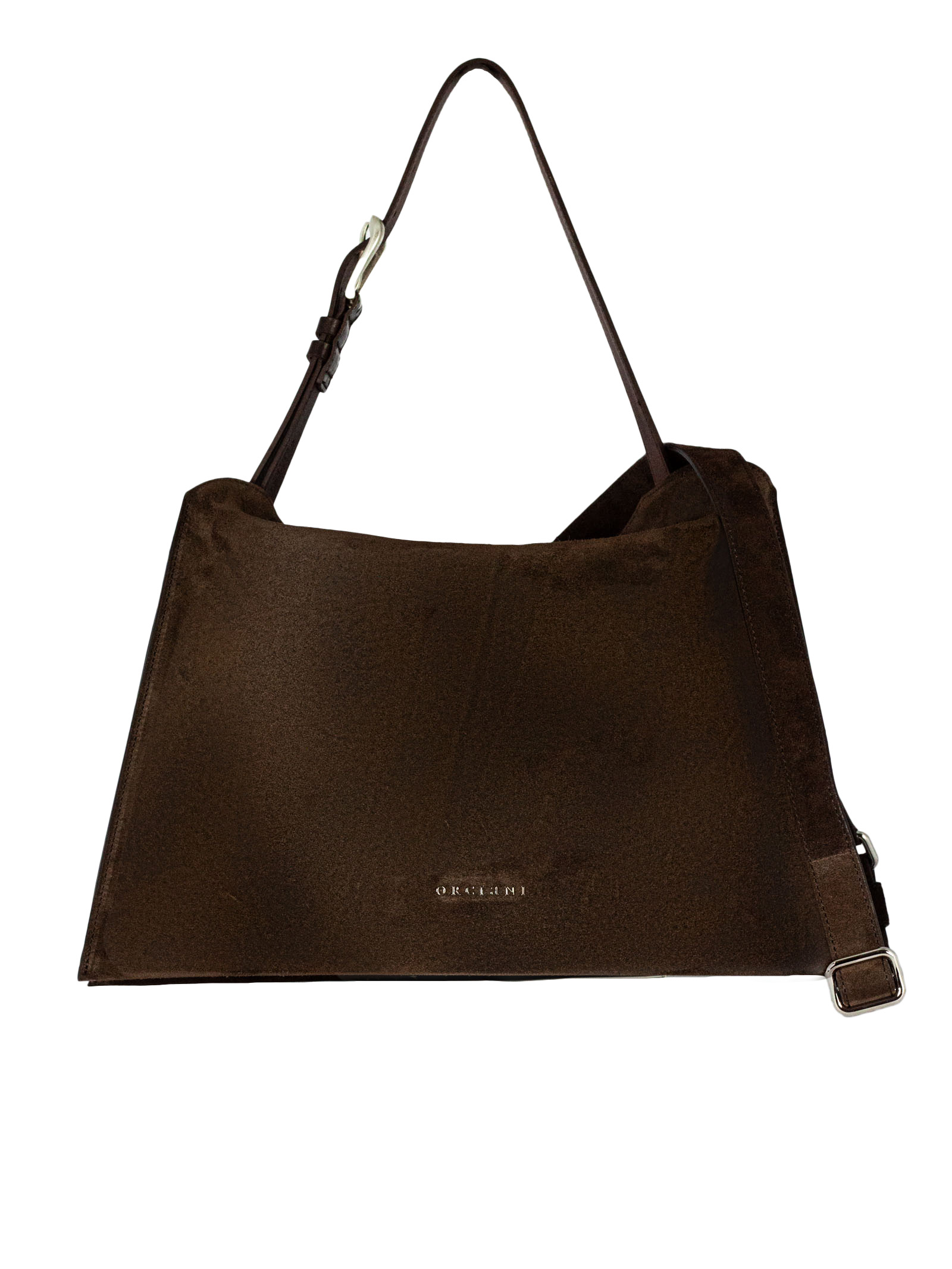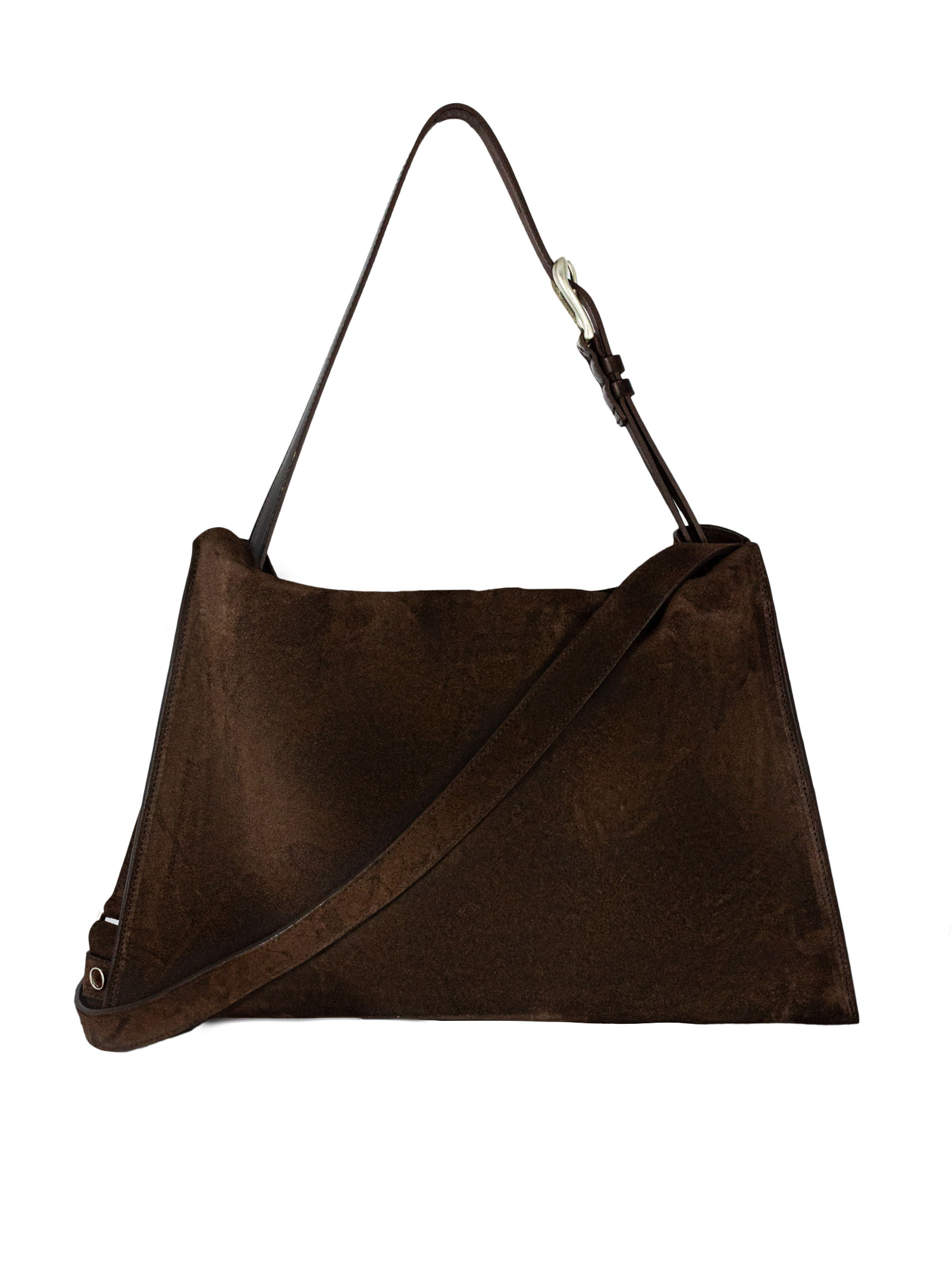 Trinity Peach Midi suede shoulder bag, Pockets: 3 compartments, 1 inside zip pocket, Closure: magnetic buttons, Features: bull hide handle, adjustable and removable to be used as a belt, additional adjustable suede strap, Material: suede leather, Details: palladium finish hardware, Dimensions: Width: 39 cm / Height: 25 cm / Depth: 10 cm