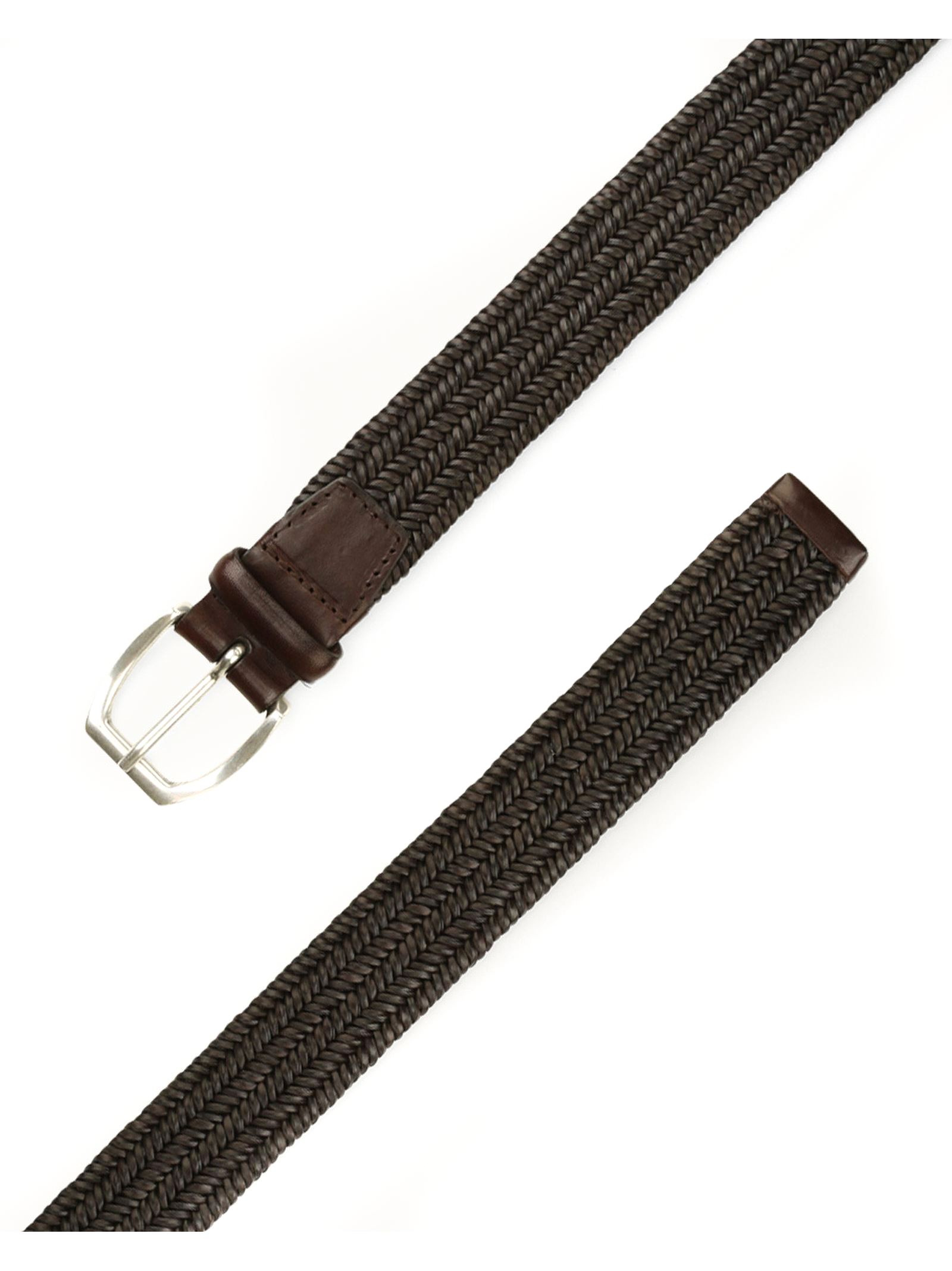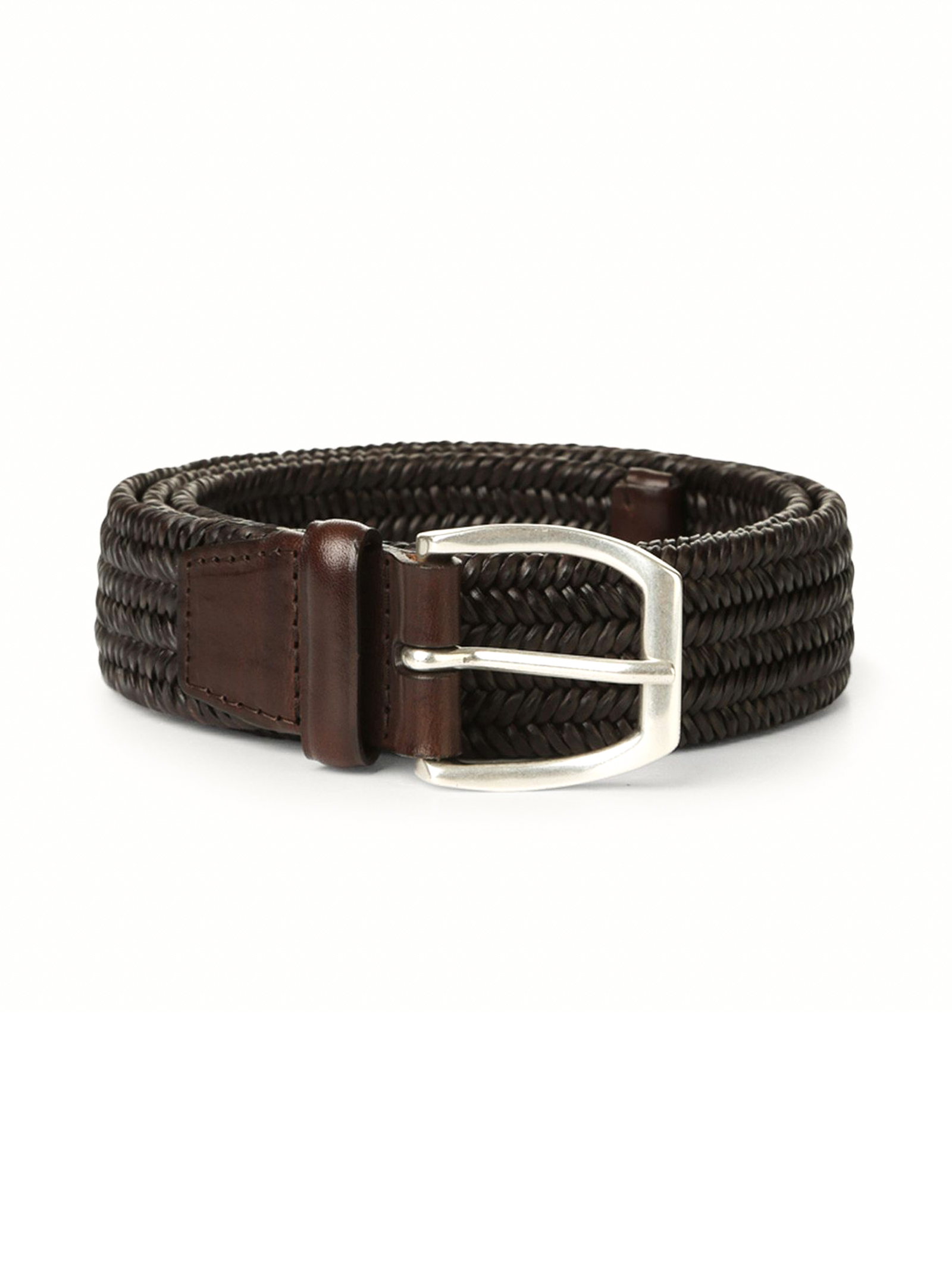 Wide braided leather belt, dimensions: Height: 3.5 cm, buckle: trapezoidal, details: English silver finish buckle